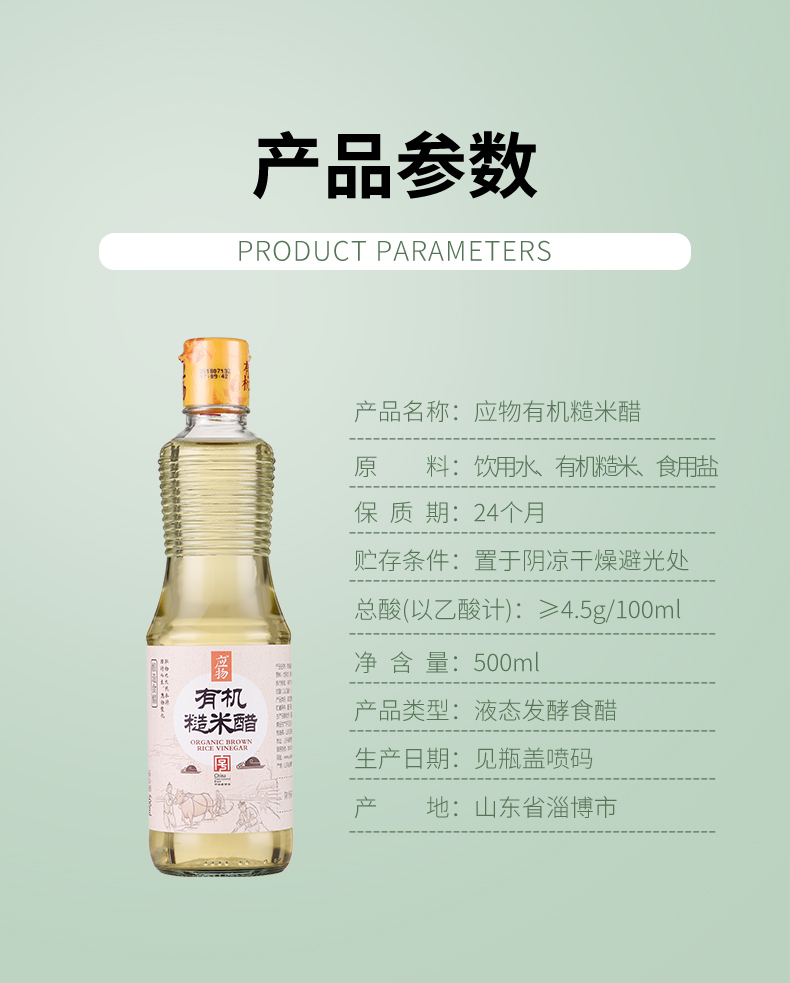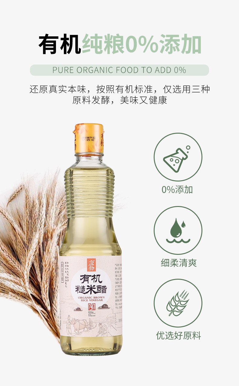 应物有机糙米醋无麸质零添加纯粮酿造凉拌白醋无小麦香醋饺子伴侣500ml