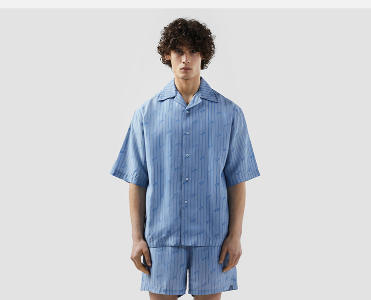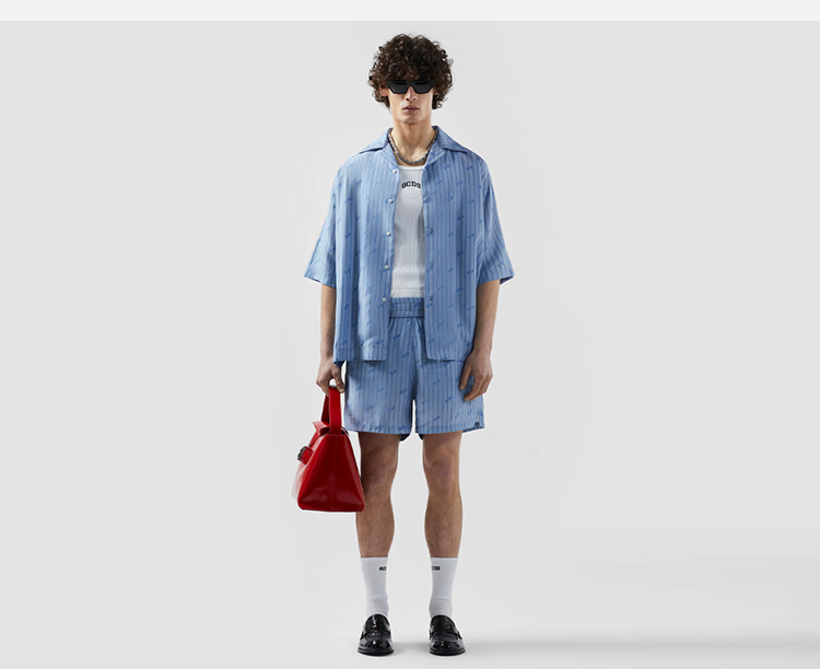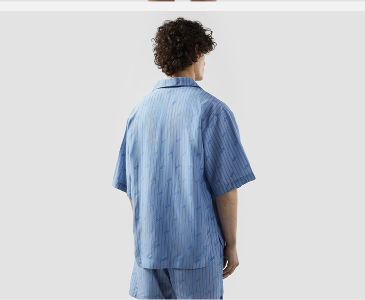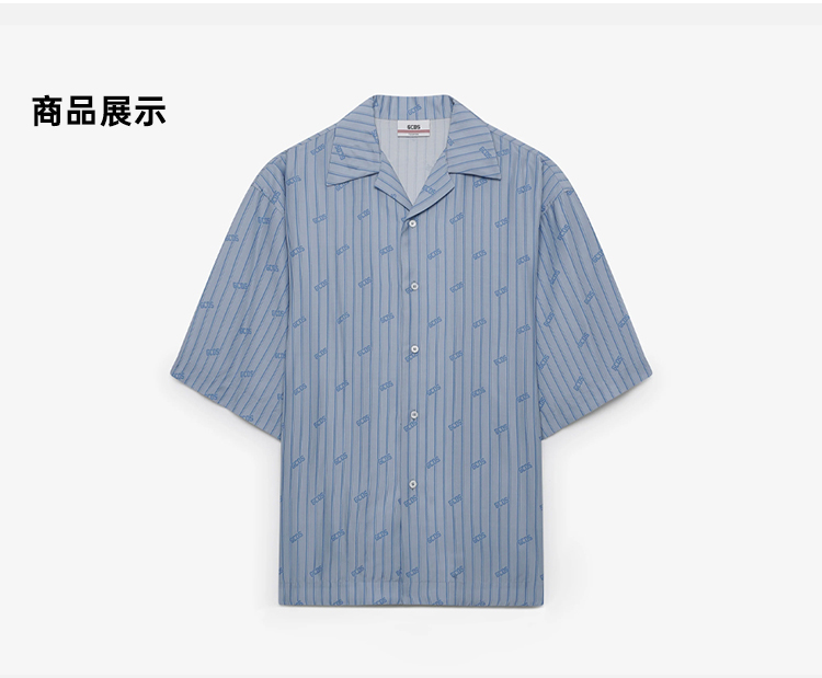GCDS 男士字母徽标细条纹短袖衬衫 浅蓝色 B1CM2405HW1 70