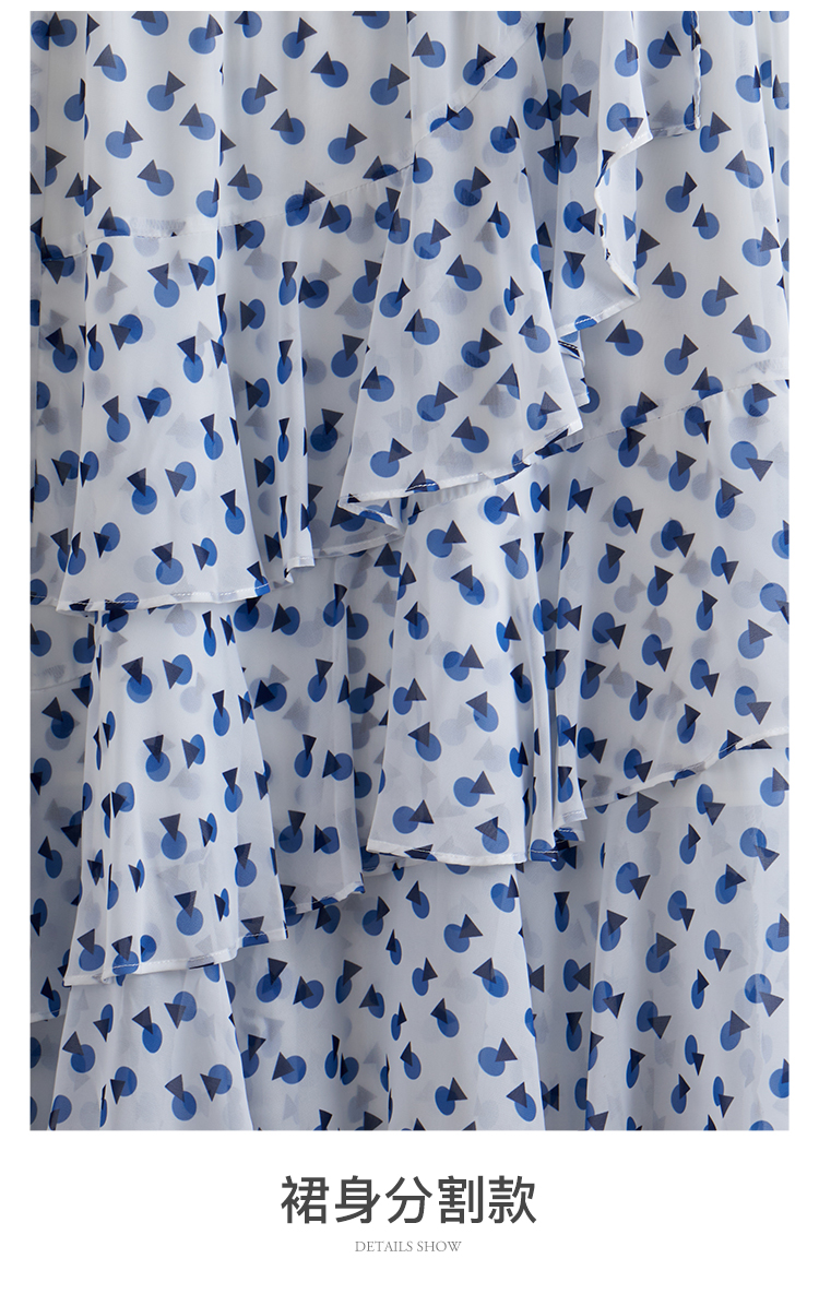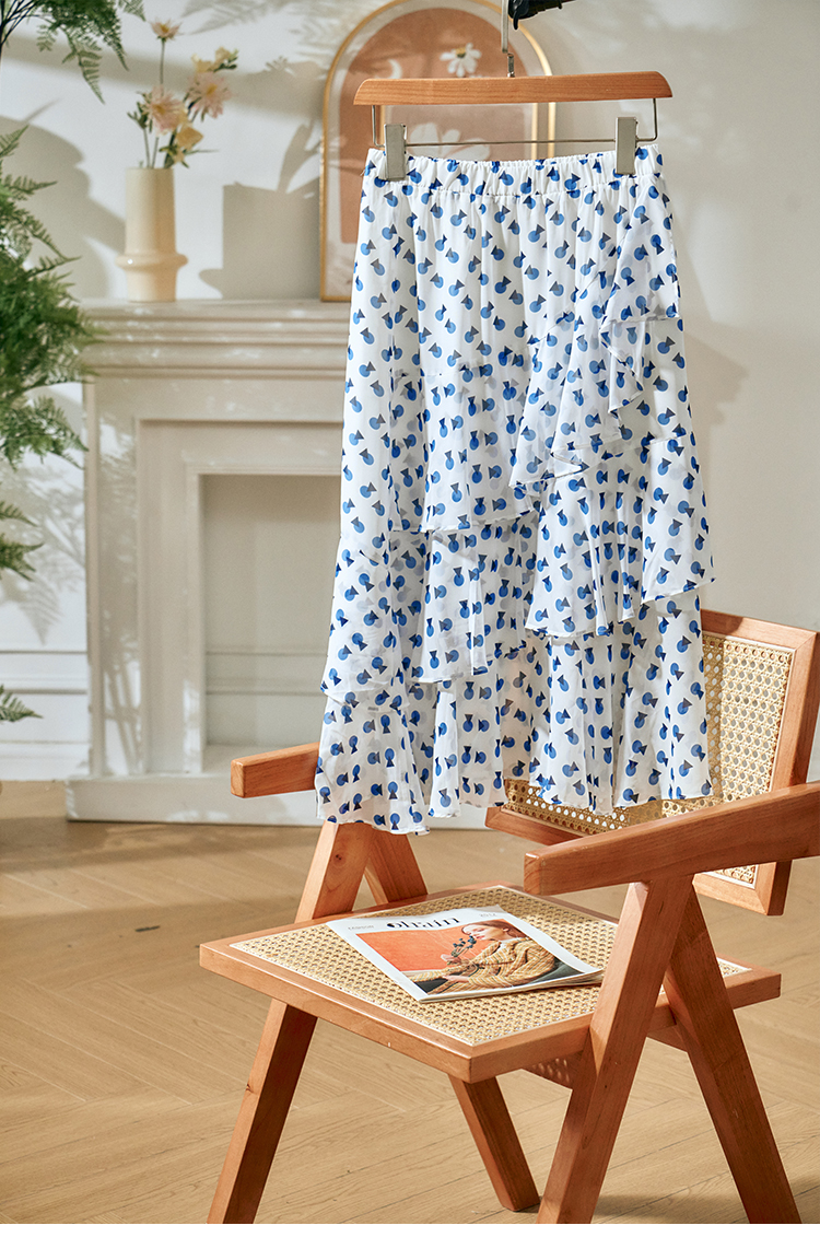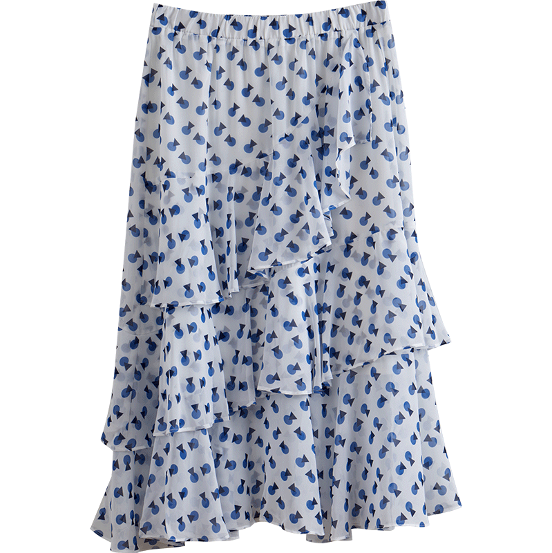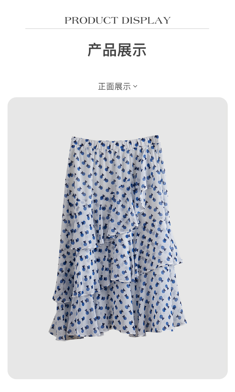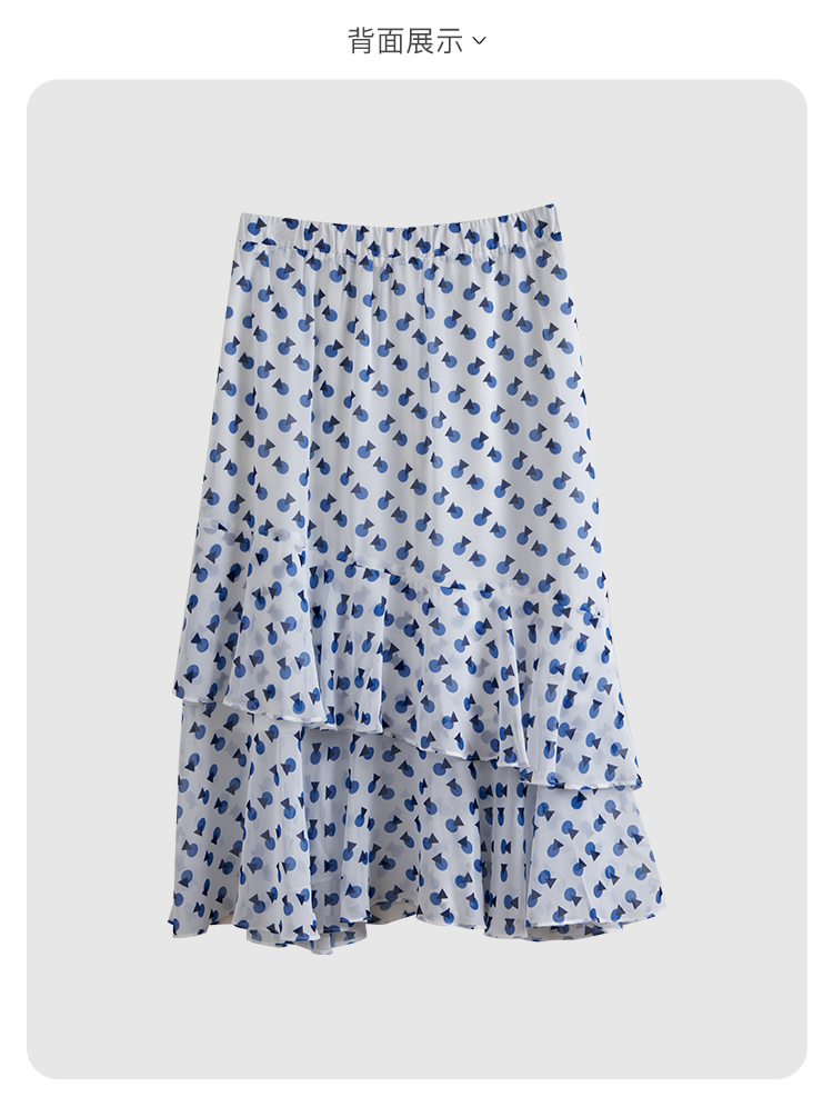 欧芮儿夏装新款高腰显瘦波点半身裙女复古中长款印花蛋糕裙