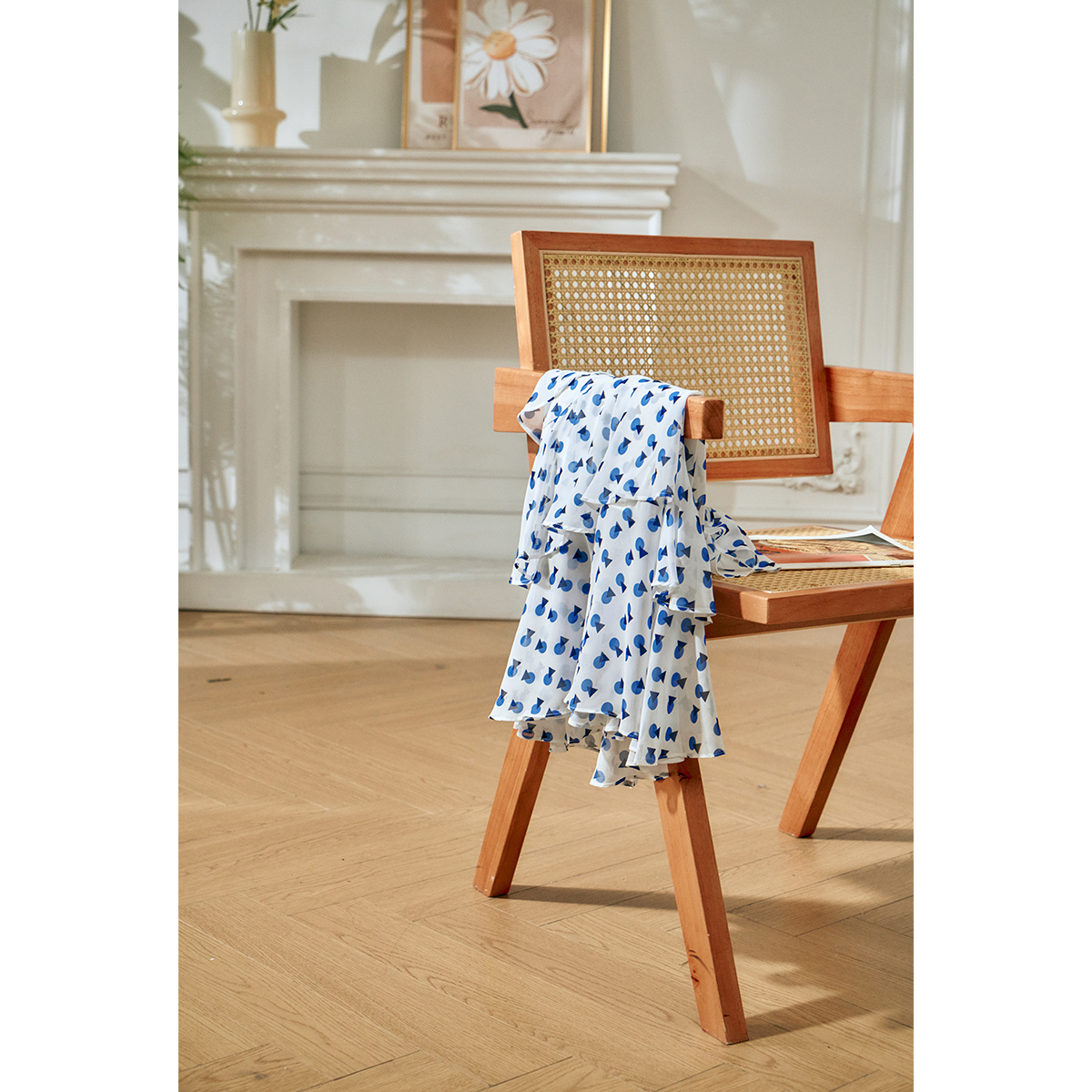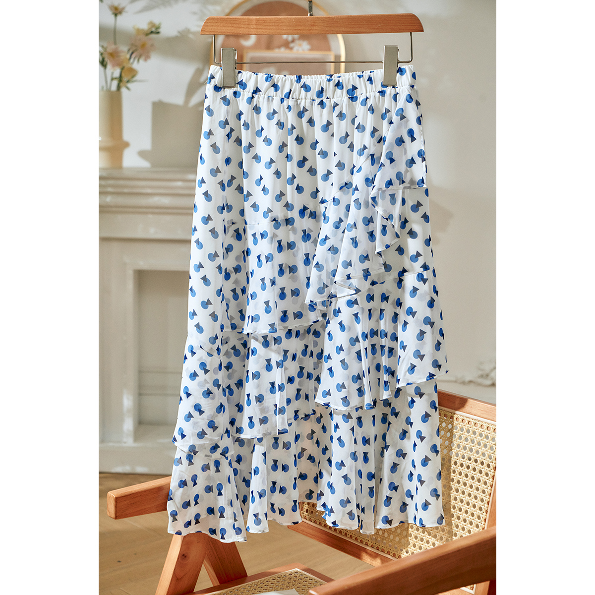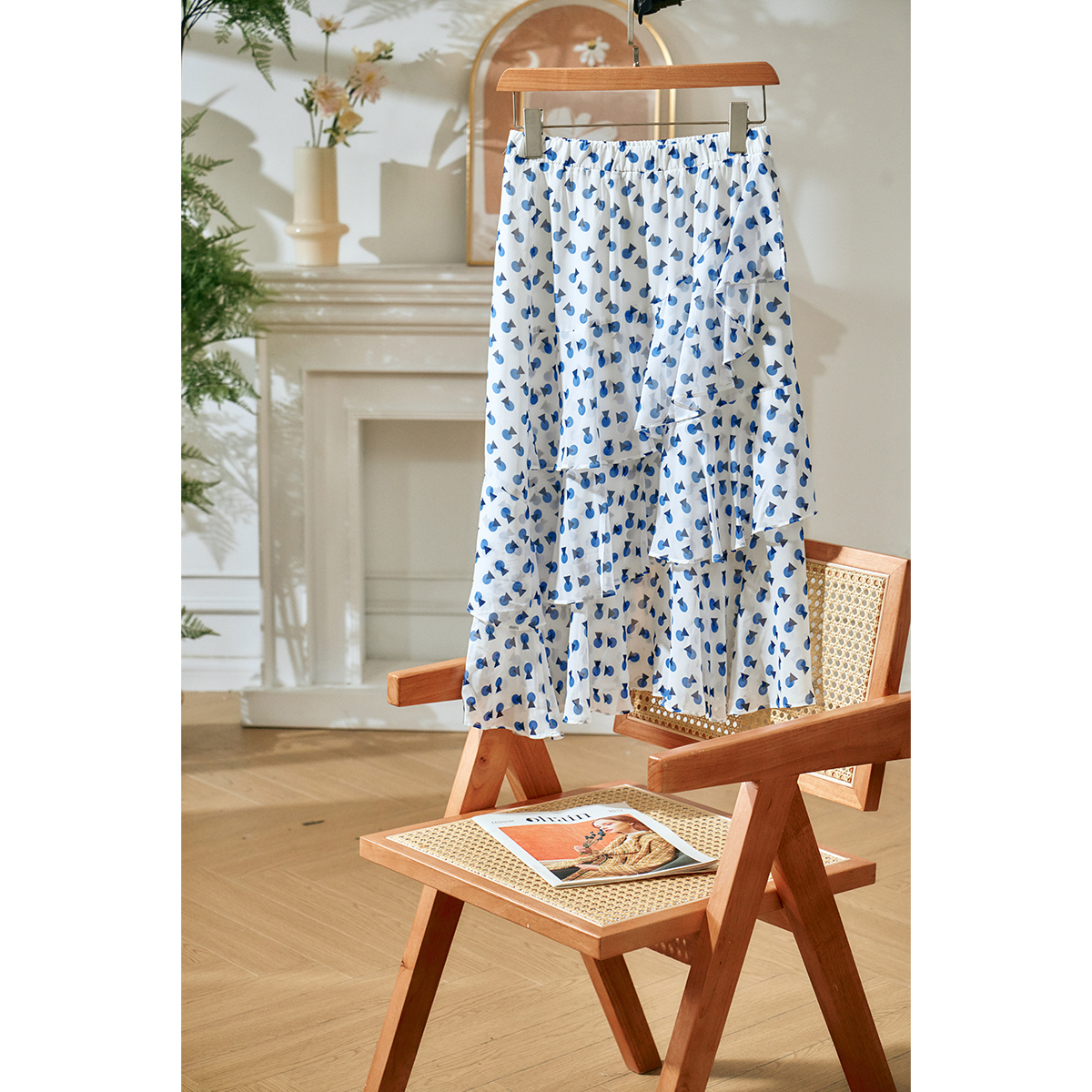 欧芮儿夏装新款高腰显瘦波点半身裙女复古中长款印花蛋糕裙