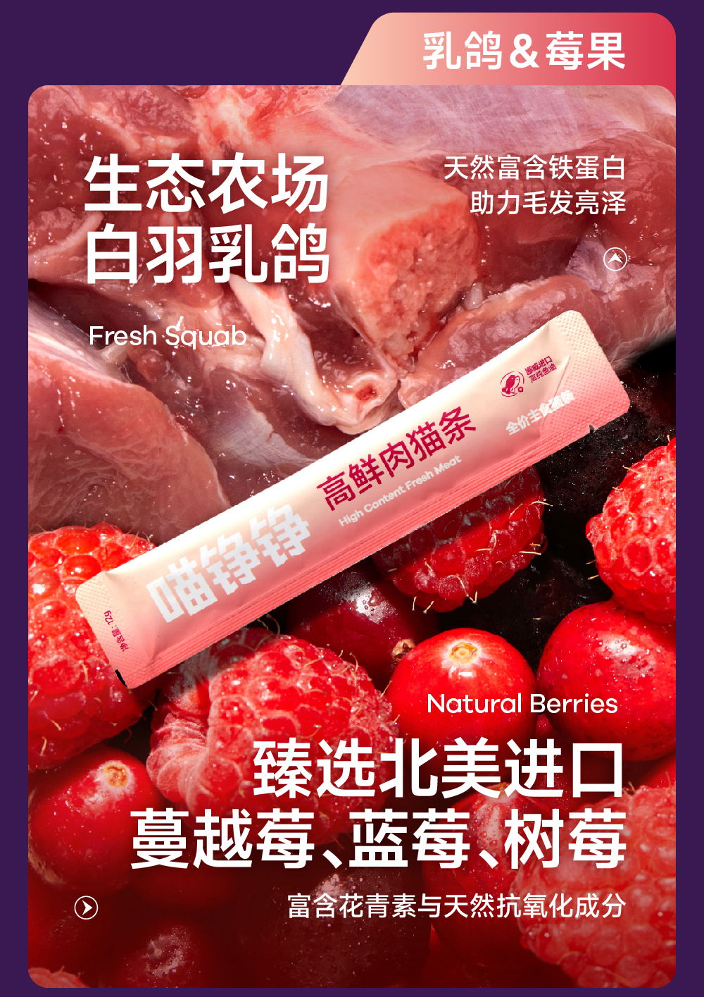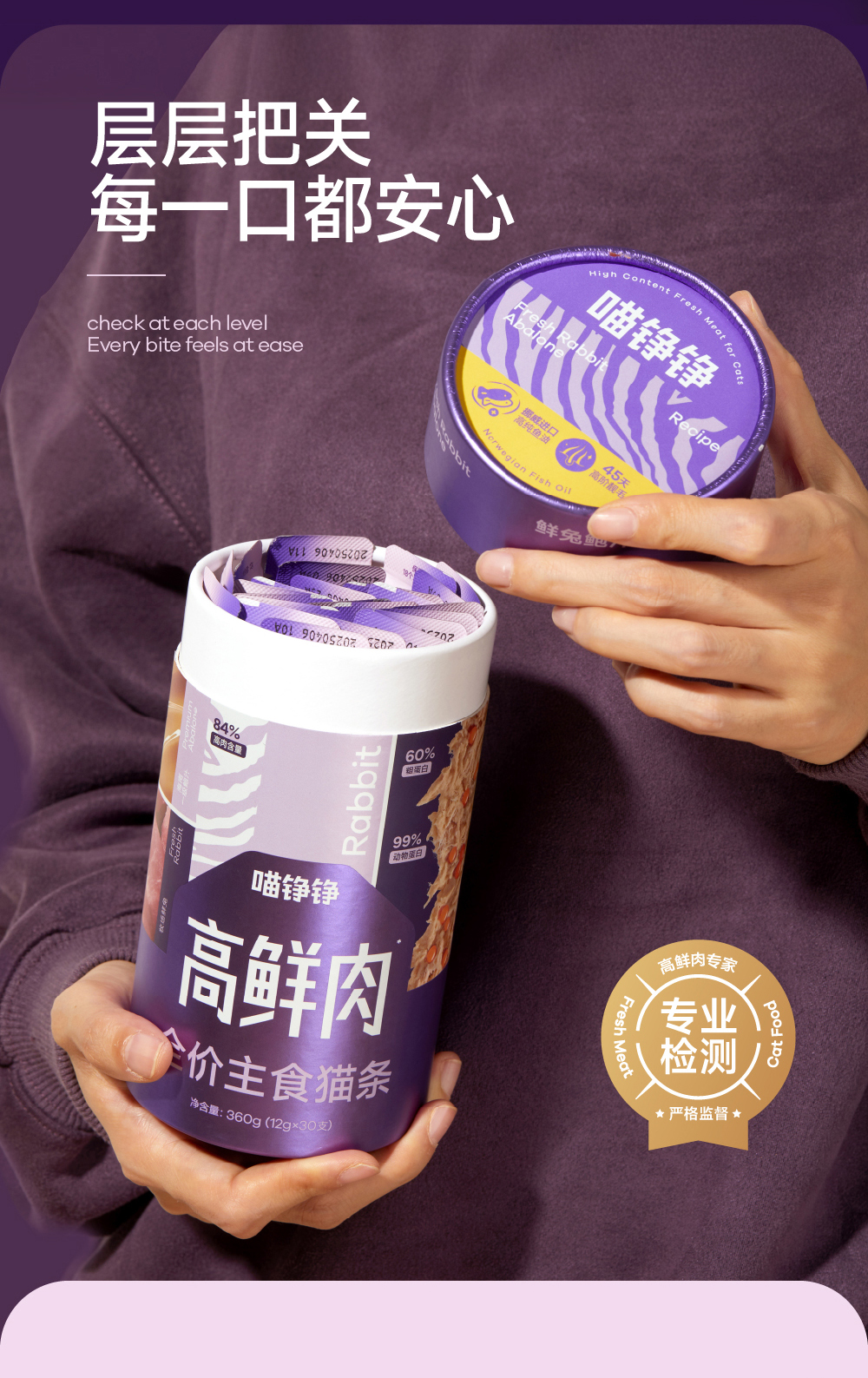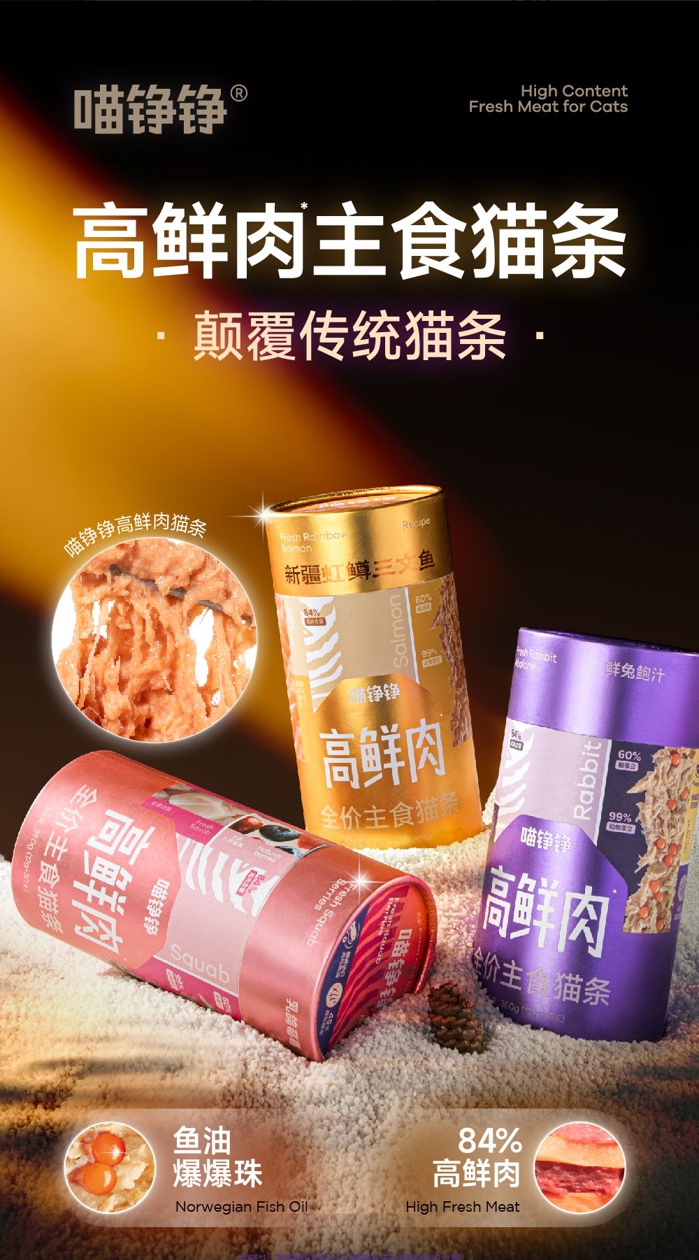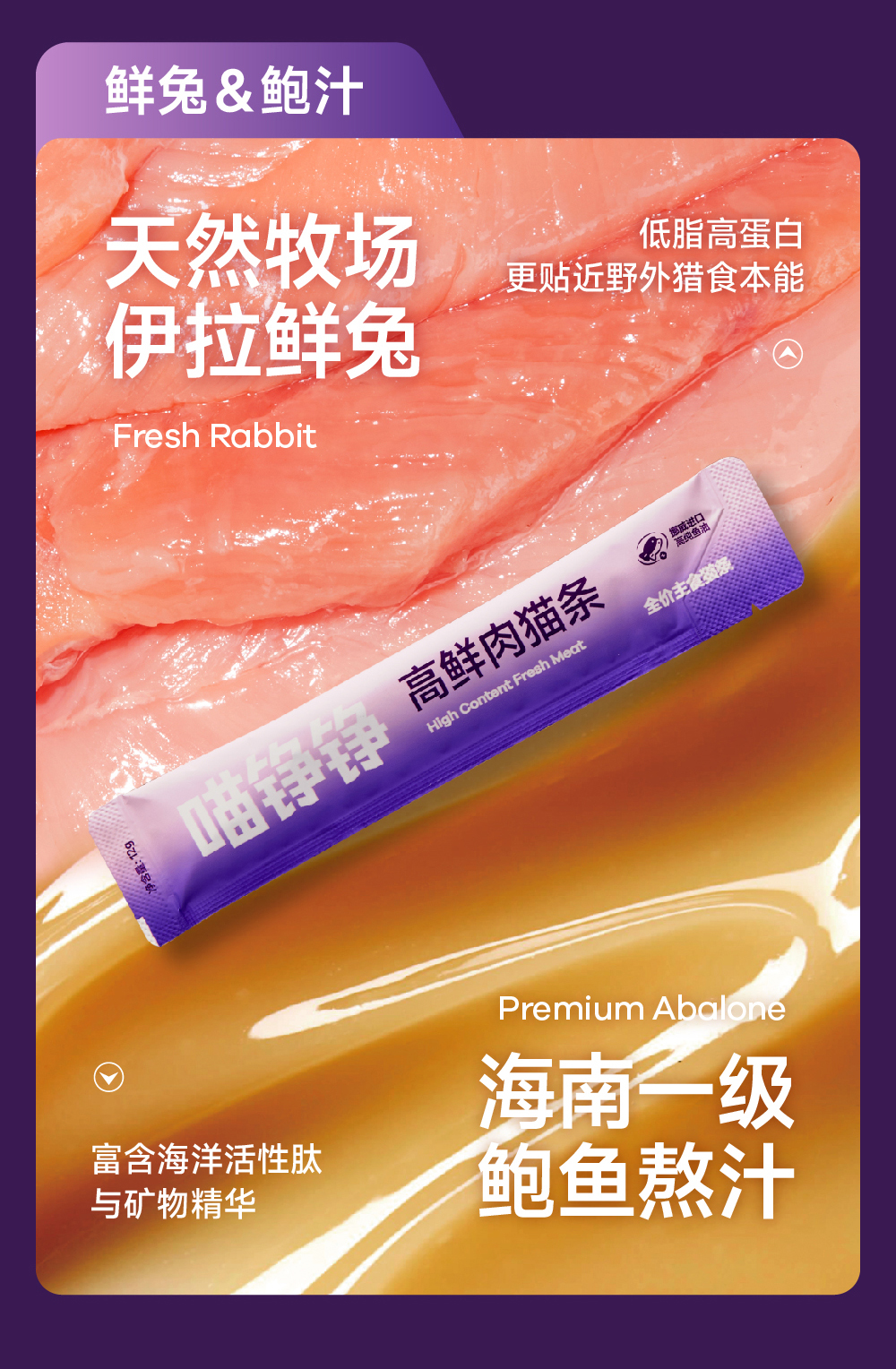 喵铮铮高鲜肉主食猫条乳鸽兔肉鲍鱼汁虹鳟三文鱼油幼猫咪营养湿粮