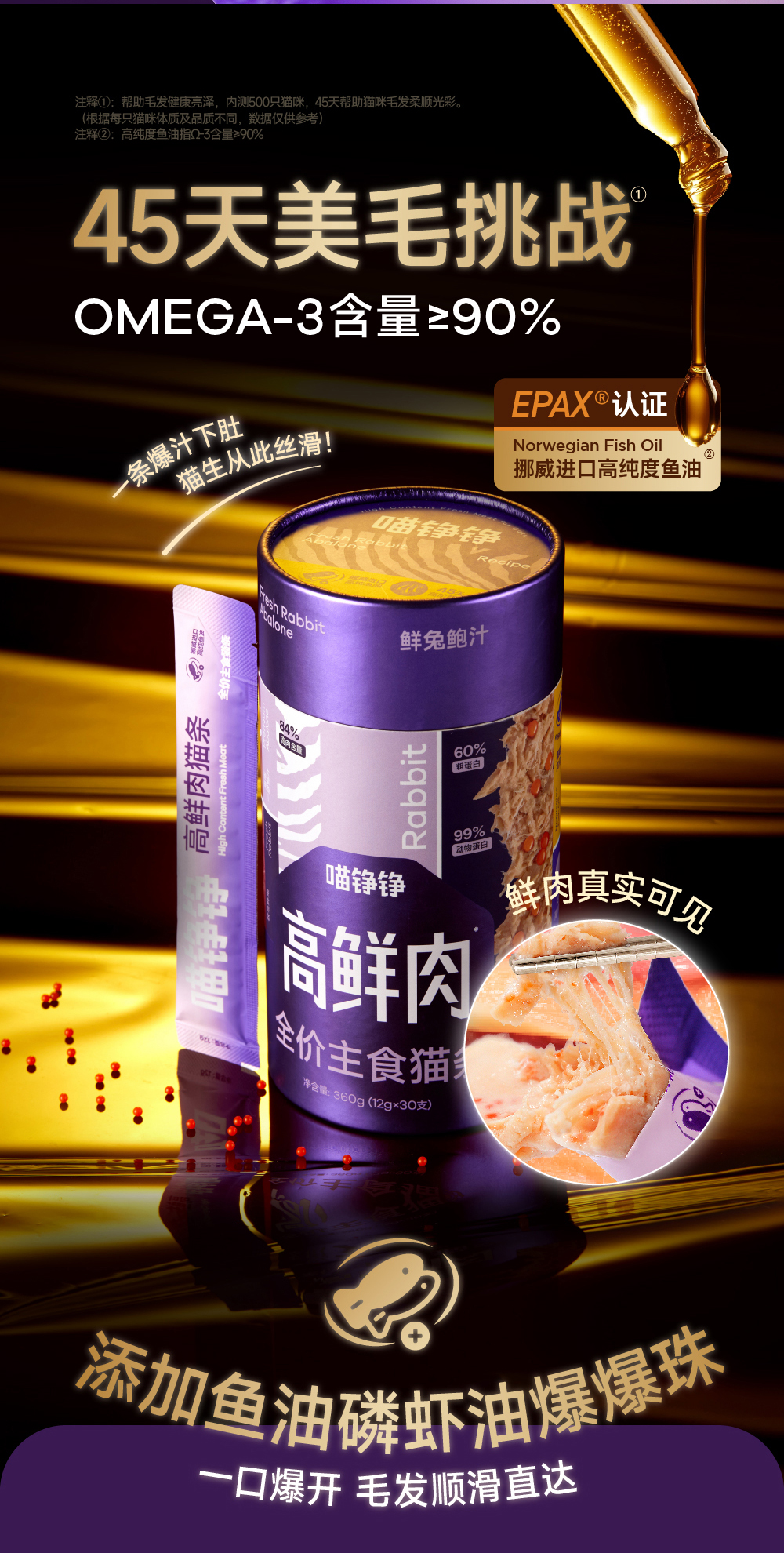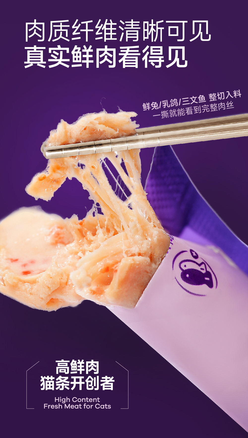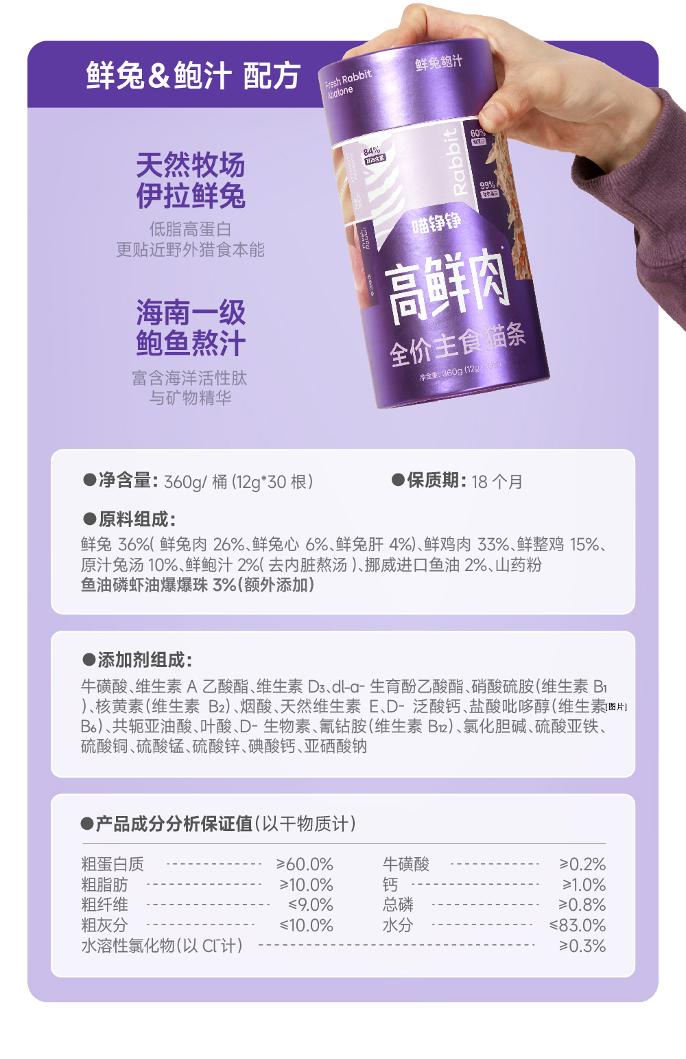喵铮铮高鲜肉主食猫条乳鸽兔肉鲍鱼汁虹鳟三文鱼油幼猫咪营养湿粮