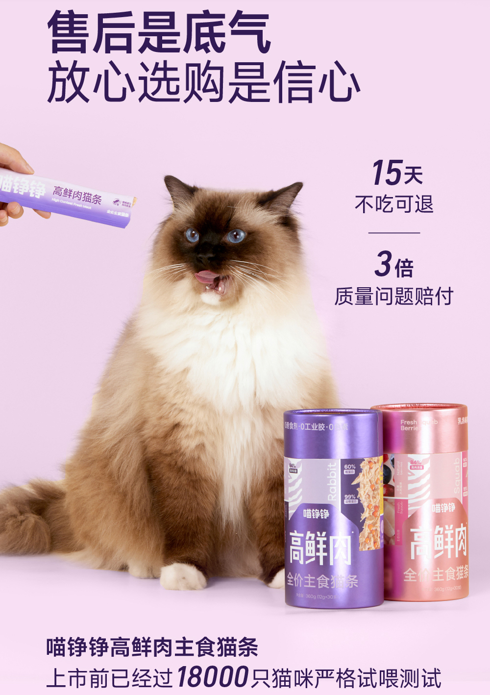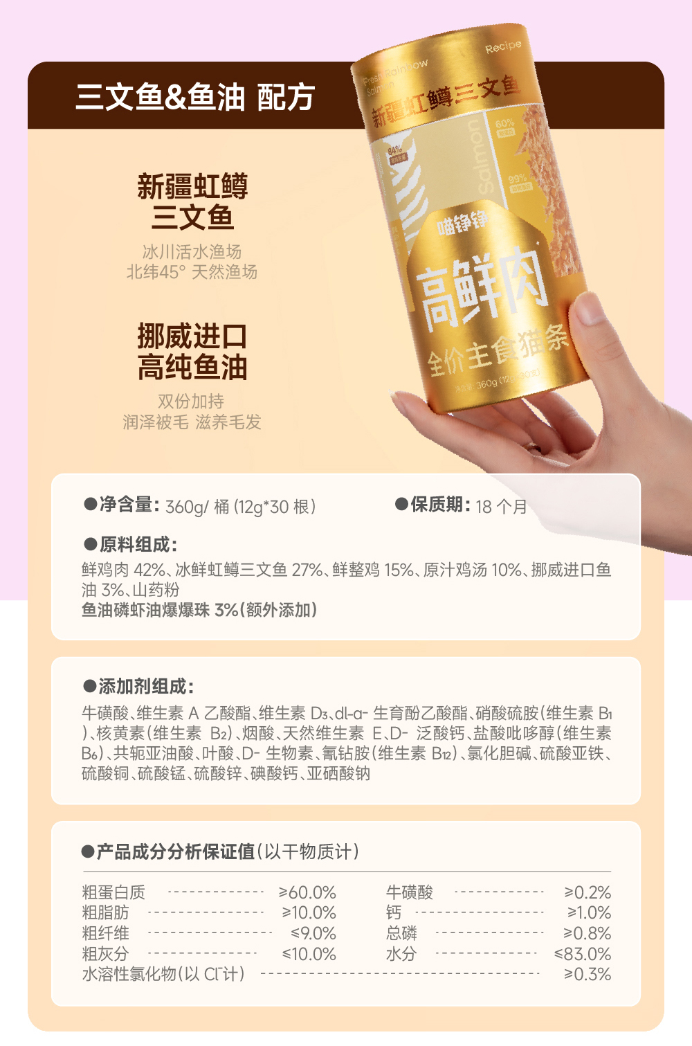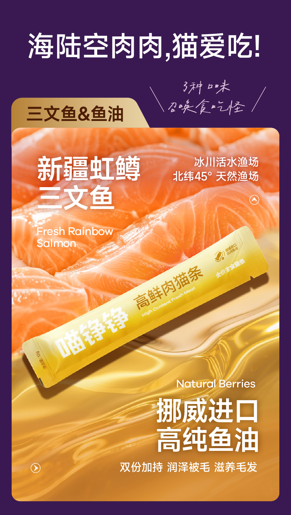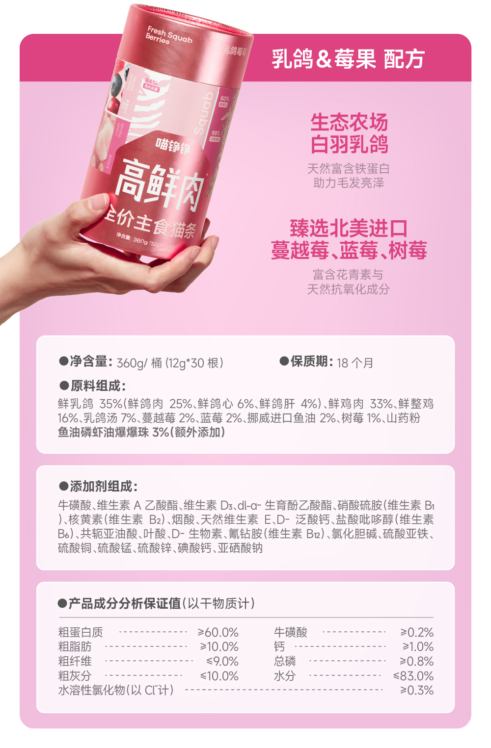 喵铮铮高鲜肉主食猫条乳鸽兔肉鲍鱼汁虹鳟三文鱼油幼猫咪营养湿粮