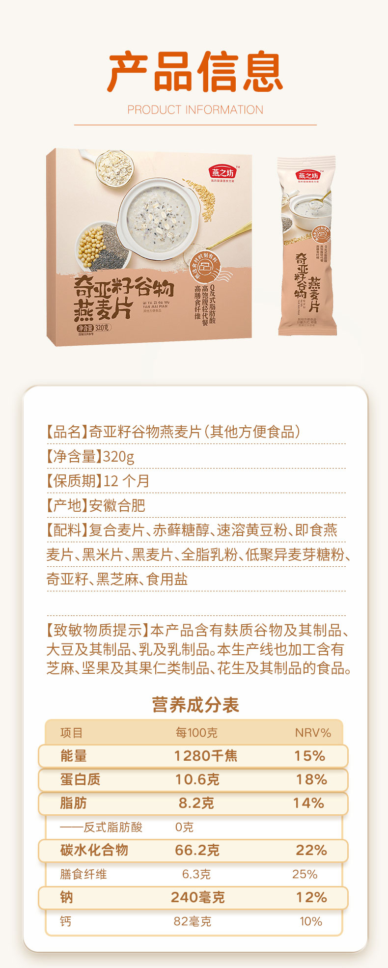 燕之坊网红早餐即食燕麦片 搭配坚果水果干 可干吃可冲泡奇亚籽