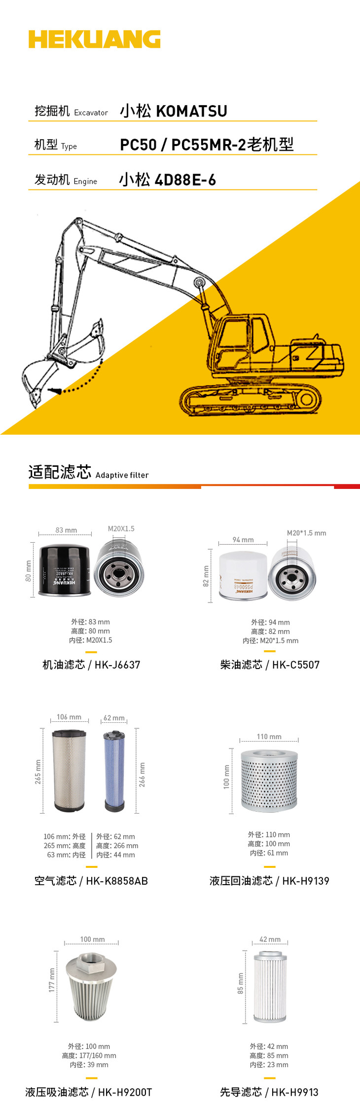 KOMATSU小松PC50/55MR-2老车型挖掘机滤芯 机油柴油空气滤芯 液压油先导滤芯 工厂直销