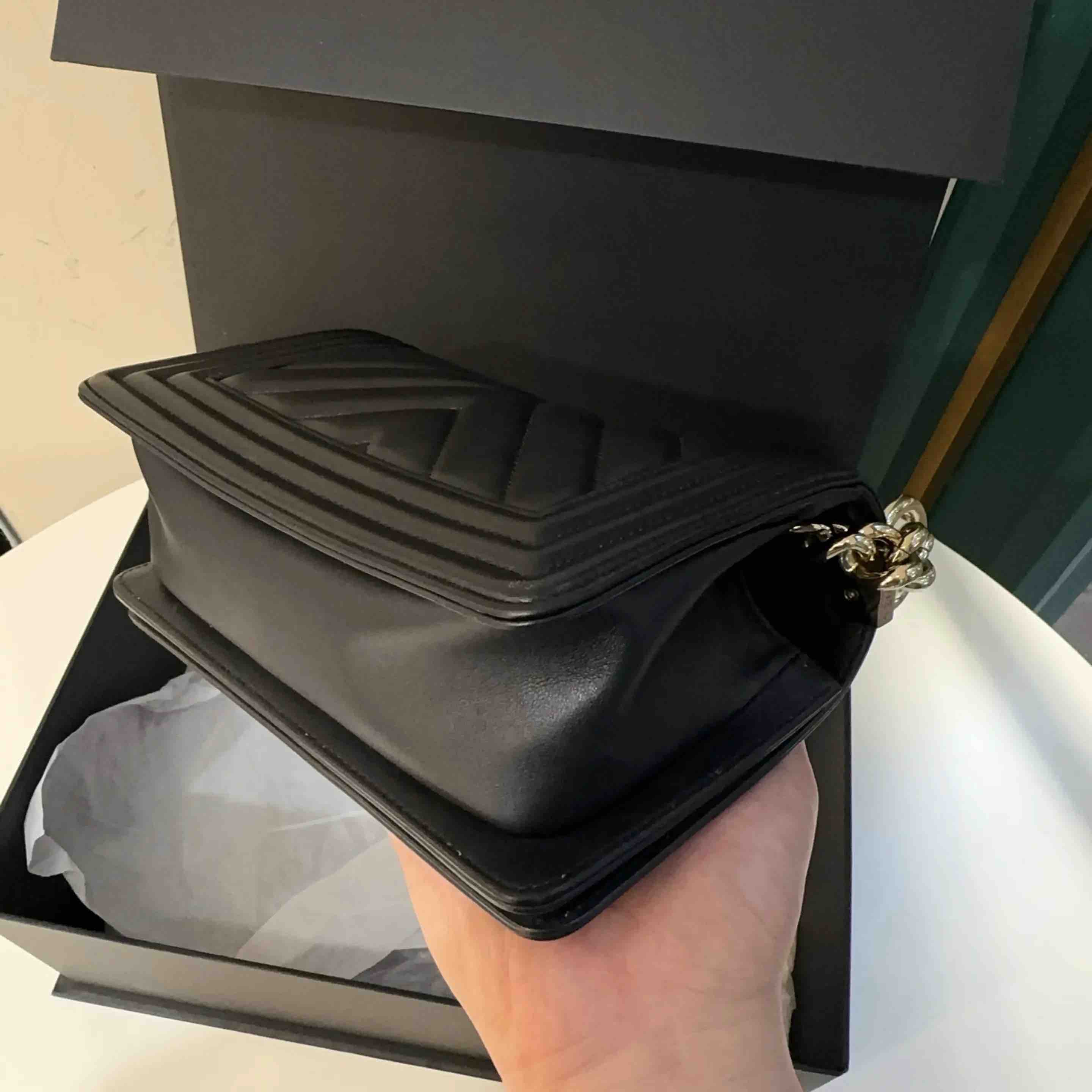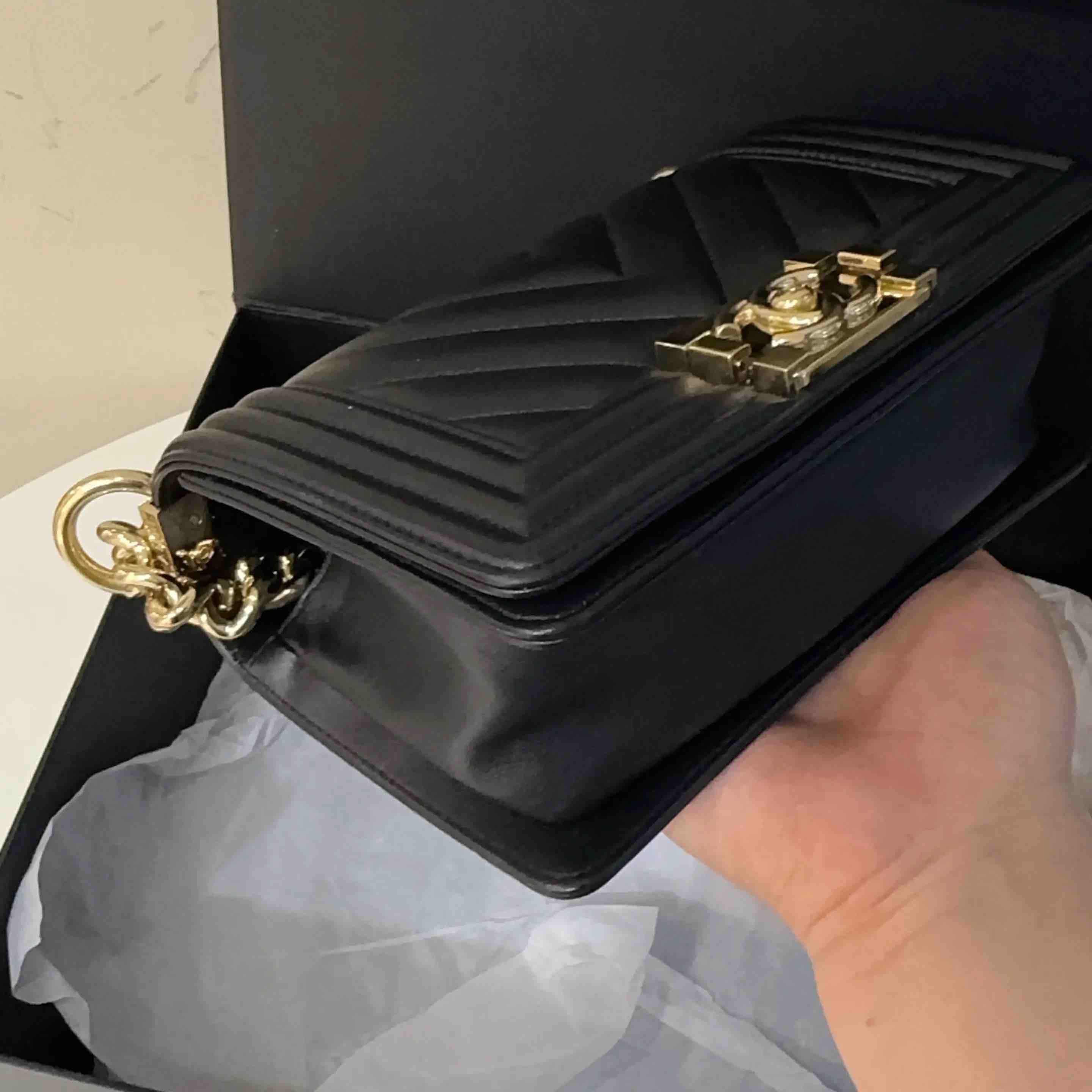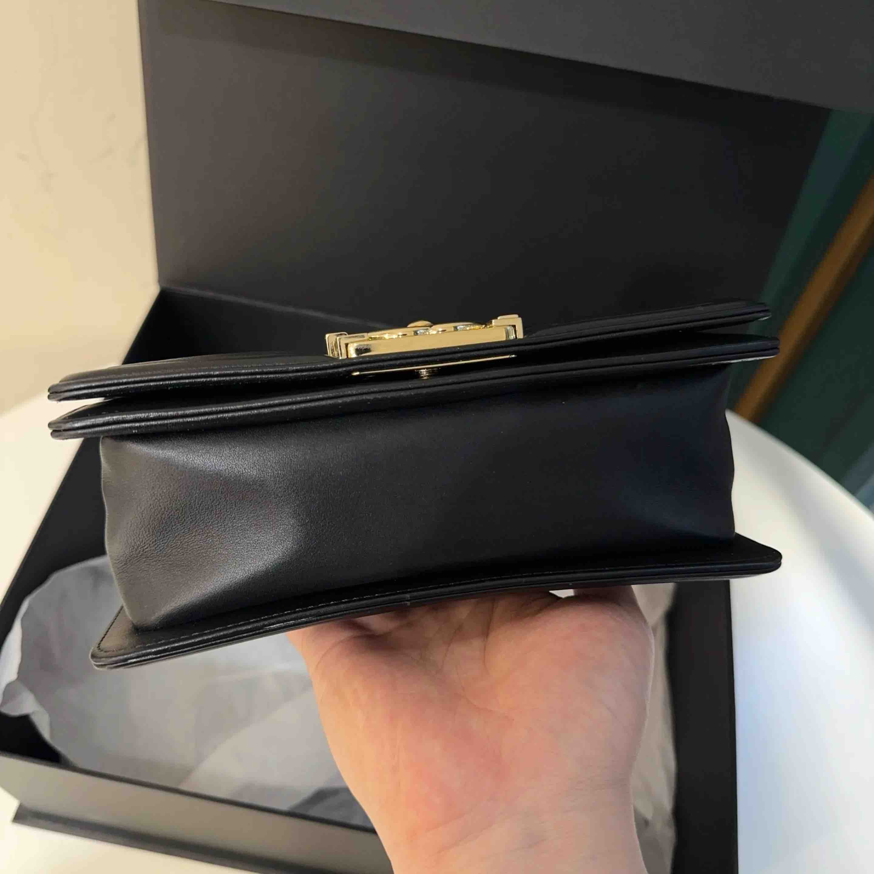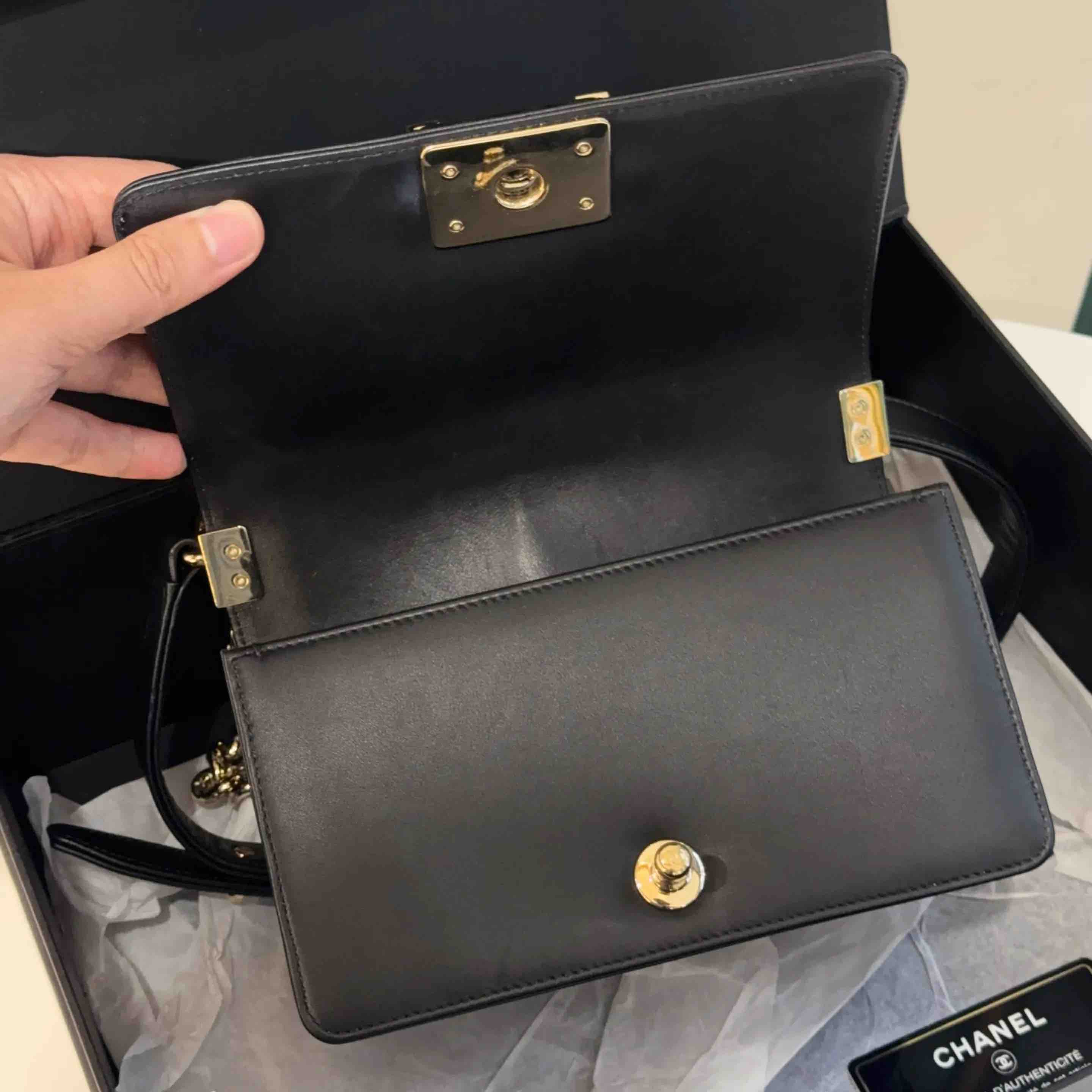 【商品详情】正品二手 CHANEL leboy 小号 V纹 黑金 牛皮 链条包🥳 97新 20*13 镭射27开 配件:卡 盒子。率真个性