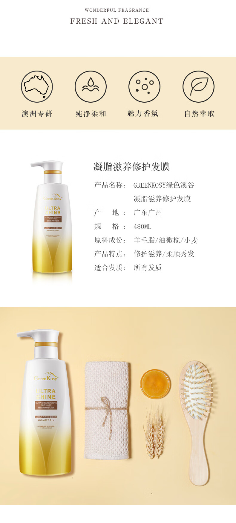 【分仓直发包邮】绿色溪谷凝脂滋养修护发膜480ml