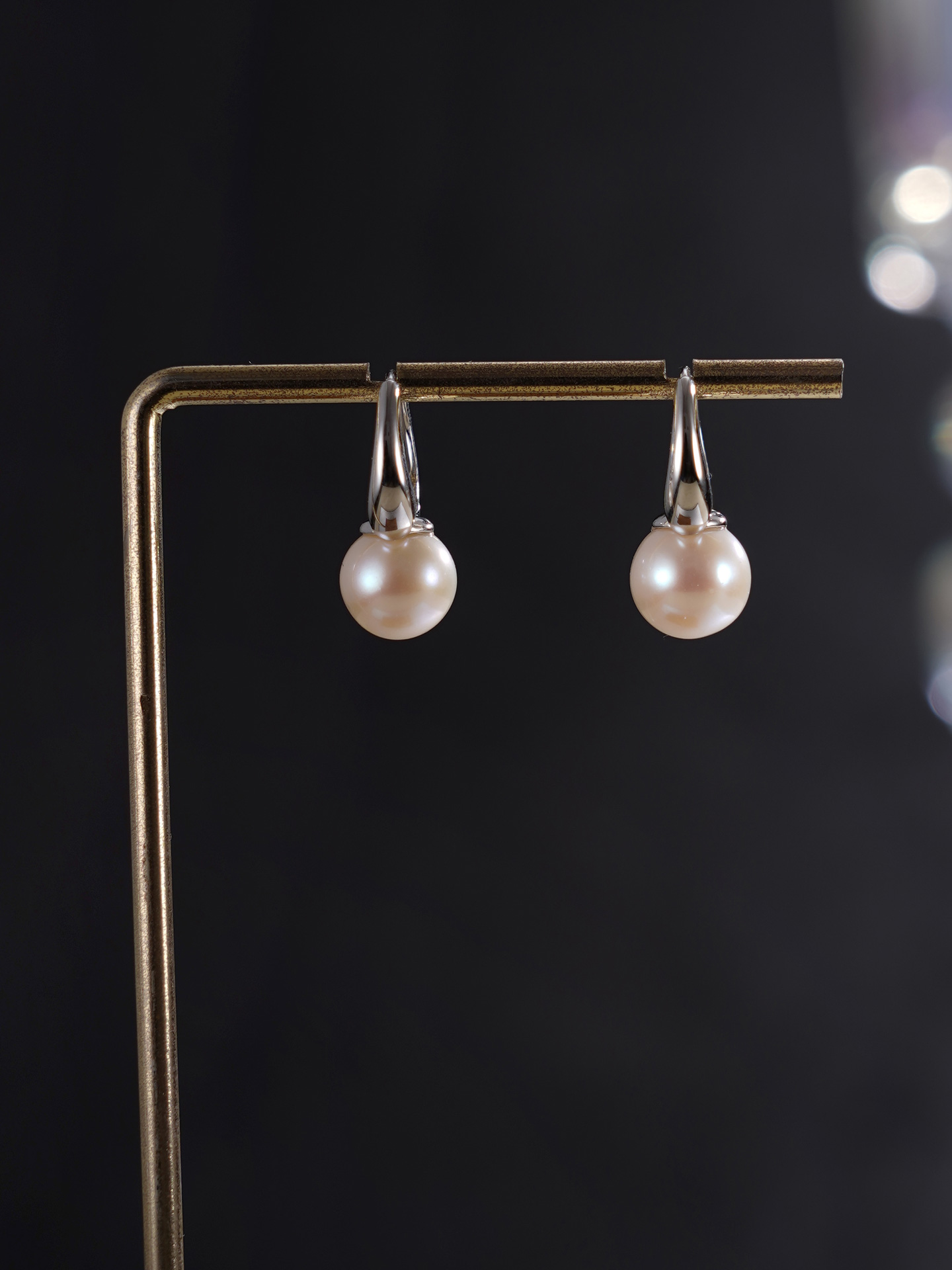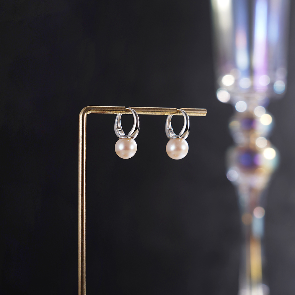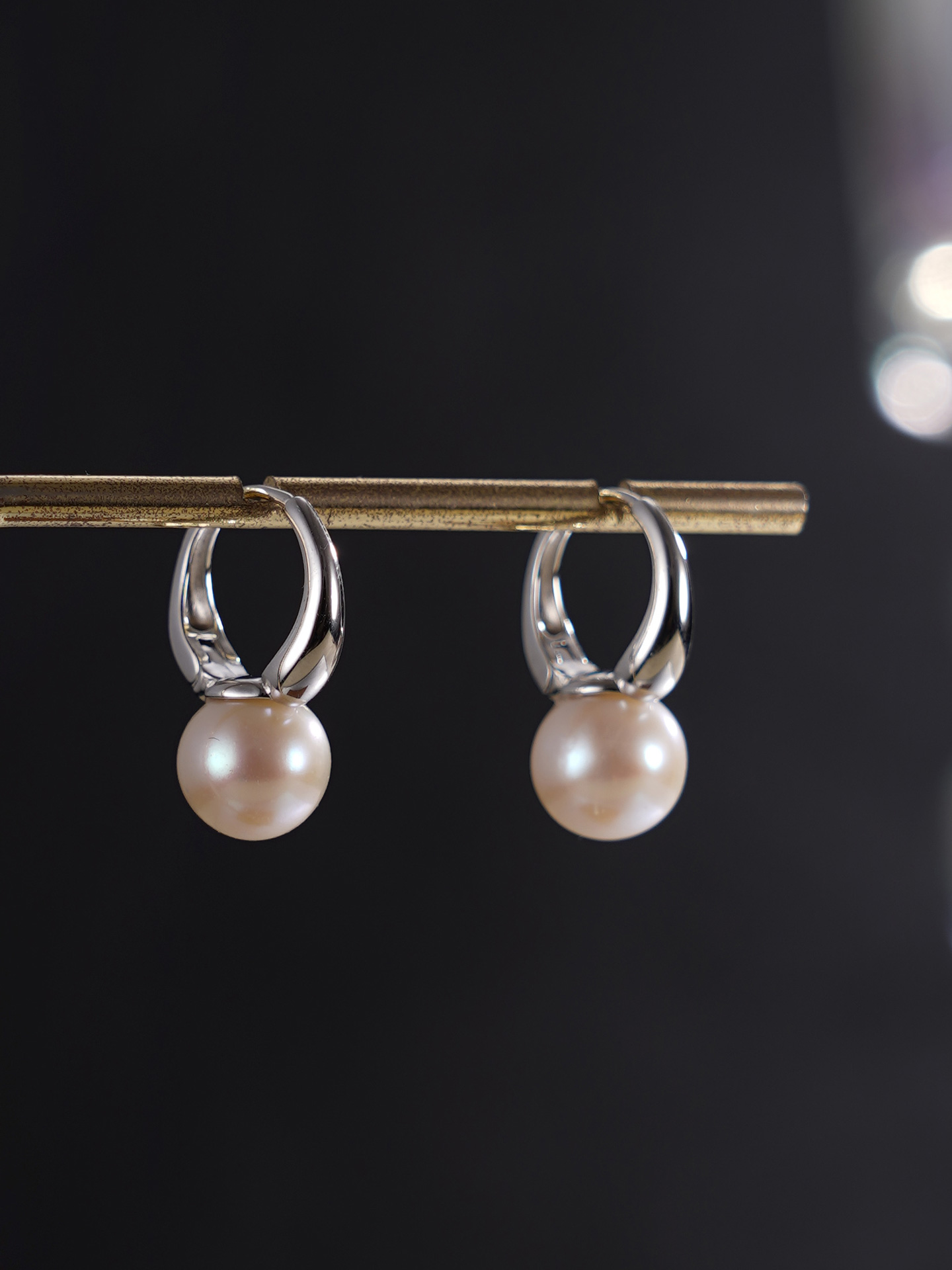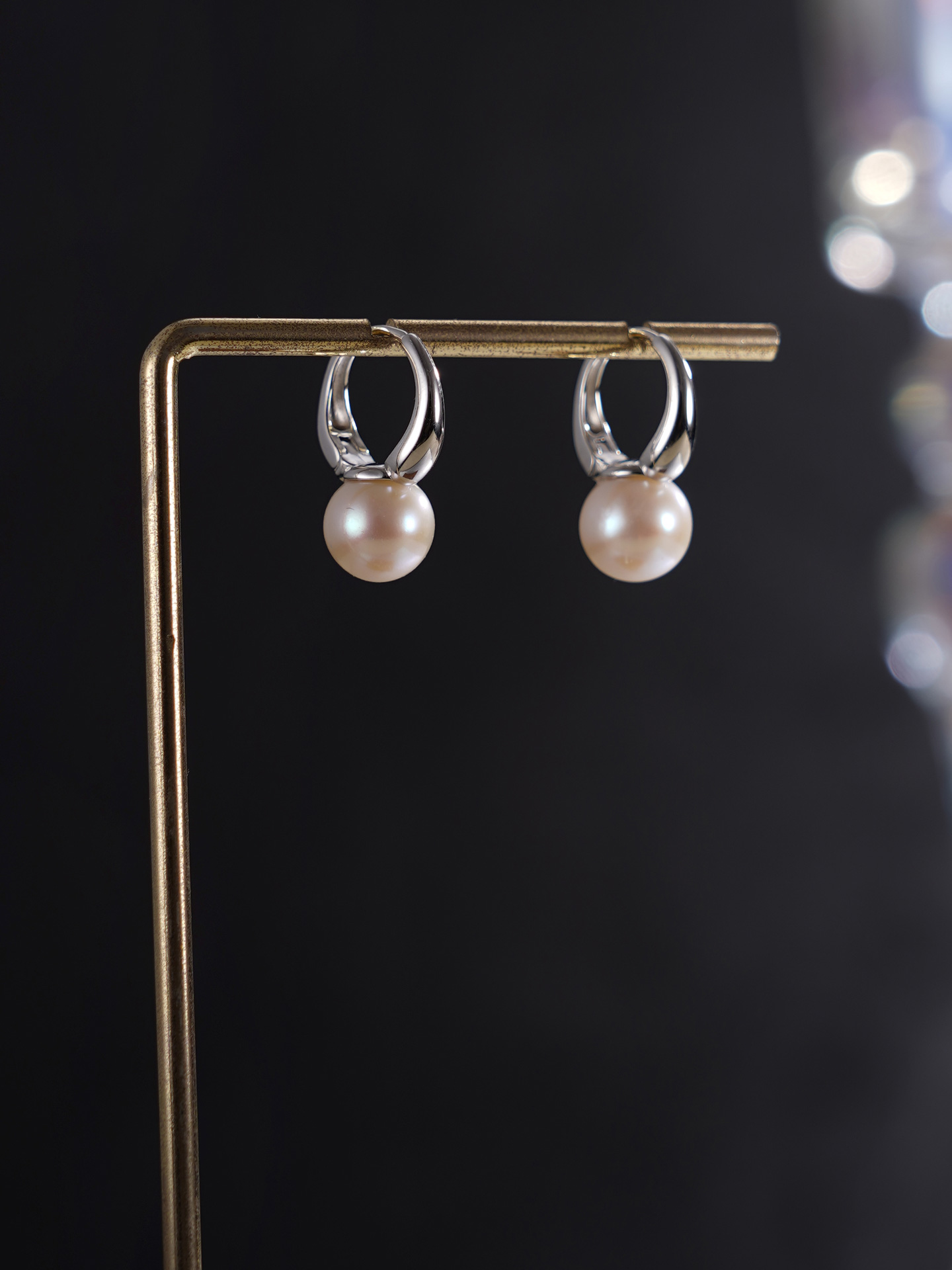 子佩集【时光简梦】银S925珍珠惜王妃耳环【E4357】8.8mm珠双色圆圈扣环2601