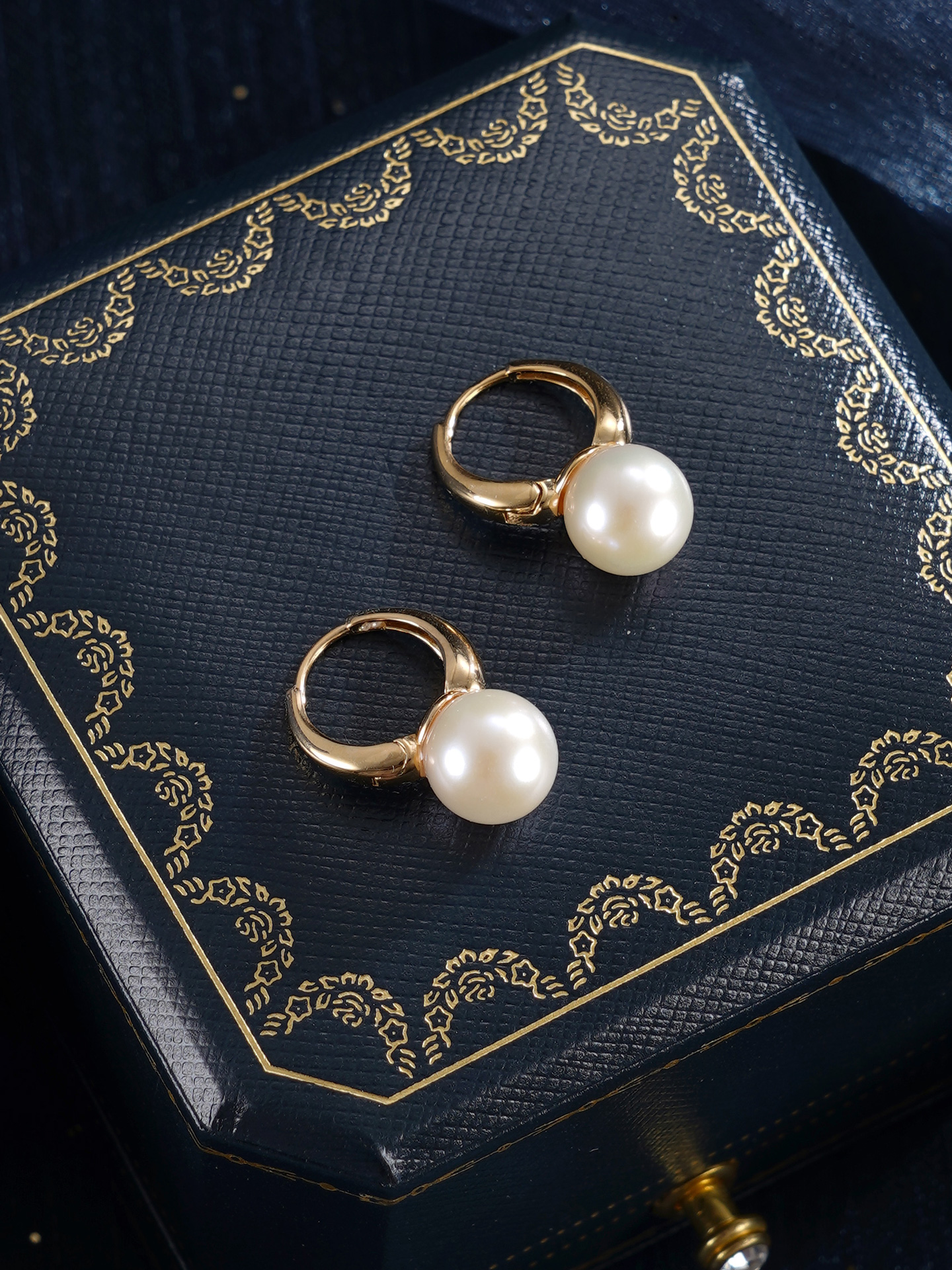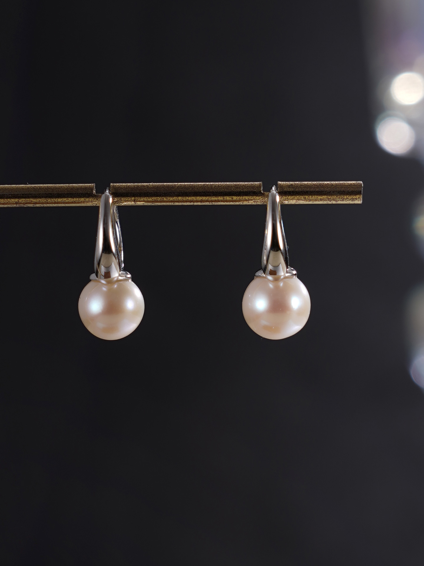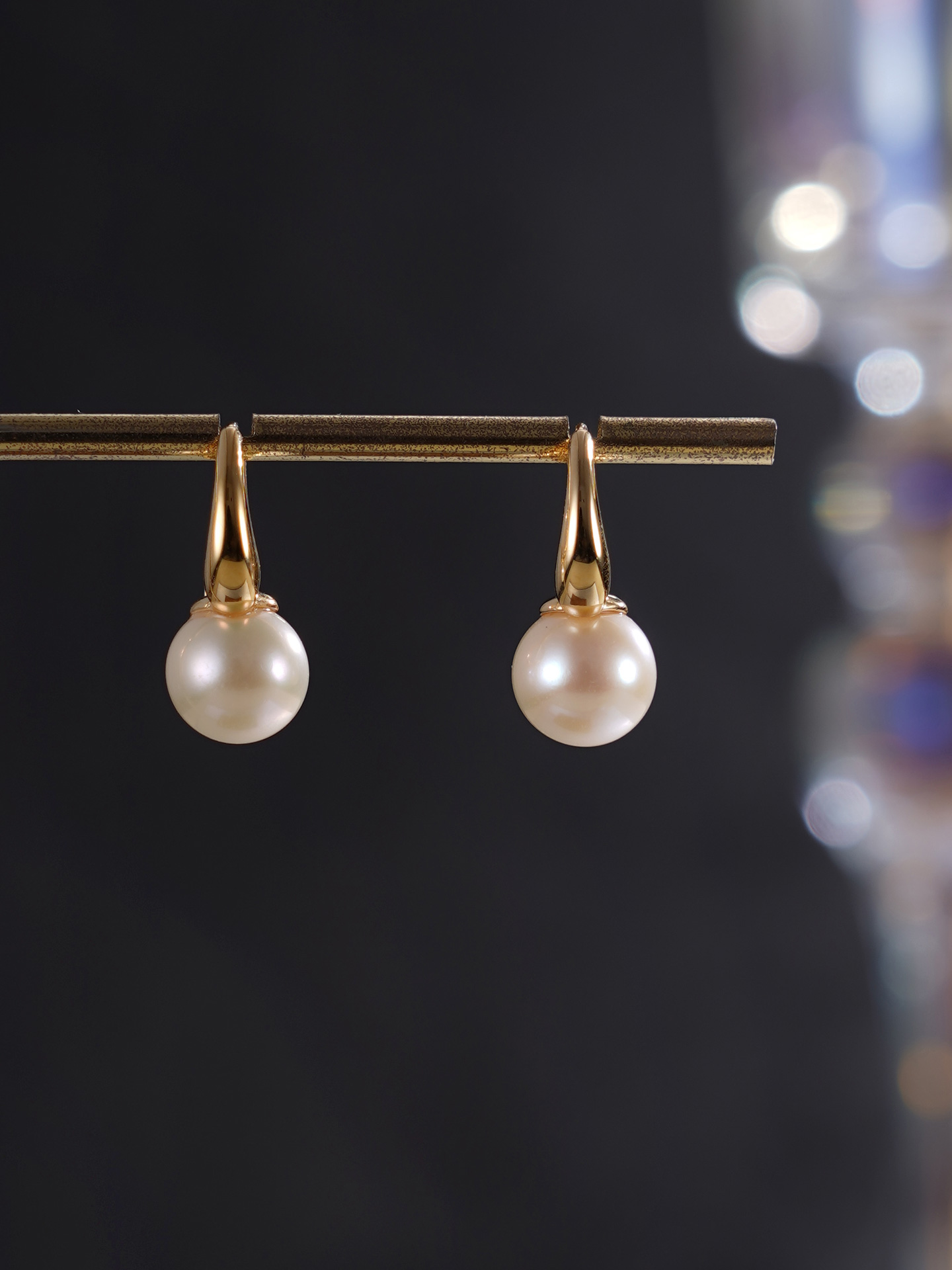 子佩集【时光简梦】银S925珍珠惜王妃耳环【E4357】8.8mm珠双色圆圈扣环2601