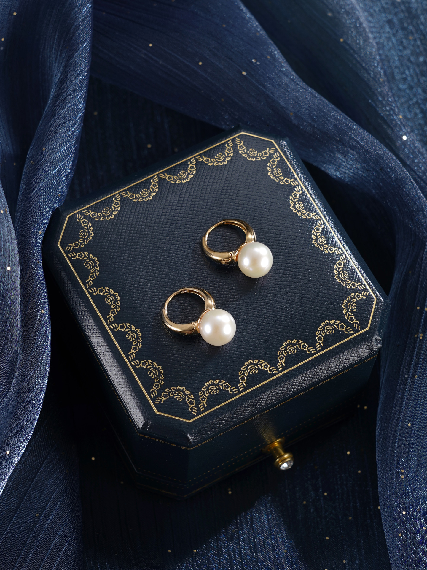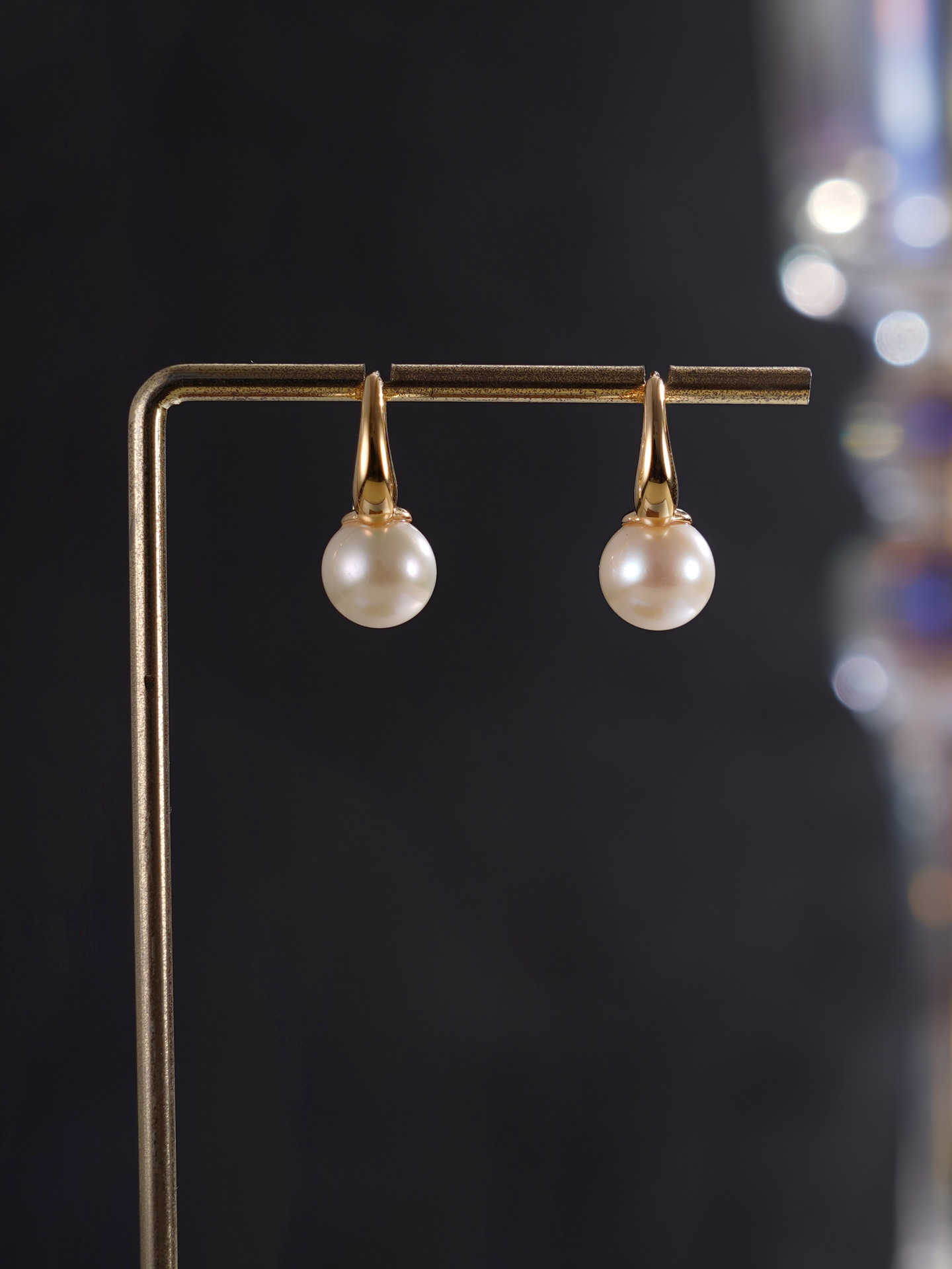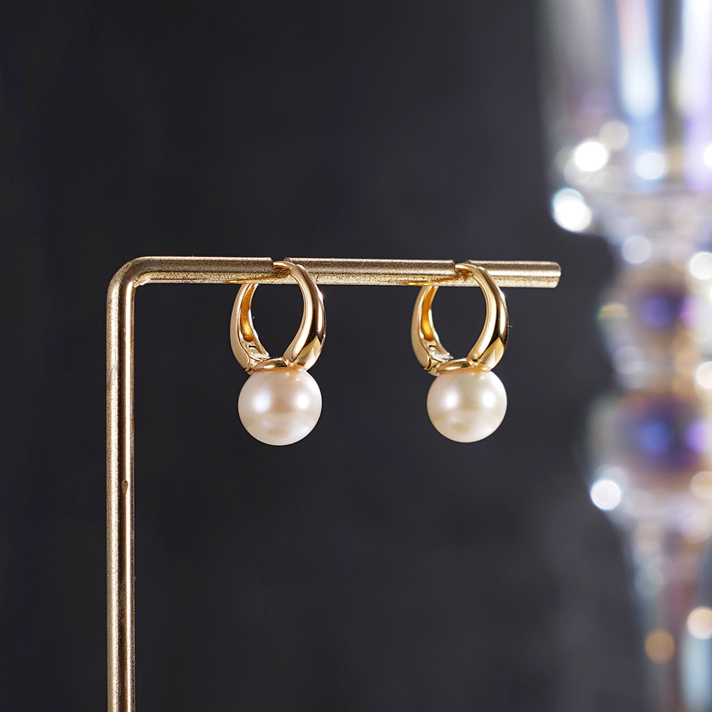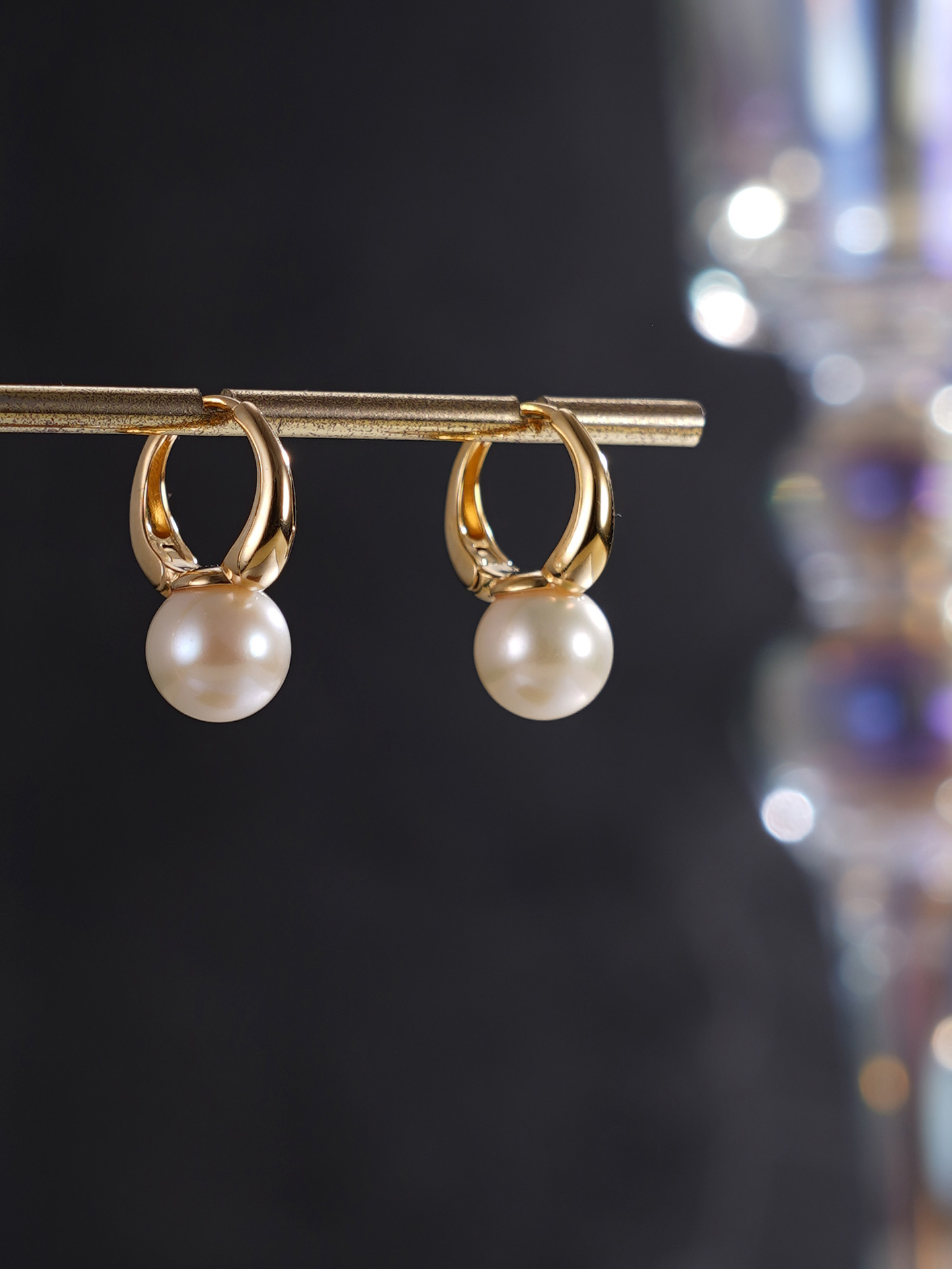 子佩集【时光简梦】银S925珍珠惜王妃耳环【E4357】8.8mm珠双色圆圈扣环2601