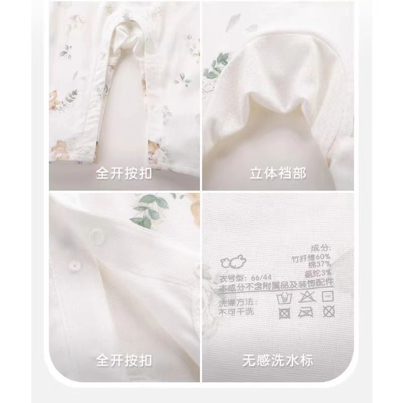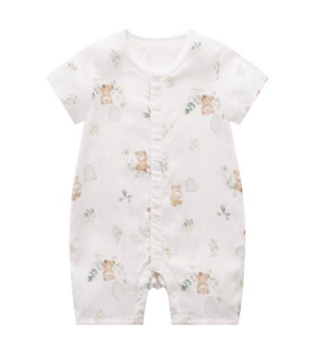 拉比-内衣类(夏)I5小熊纱布短袖全开连体衣米白