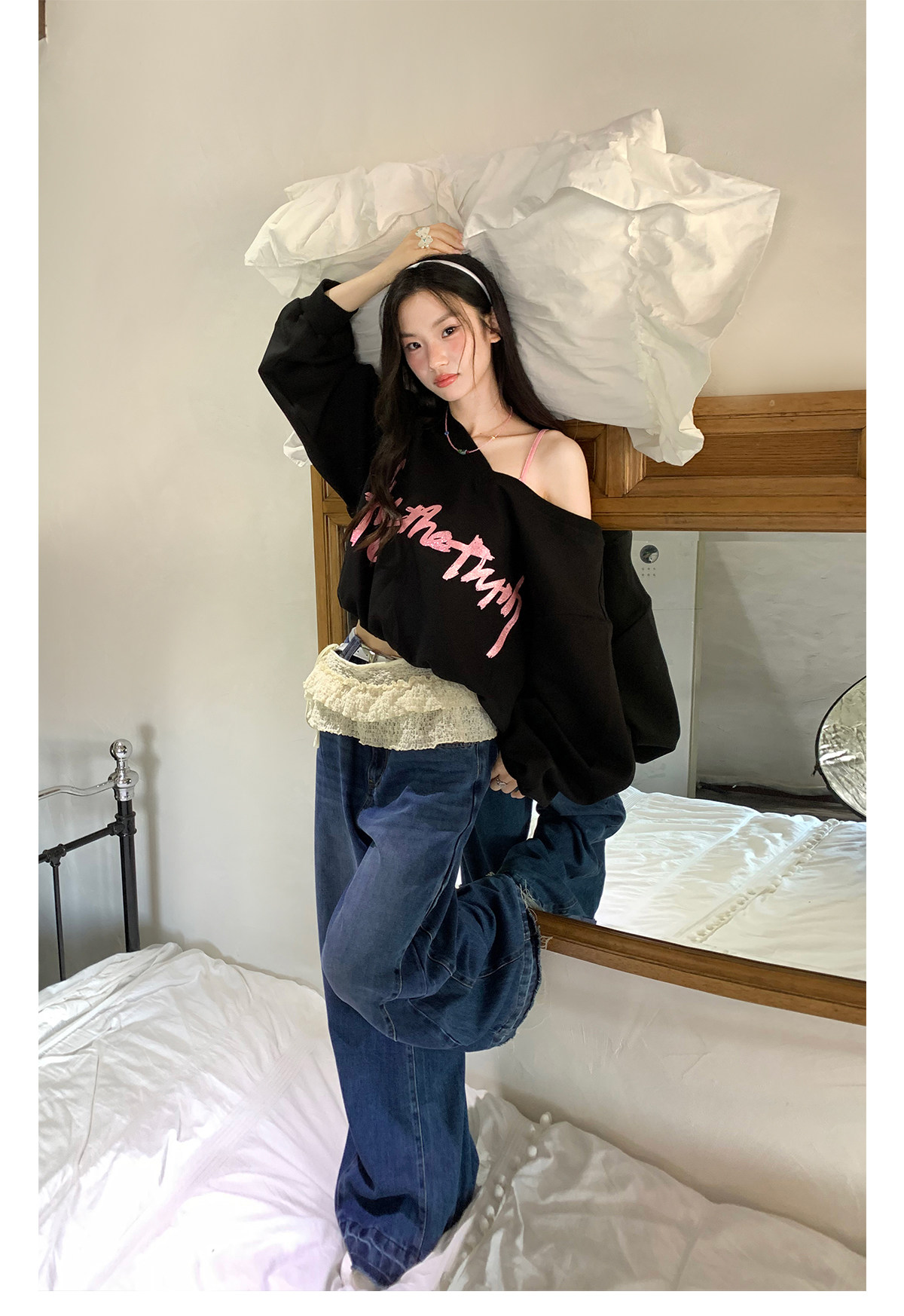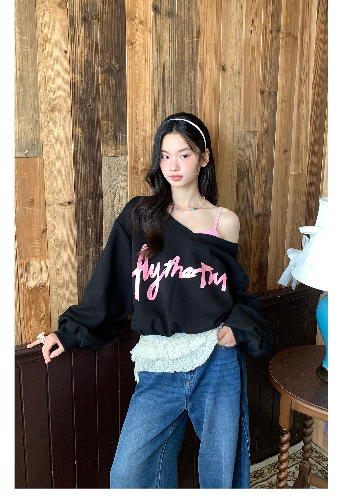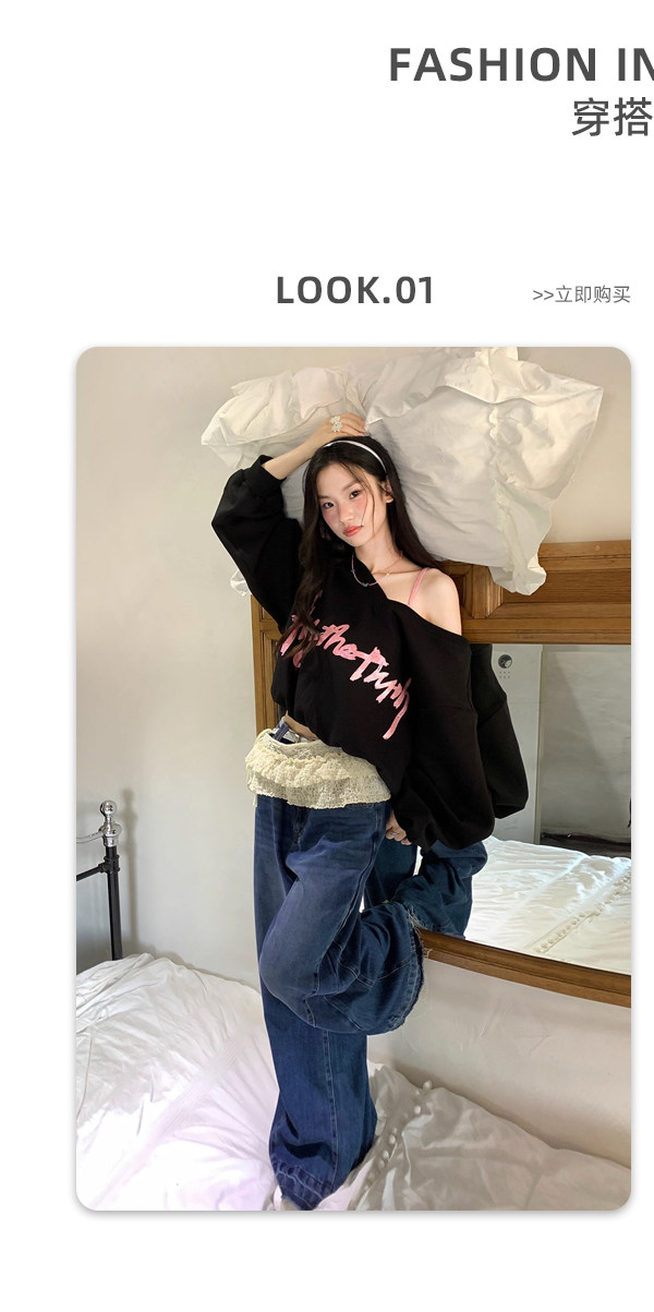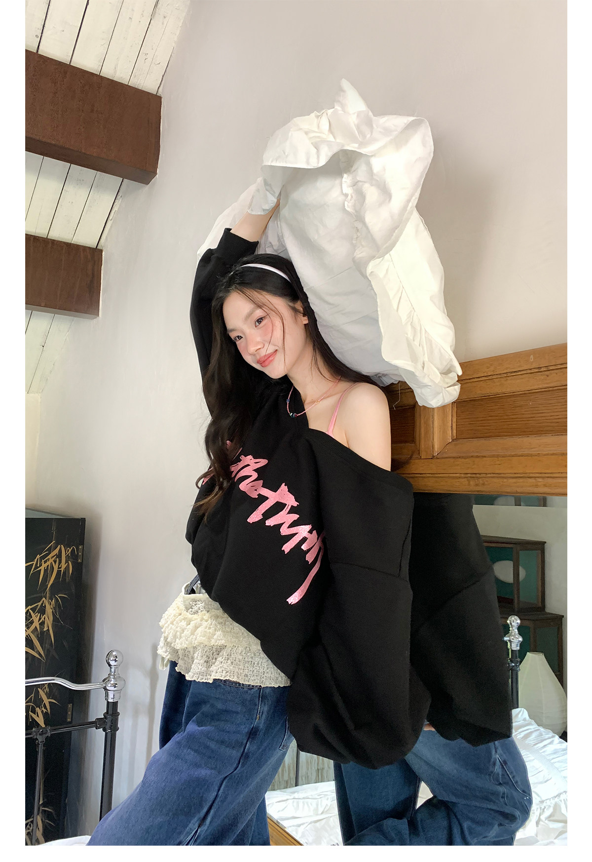 FTT FlyTheTruth『悸动花蕊』 韩系露肩卫衣女秋季新款宽松外套潮