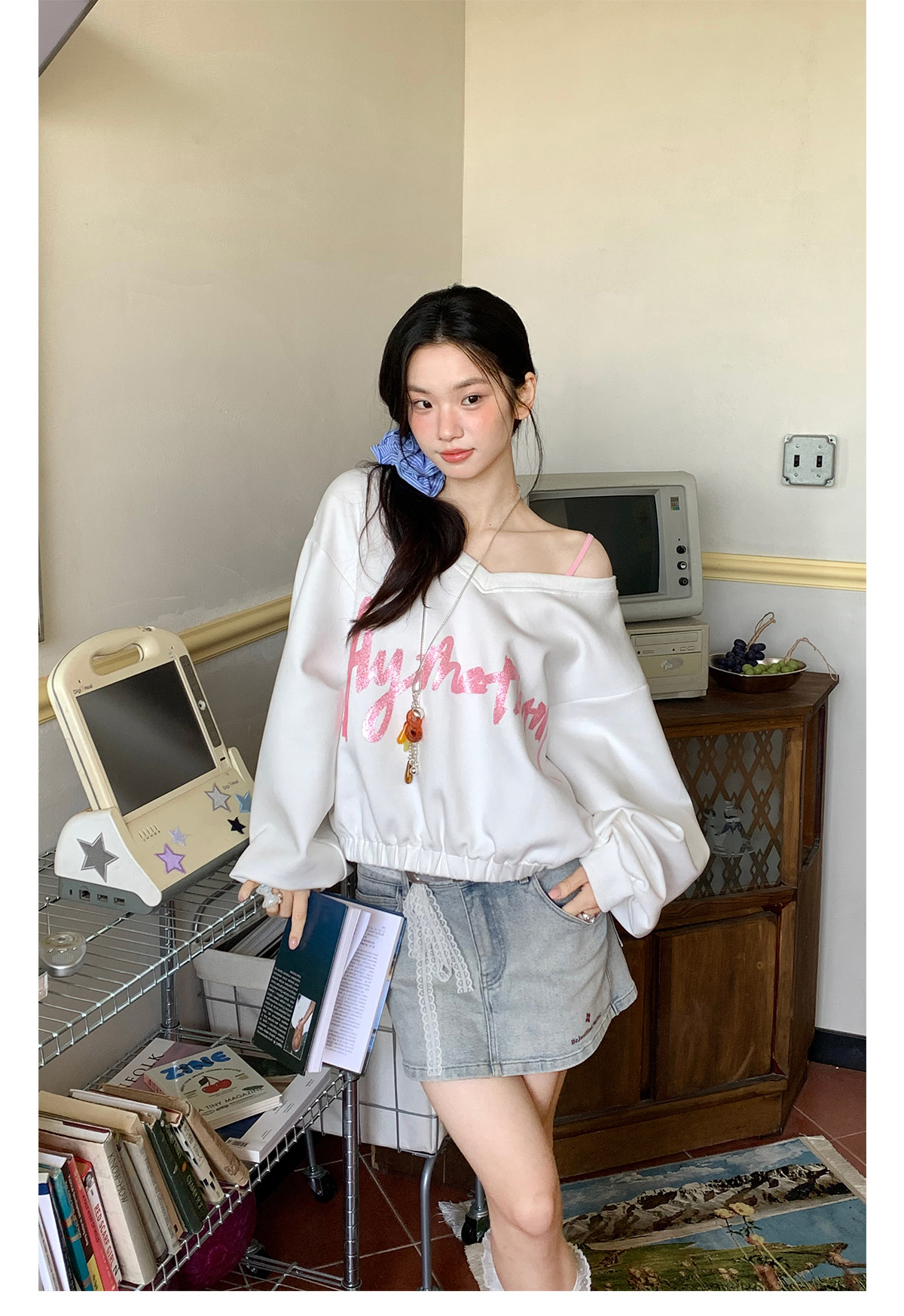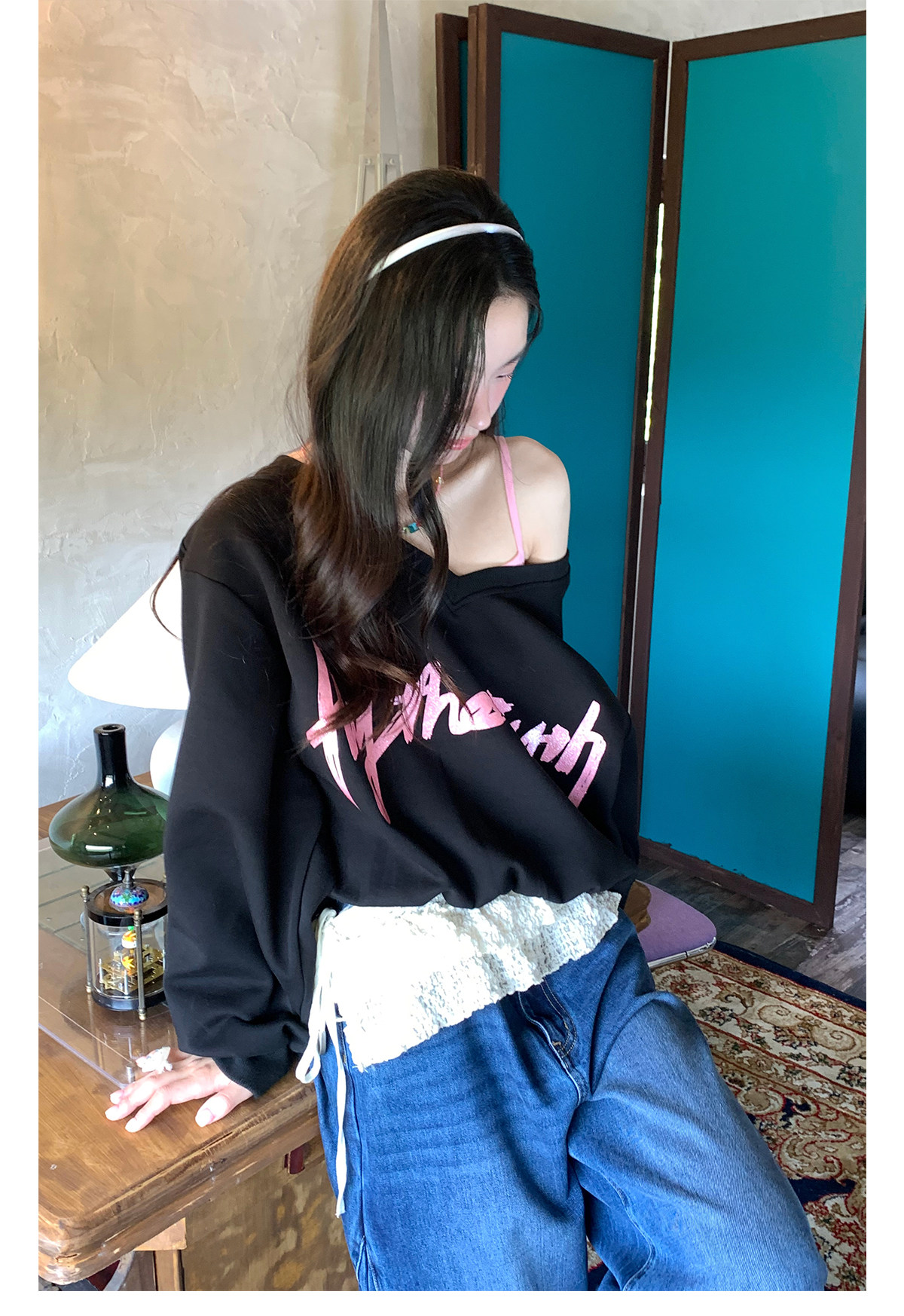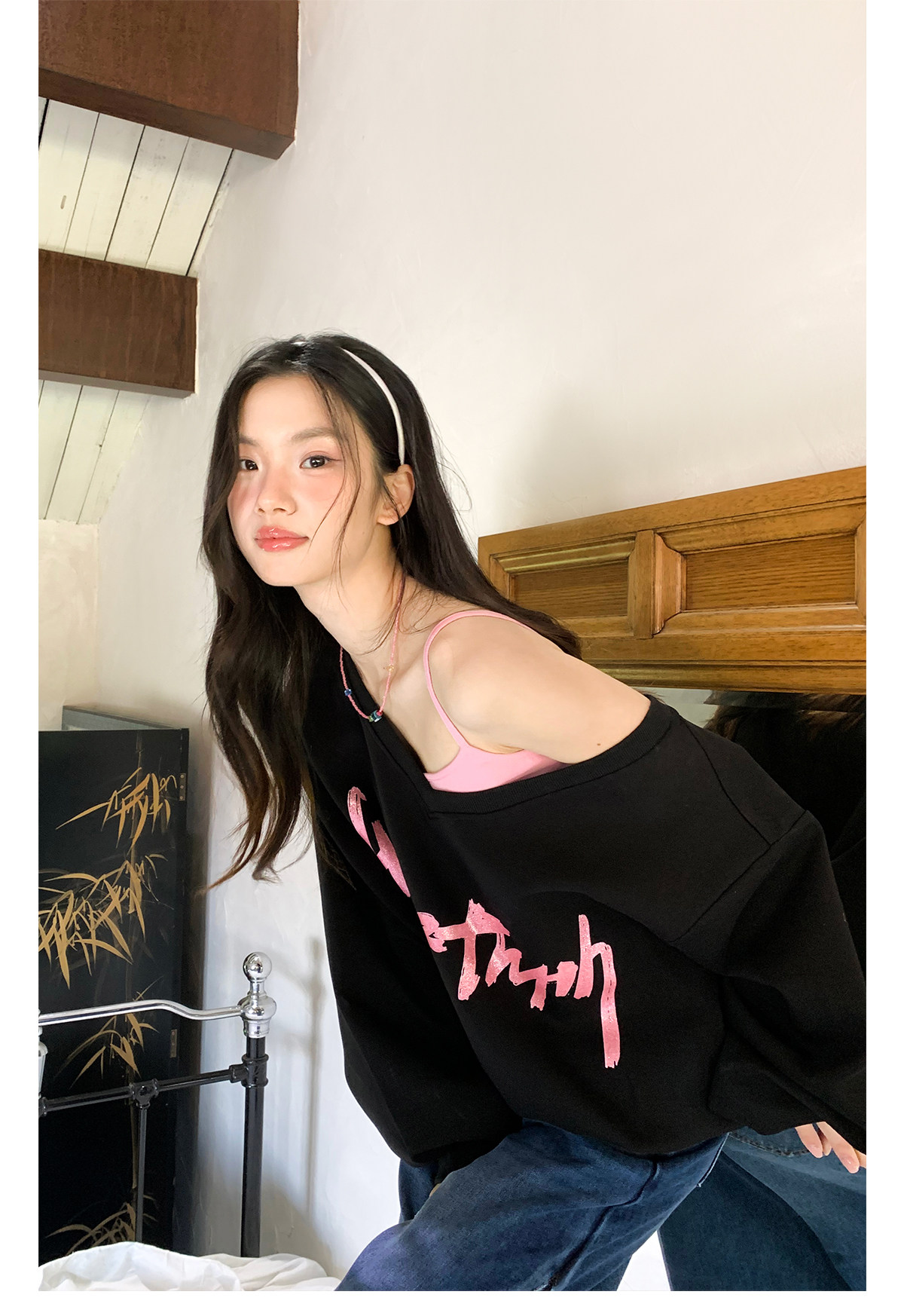 FTT FlyTheTruth『悸动花蕊』 韩系露肩卫衣女秋季新款宽松外套潮