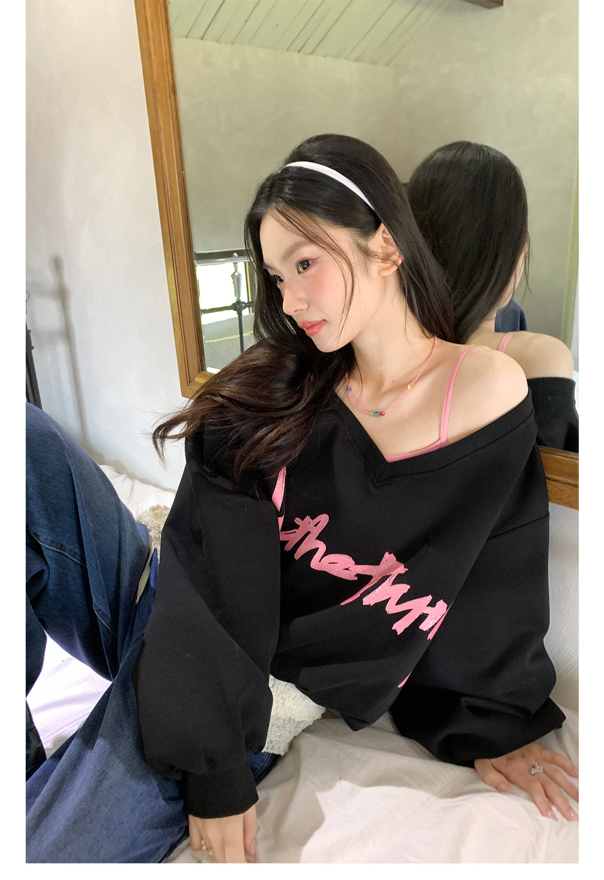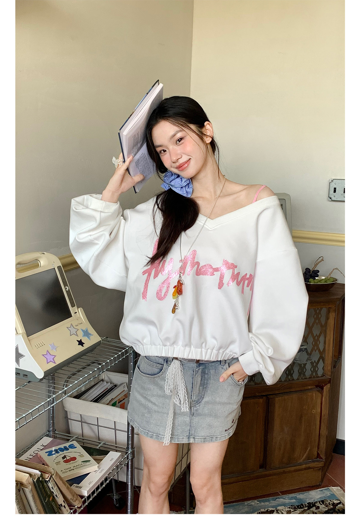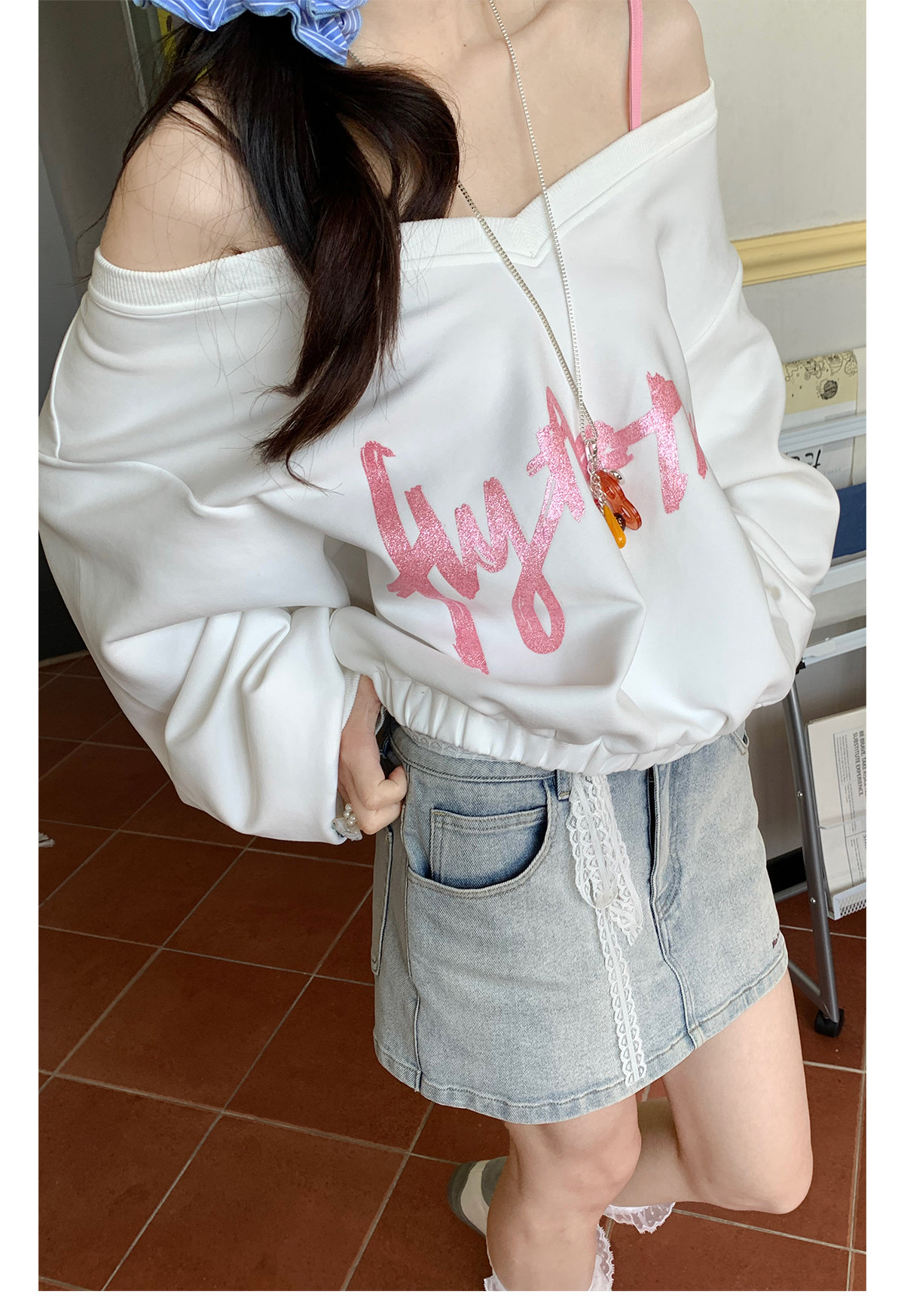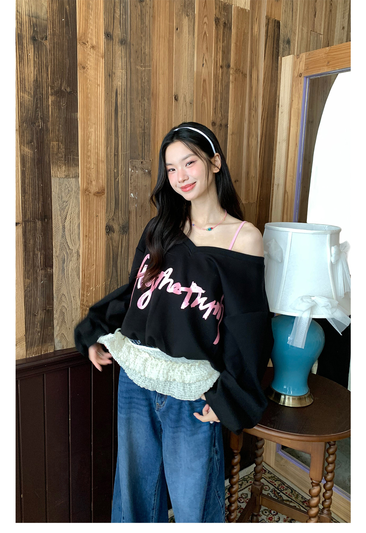 FTT FlyTheTruth『悸动花蕊』 韩系露肩卫衣女秋季新款宽松外套潮