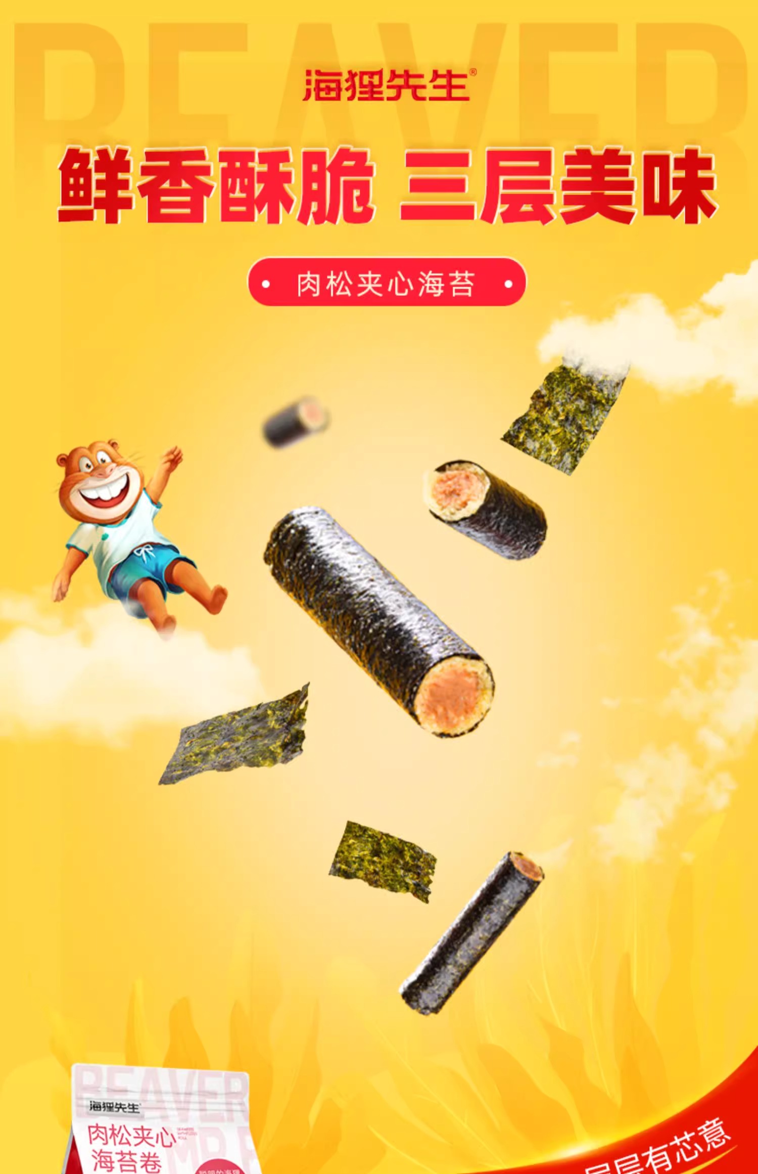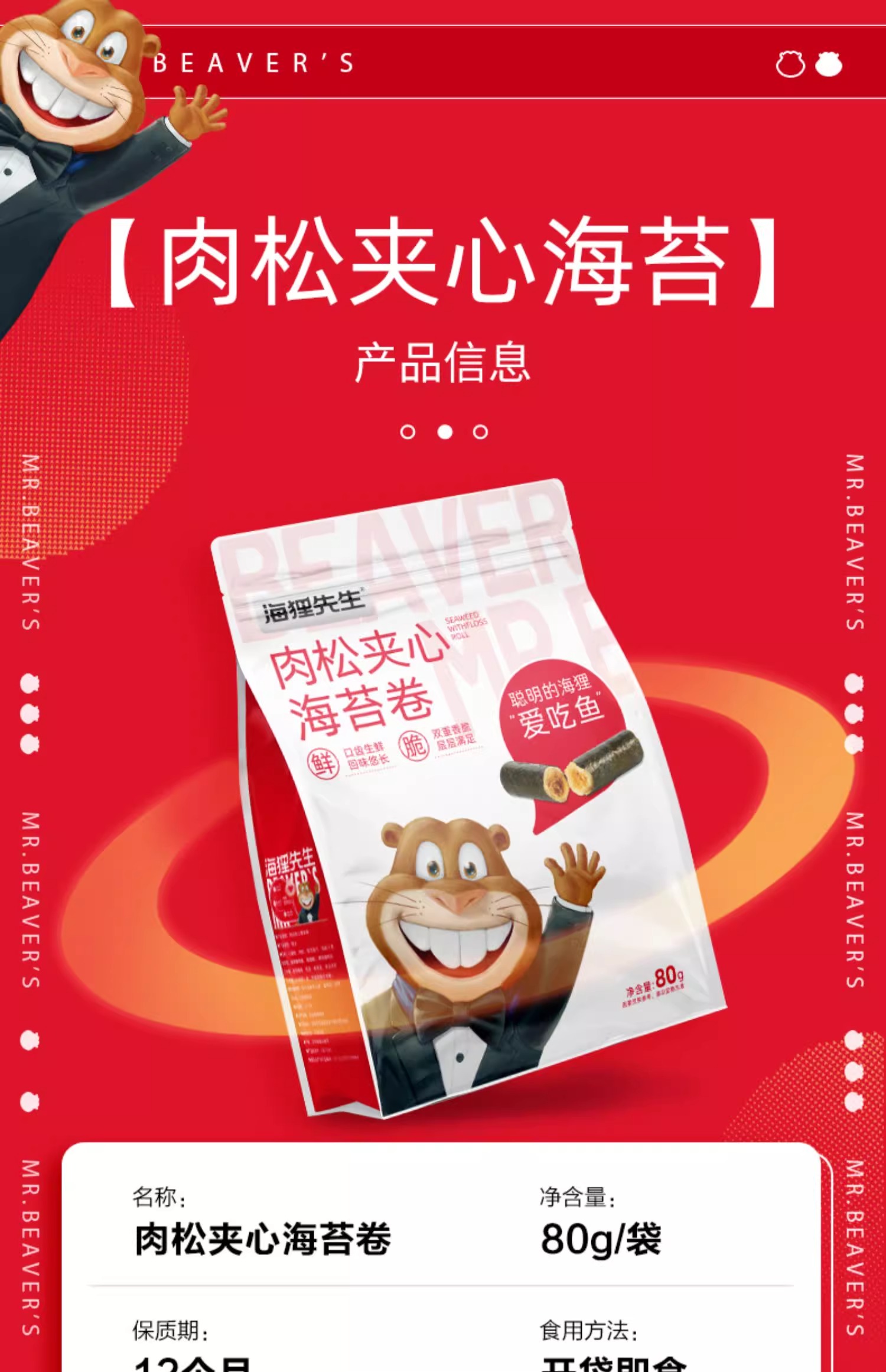 【分仓直发包邮】海狸先生海肉松卷肉松小贝90g/盒+蛋黄夹心肉松海苔卷80g/袋