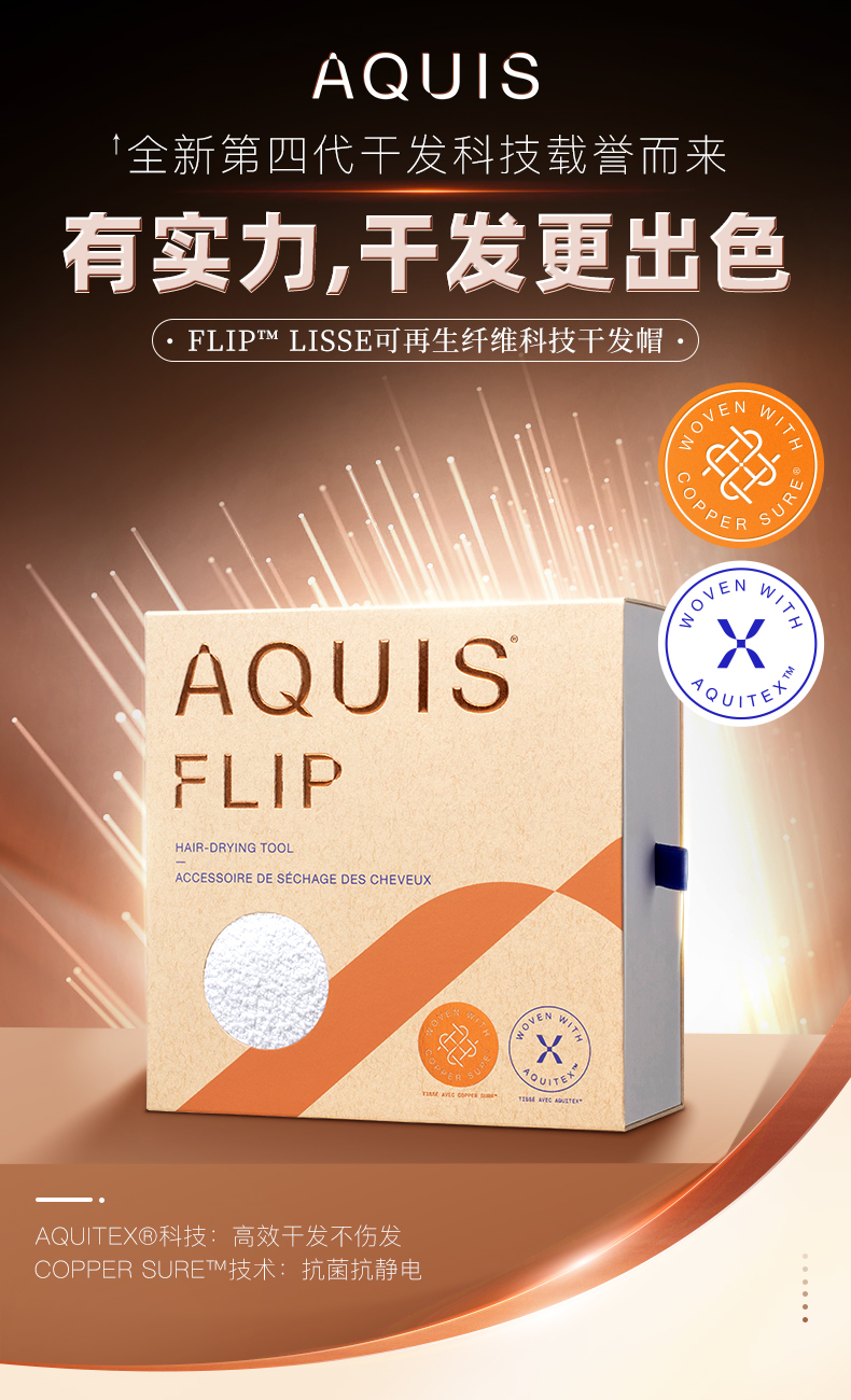 品牌直发 AQUIS Flip™Lisse 科技纤维干发帽 30x74cm 雪梨白