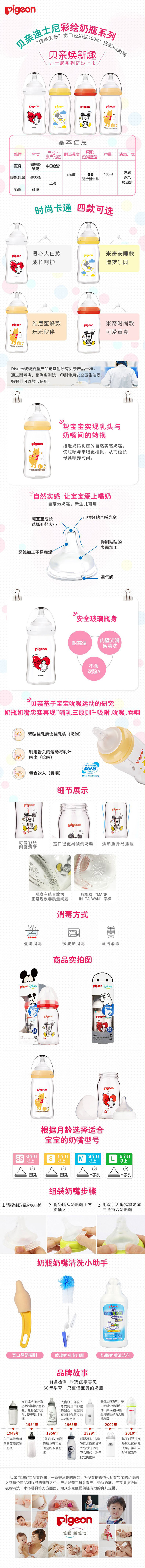 贝亲迪士尼“自然实感”宽口径玻璃彩绘奶瓶160ml配SS奶嘴