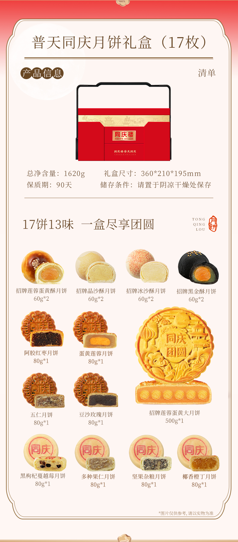 【售罄勿拍】同庆楼 普天同庆礼盒1620g 中秋月饼礼盒装 17饼13味 匠心制作 高端送礼 72小时发货