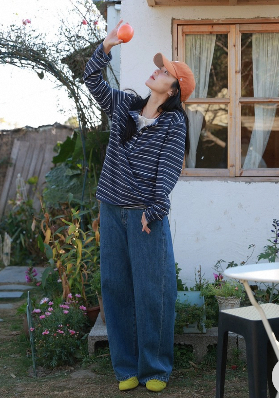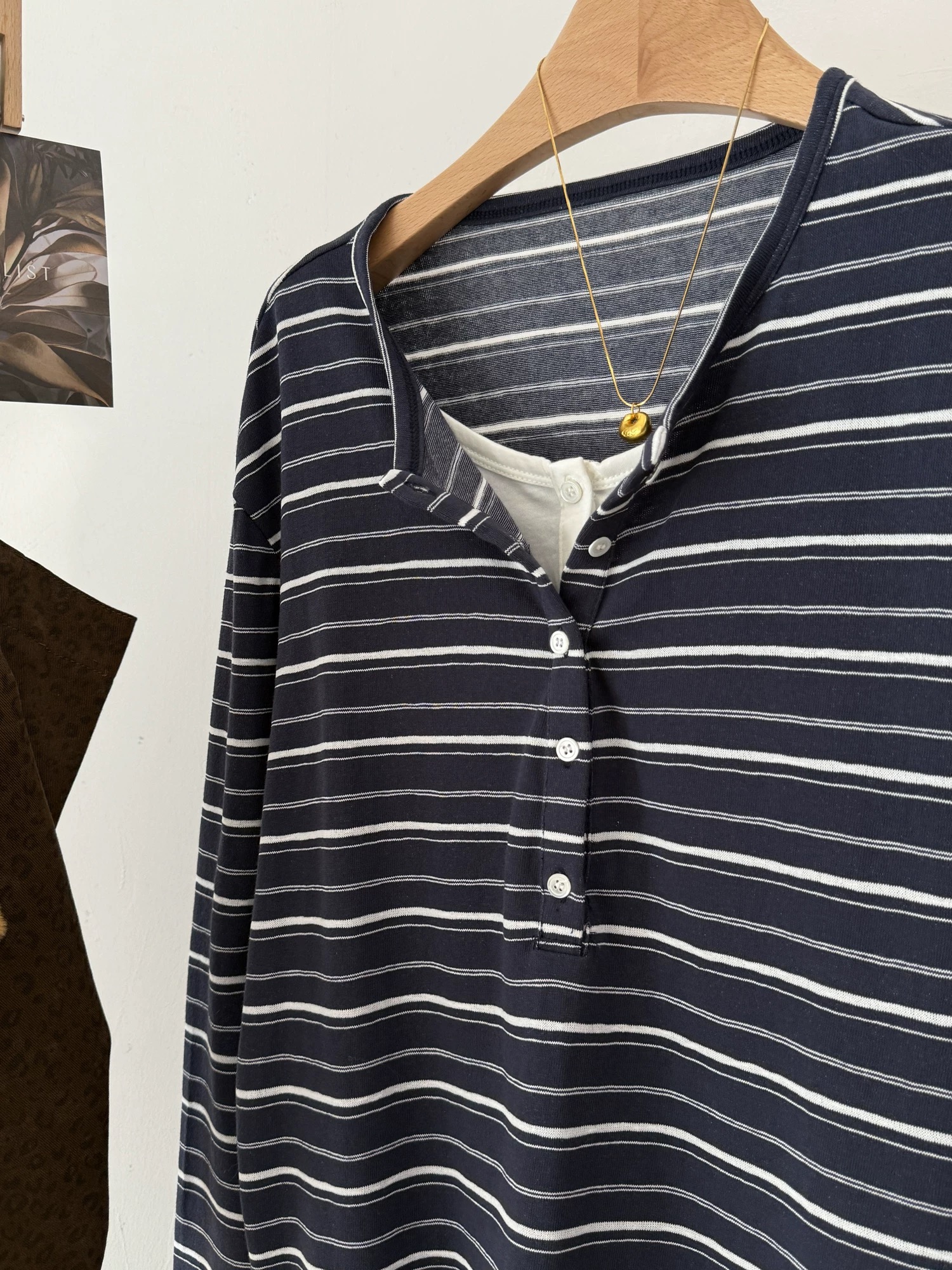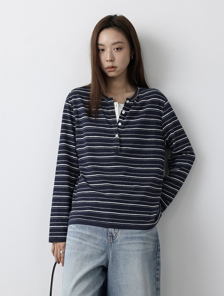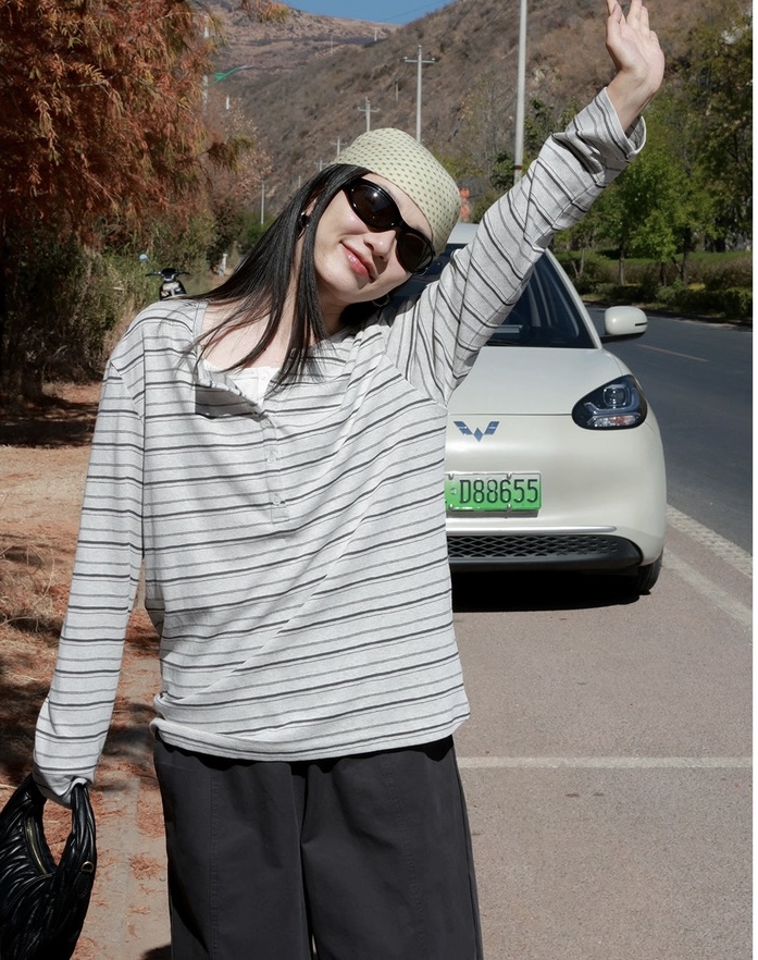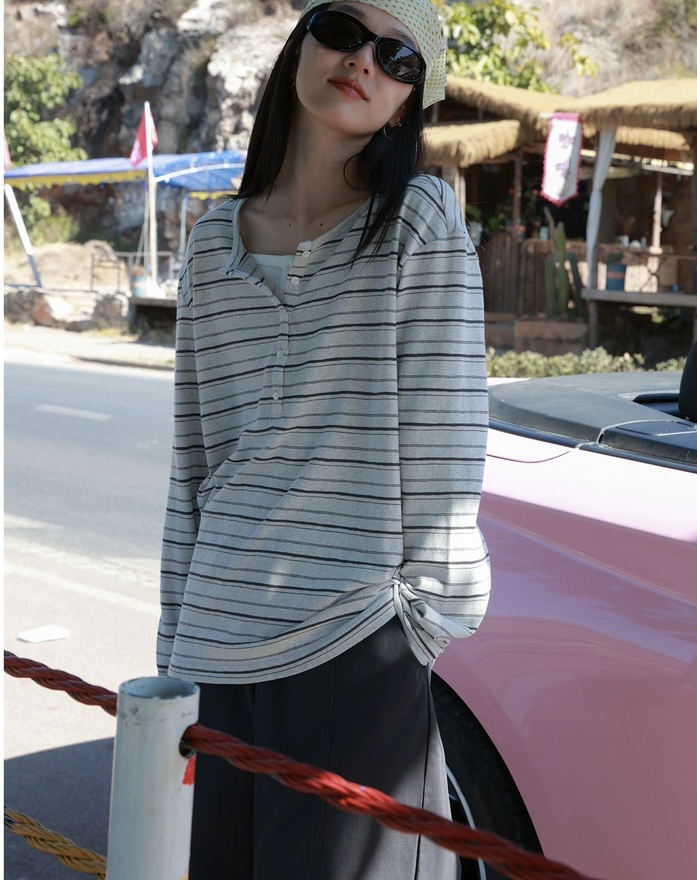 老米优品🎈预售7天!超显瘦!软fufu的春日触感~《假两件设计感半开襟条纹TEE》春天的松弛感,一件条纹T就够了🌿T260322A