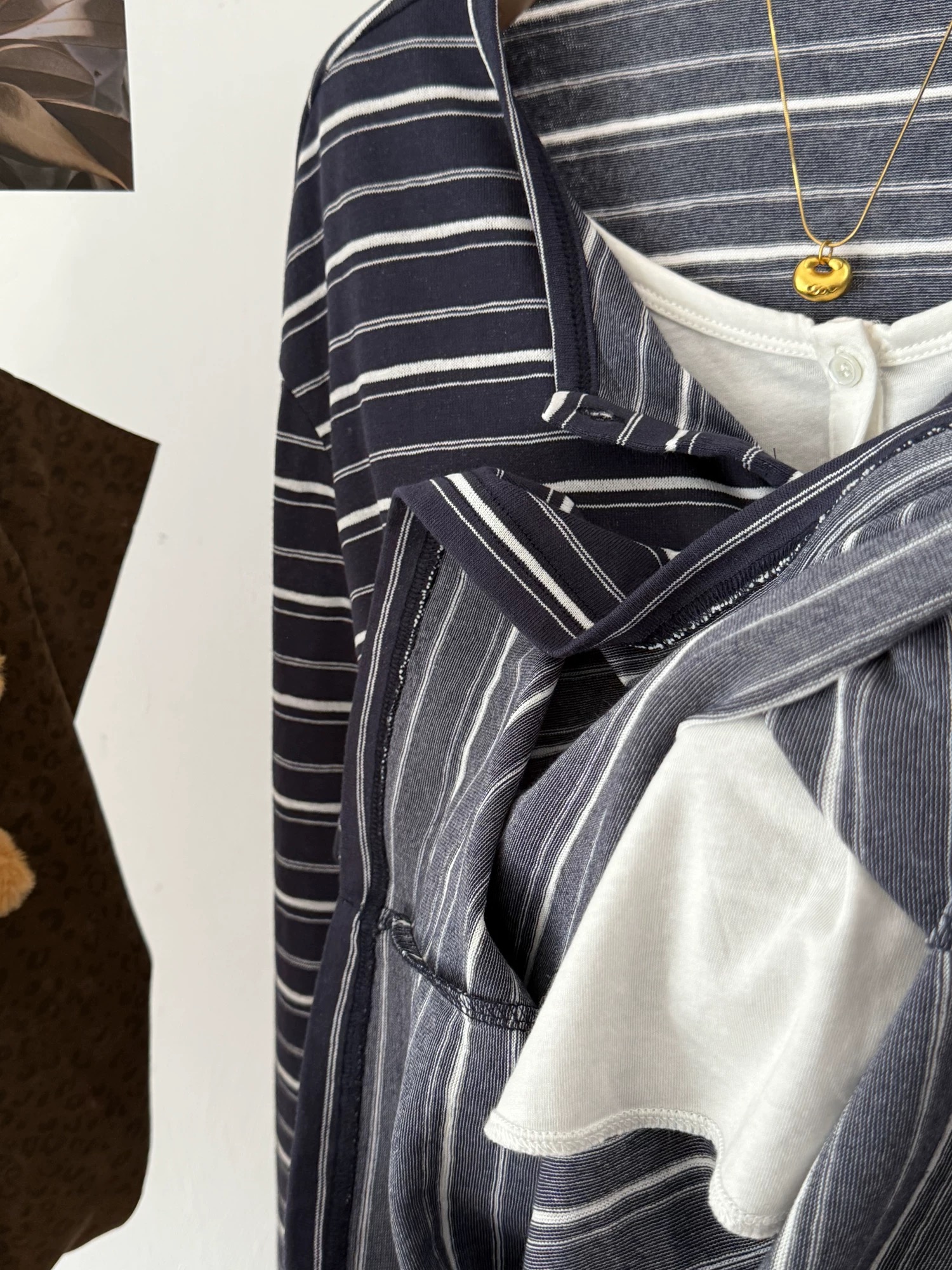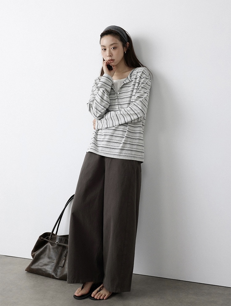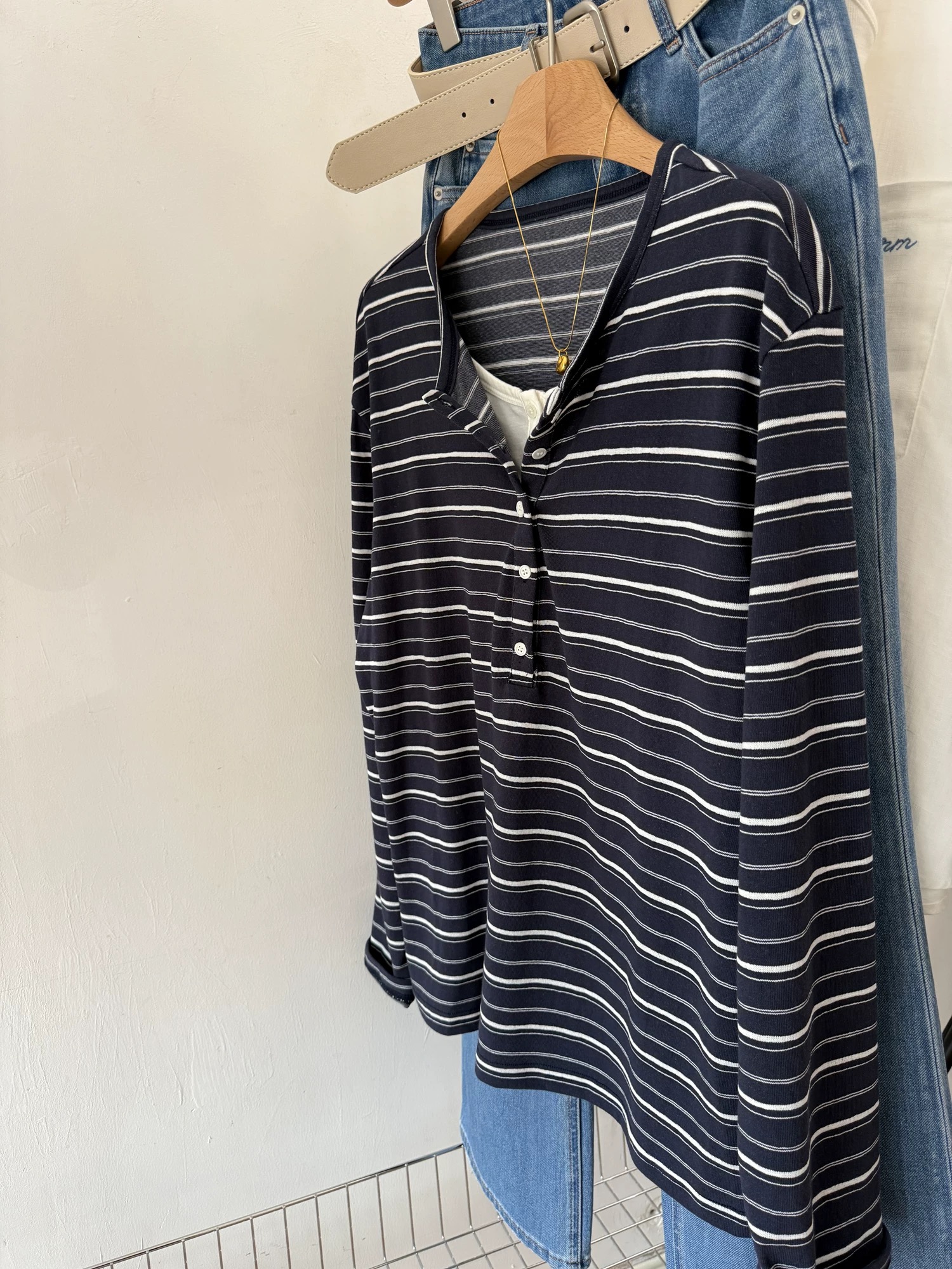 藏青白条复古,灰白条清冷,2个色都好喜欢呢~