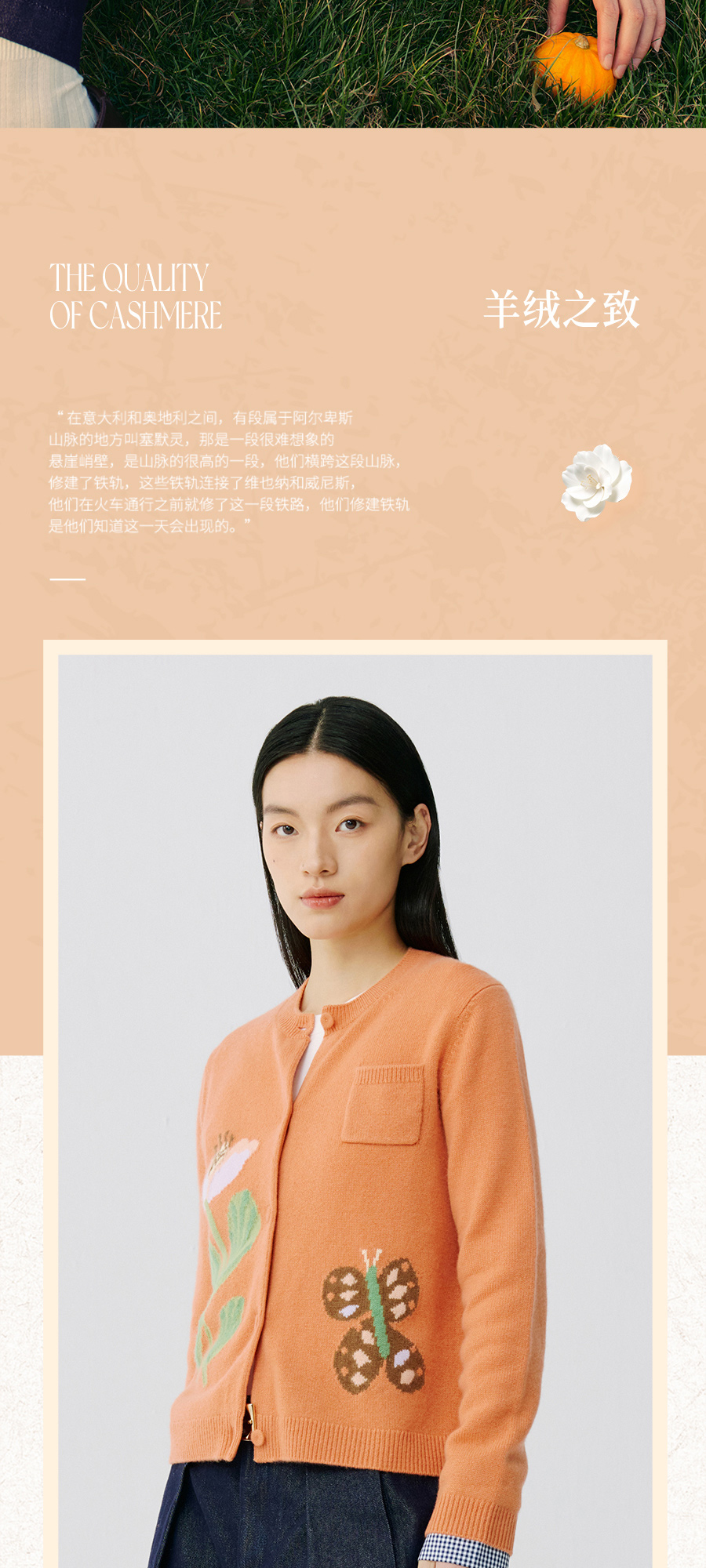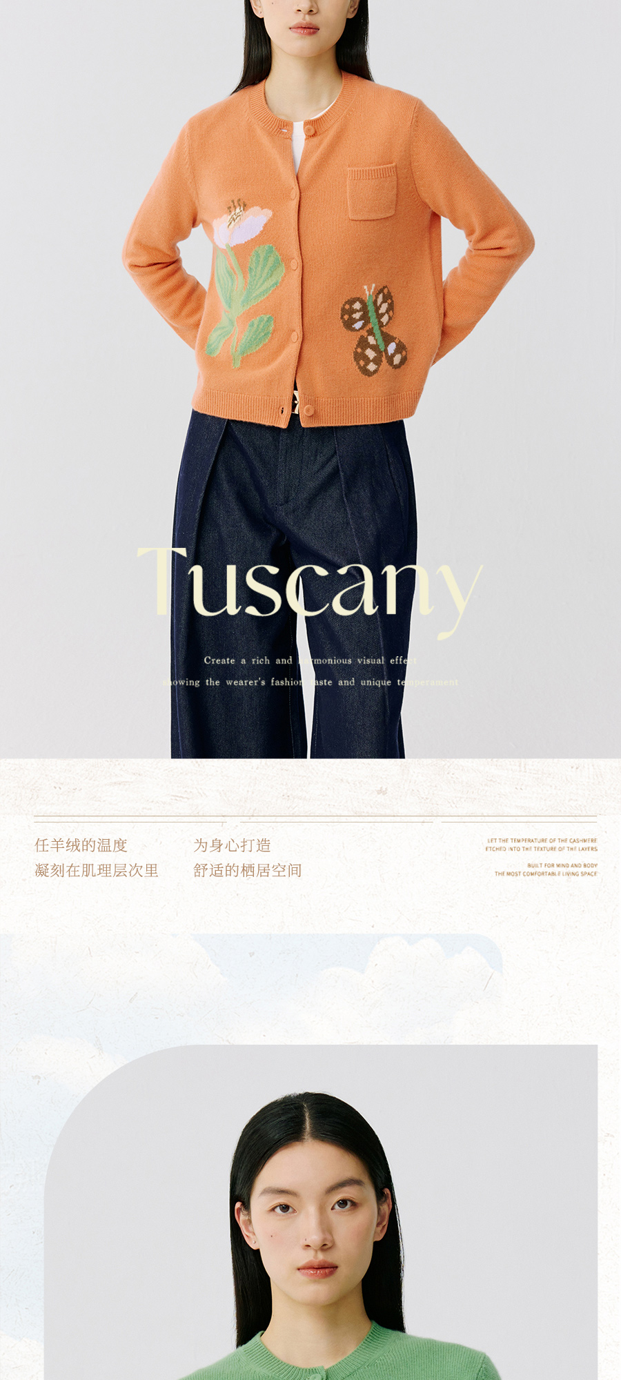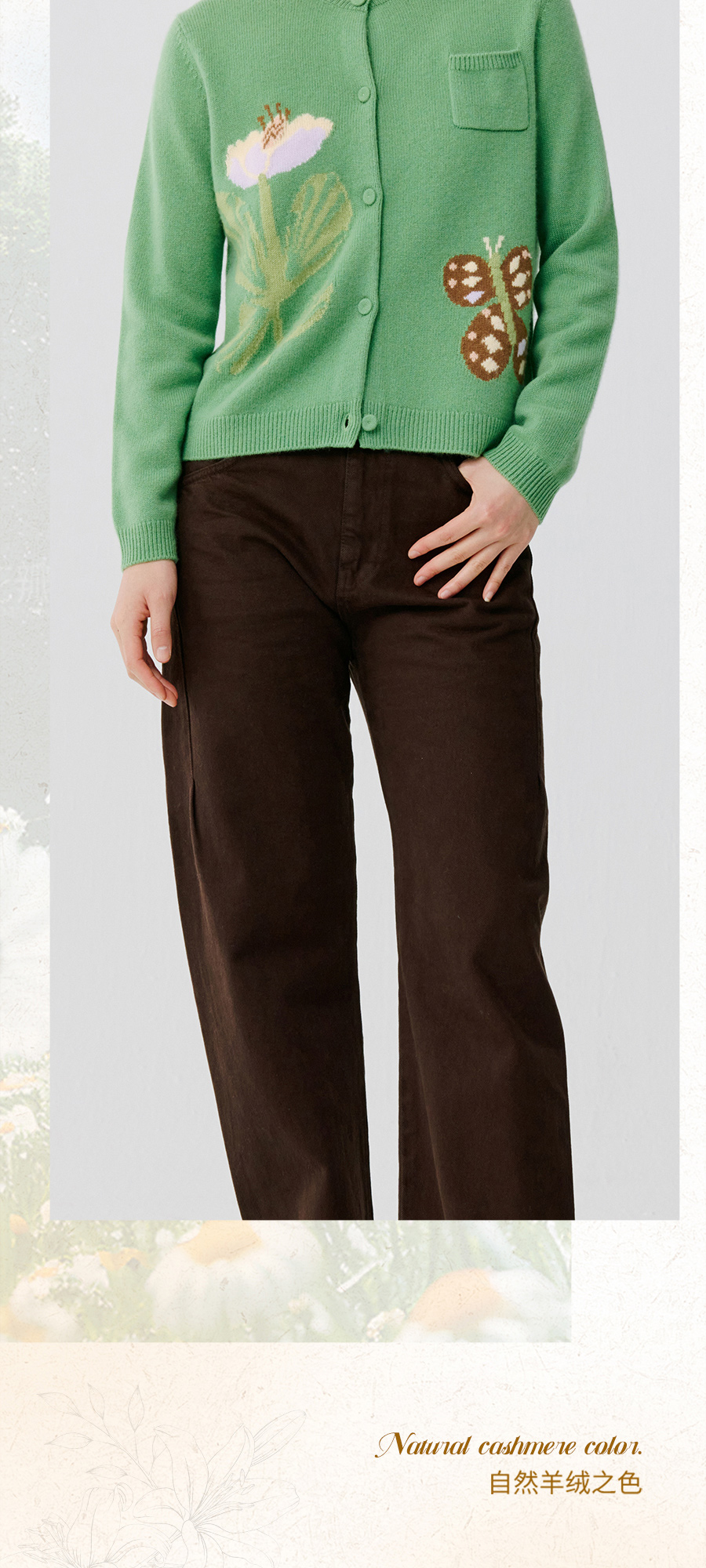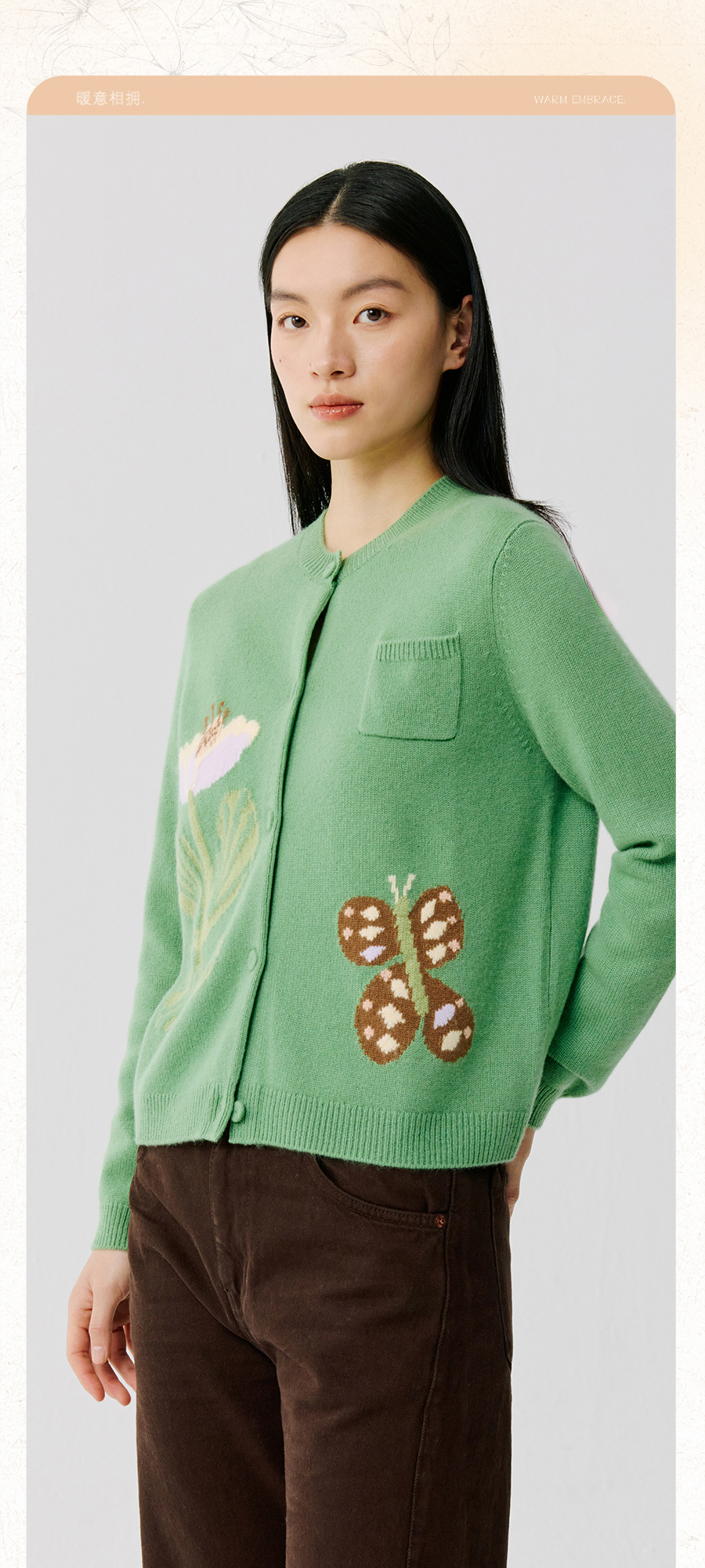 东黎 • 托斯卡纳系列—蝶语春光 山羊绒女士圆领提花长袖开衫 5024