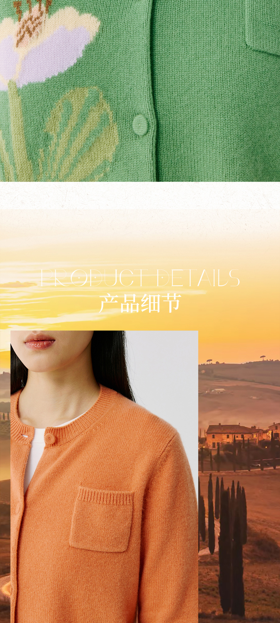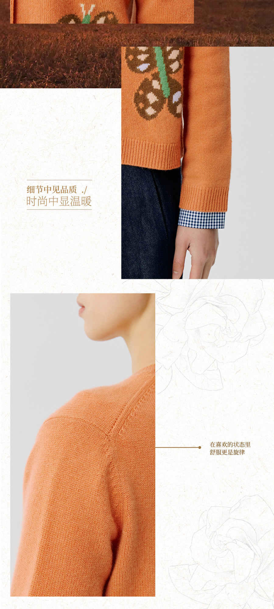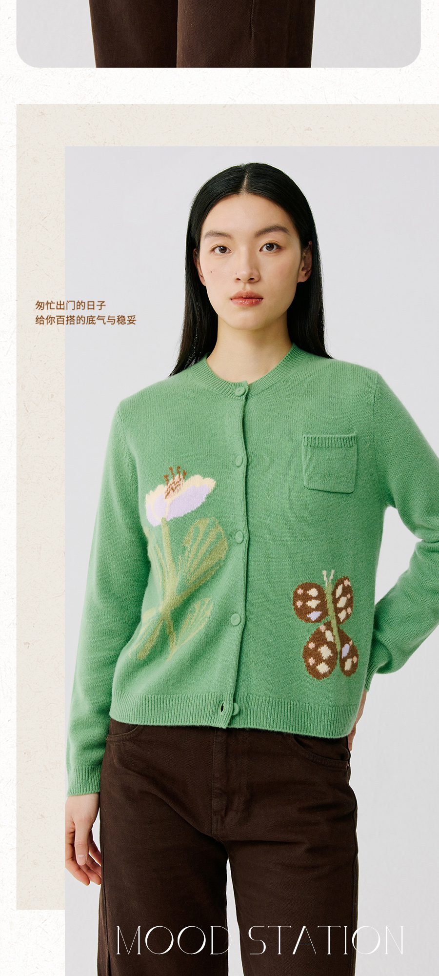 东黎 • 托斯卡纳系列—蝶语春光 山羊绒女士圆领提花长袖开衫 5024