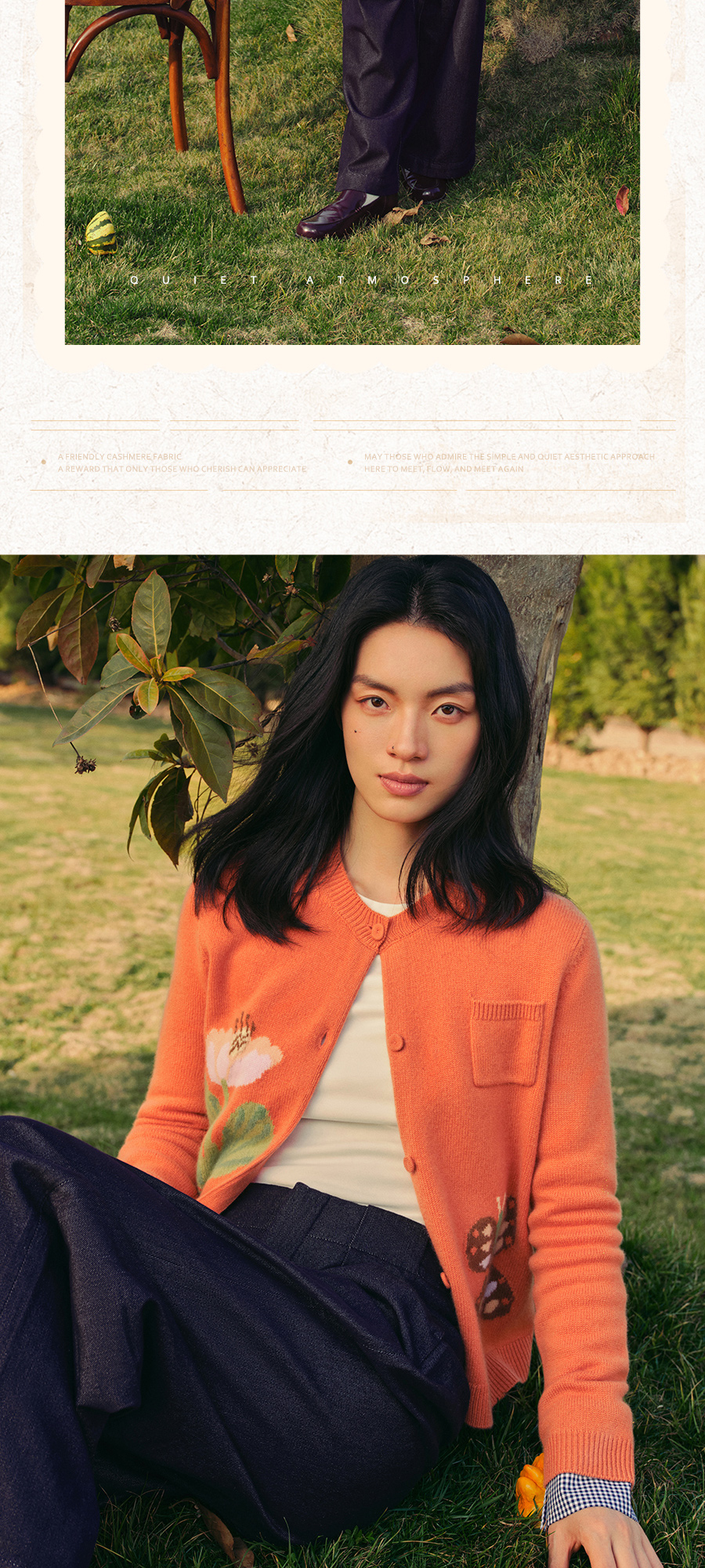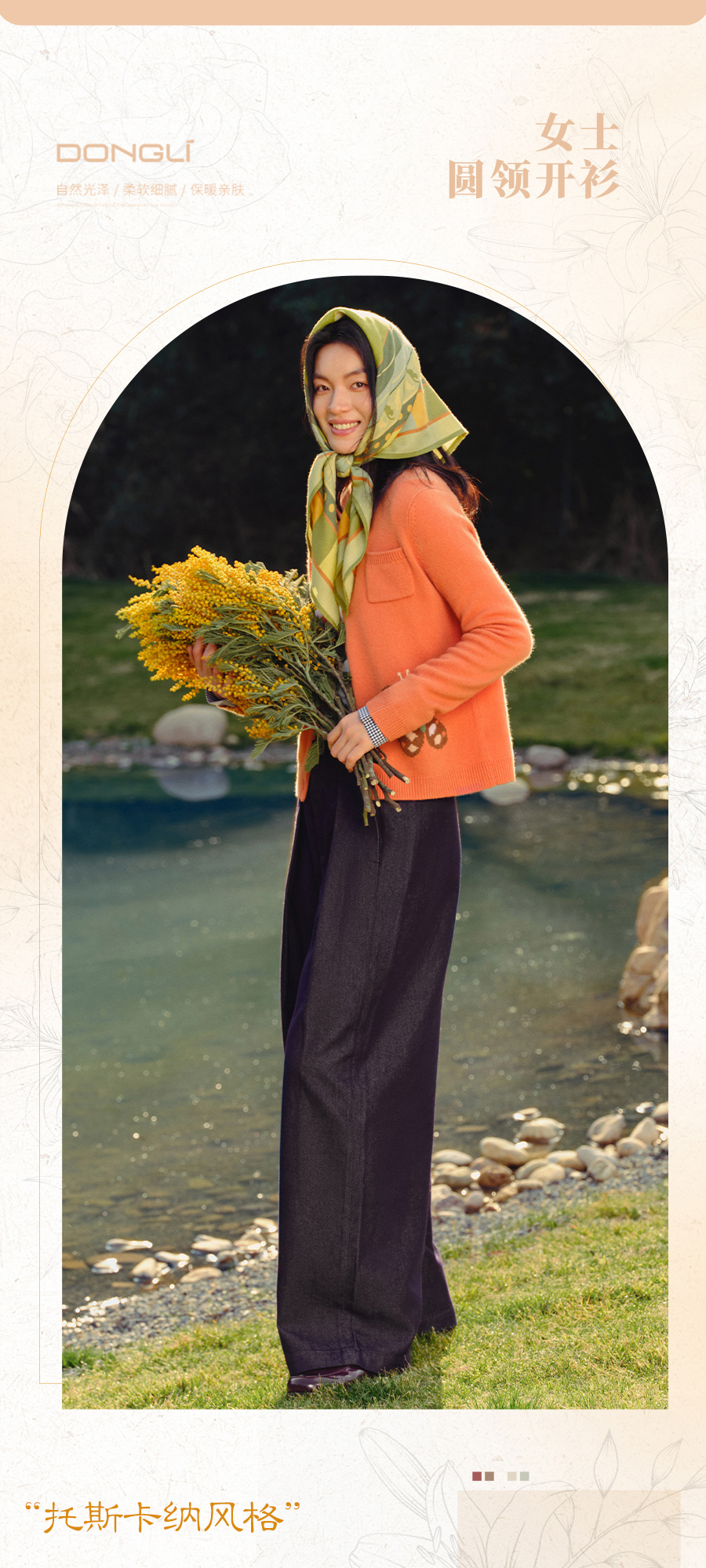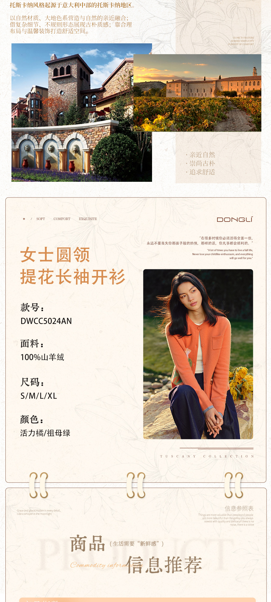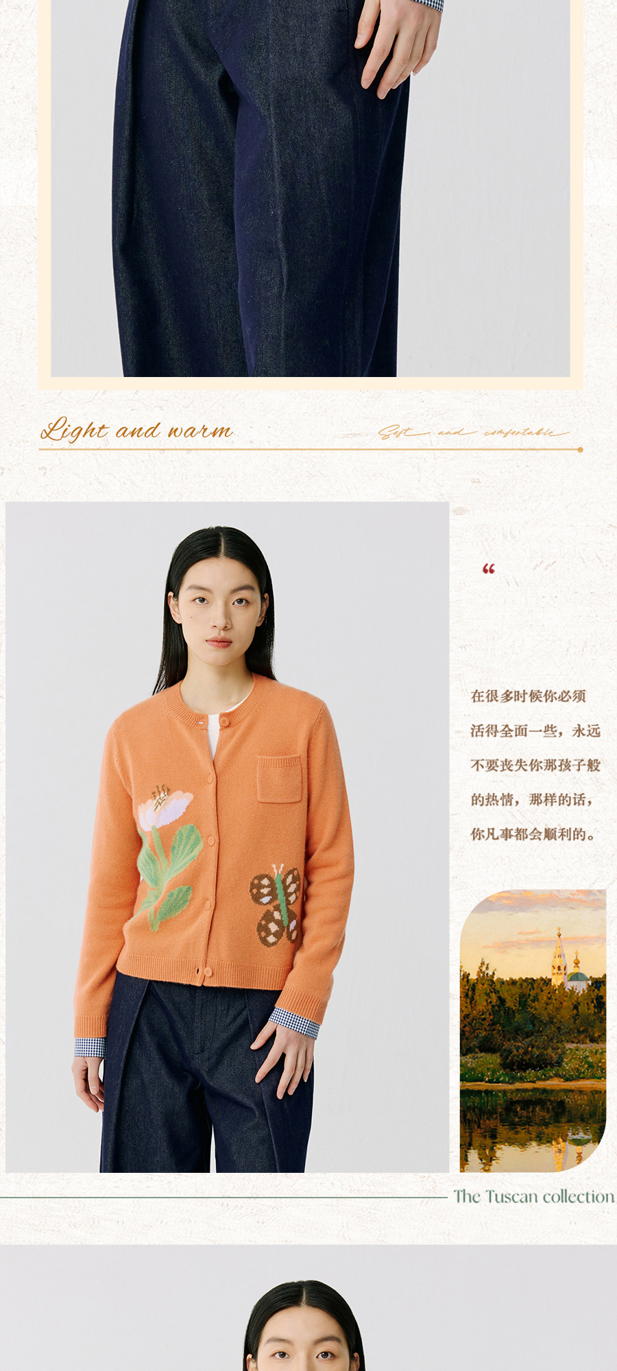 东黎 • 托斯卡纳系列—蝶语春光 山羊绒女士圆领提花长袖开衫 5024