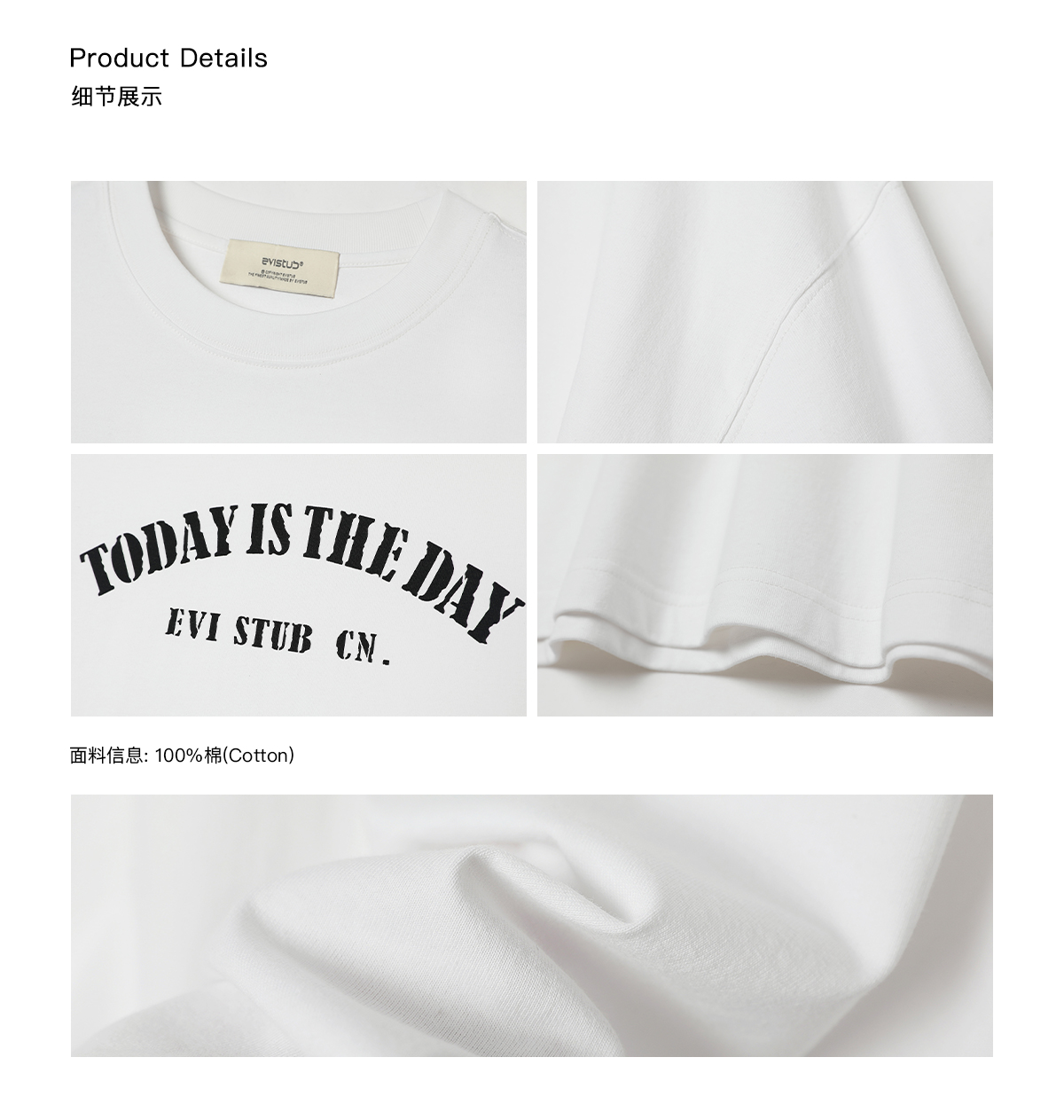 EviStub/E-4XDX92/复古文字水浆印花街头短袖T恤