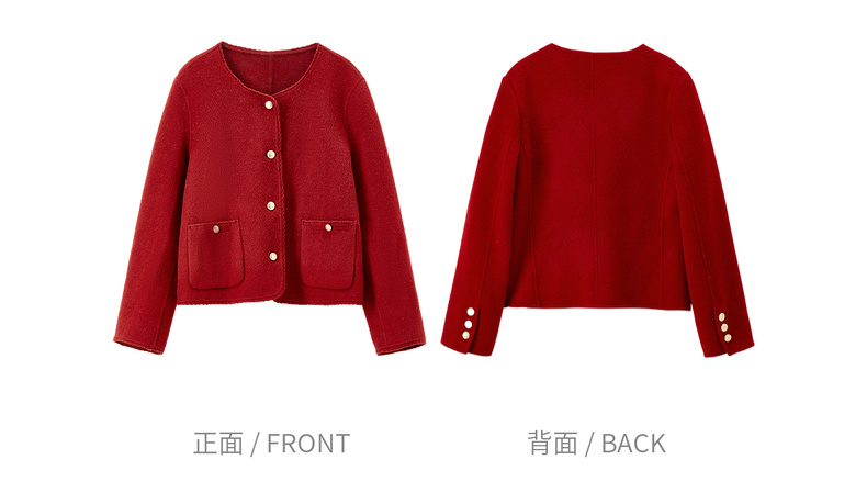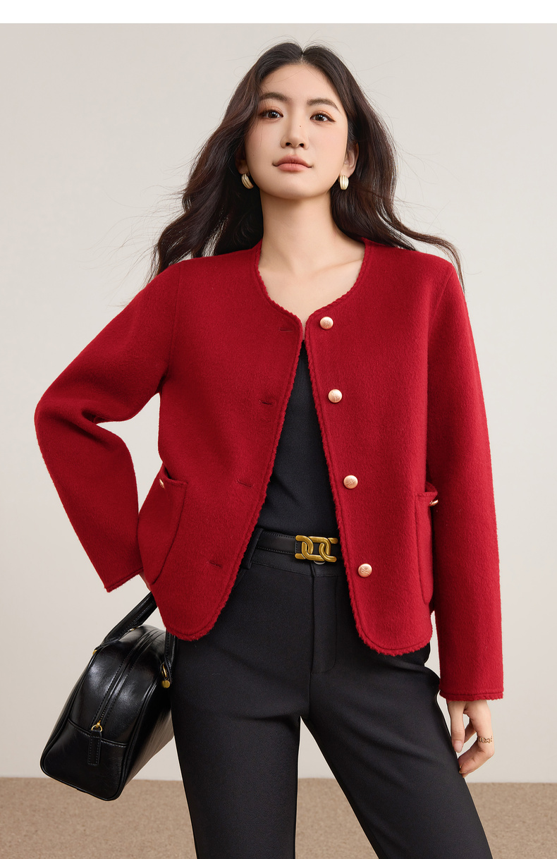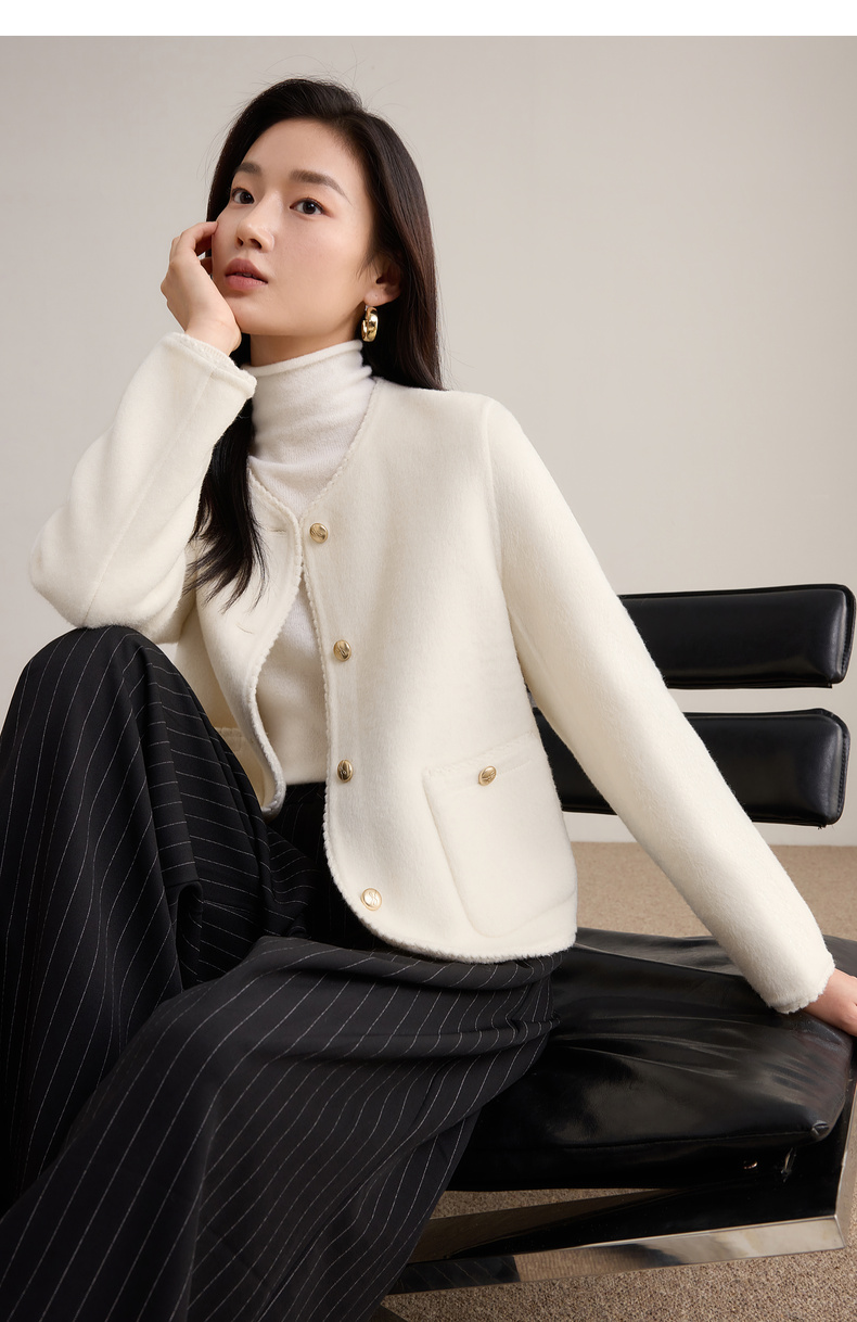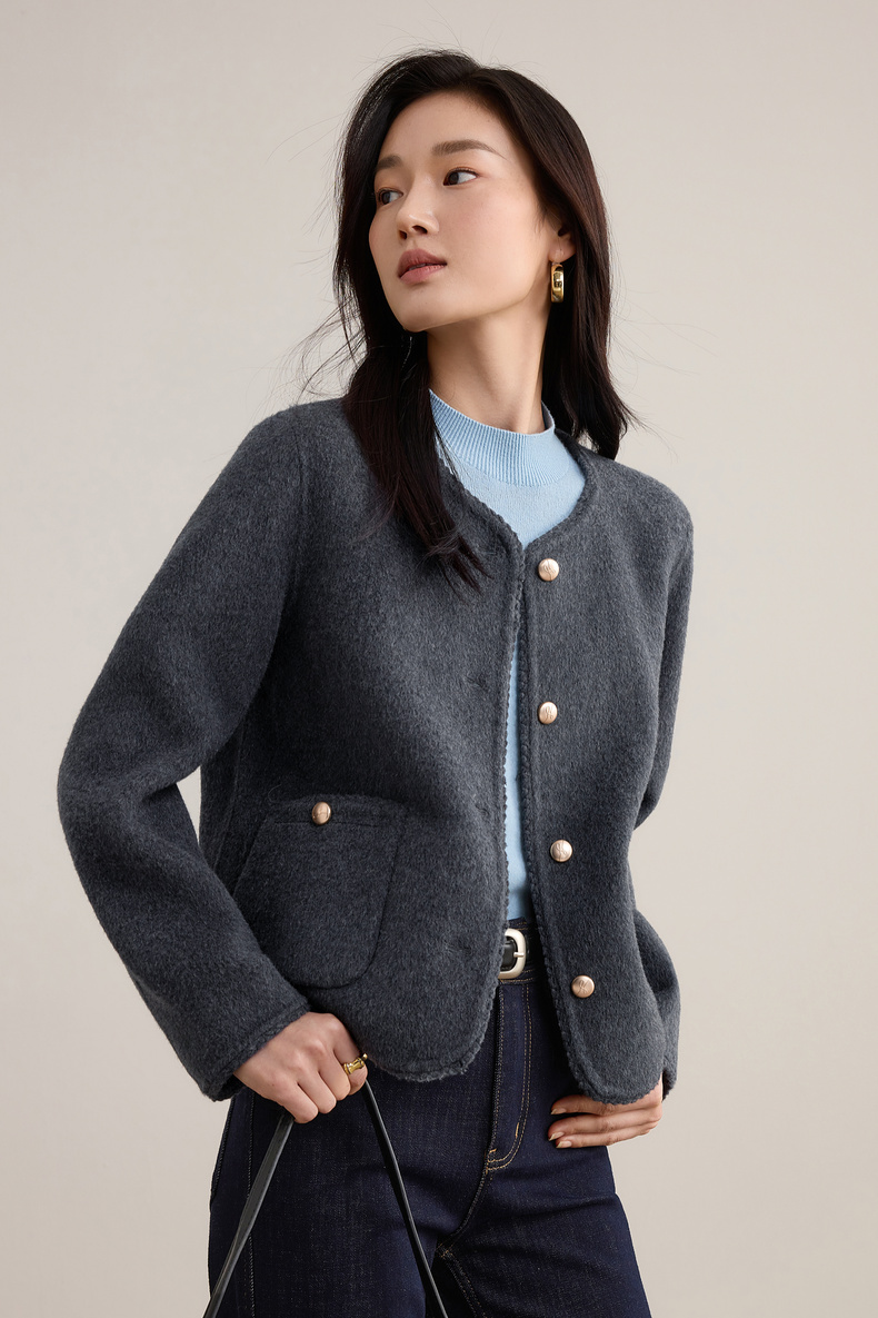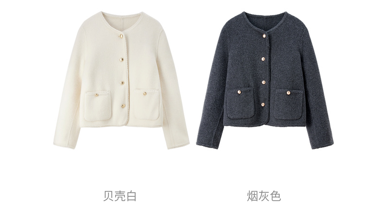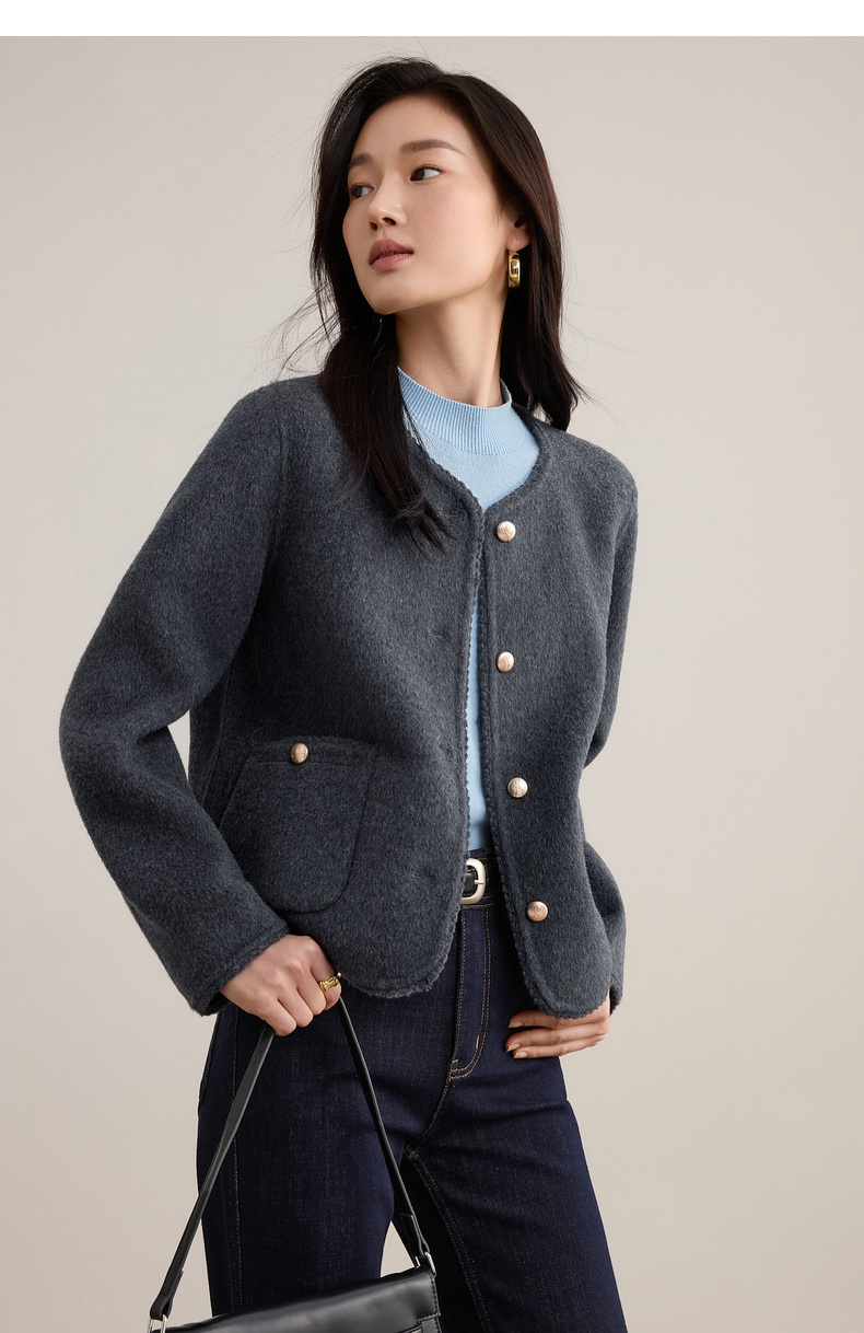 【内购】【100%绵羊毛】小香风金属扣织带镶边圆领显高真贴袋毛呢外套-W54OE8776