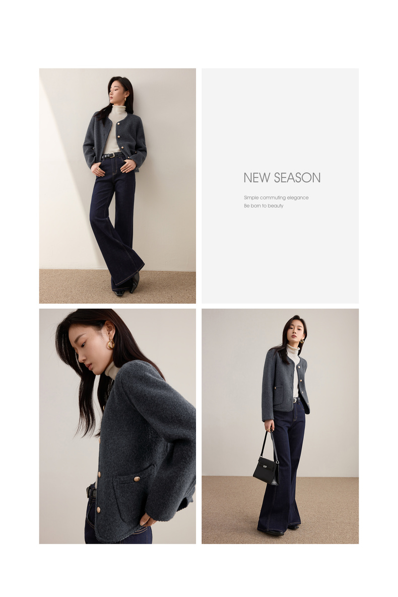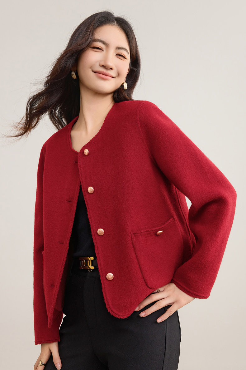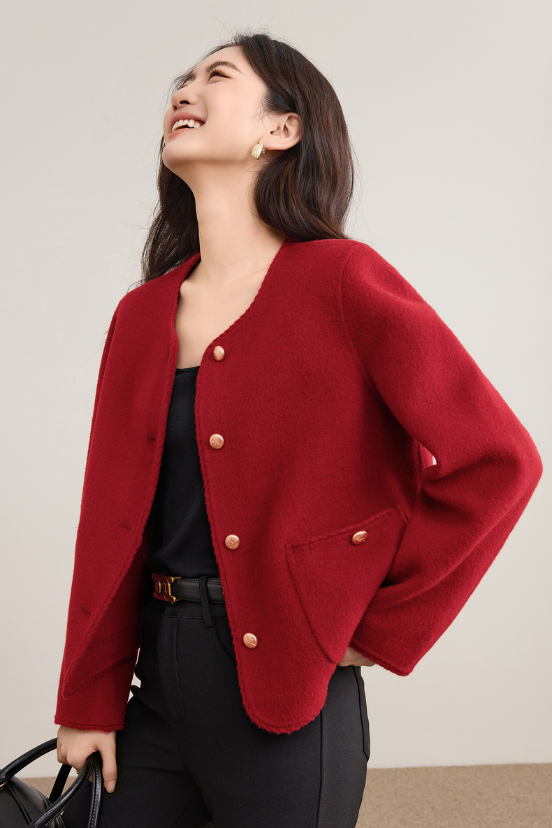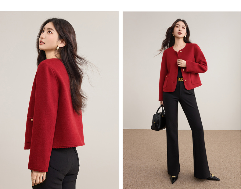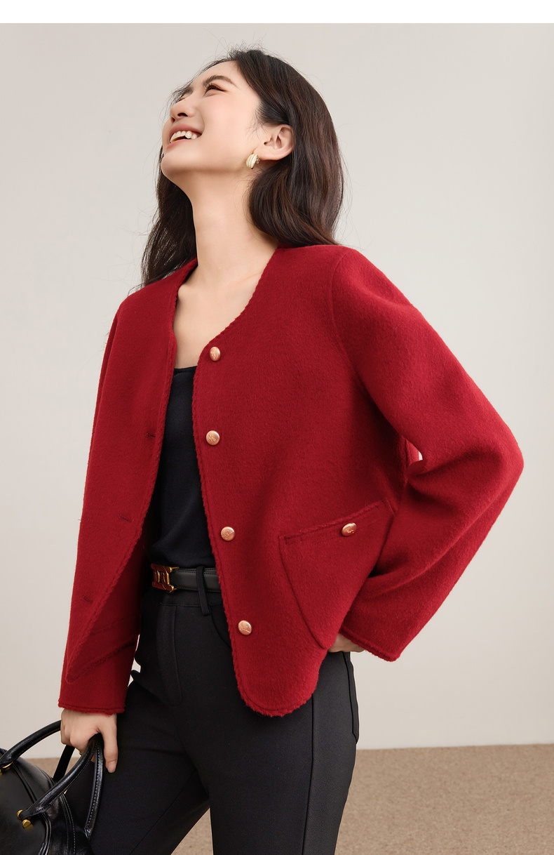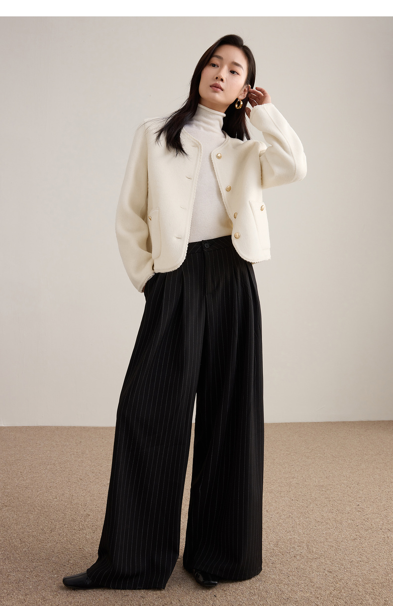 【内购】【100%绵羊毛】小香风金属扣织带镶边圆领显高真贴袋毛呢外套-W54OE8776