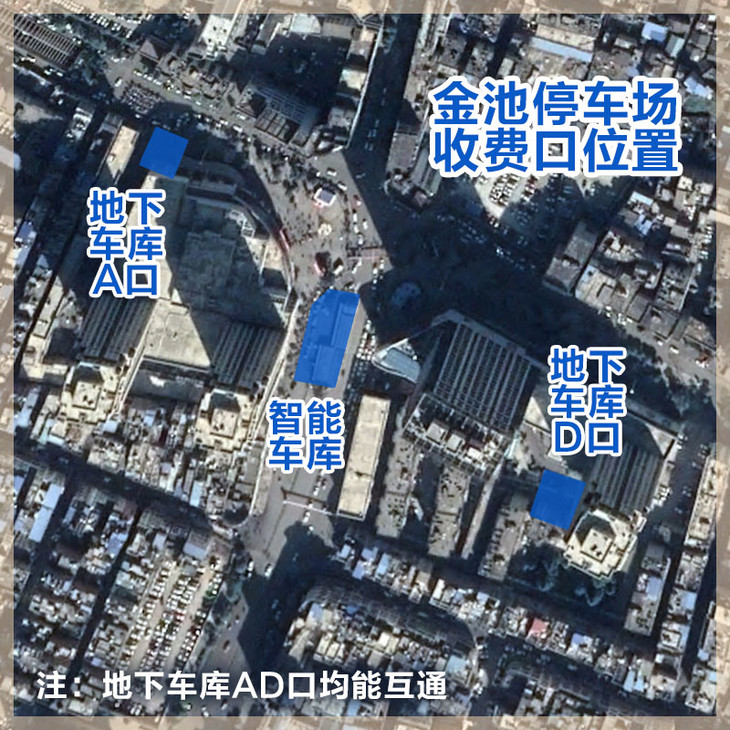 支持金池机械车库、金池地下停车场、福海公寓立体车库、福海上苑地下停车场等4个车场通用。