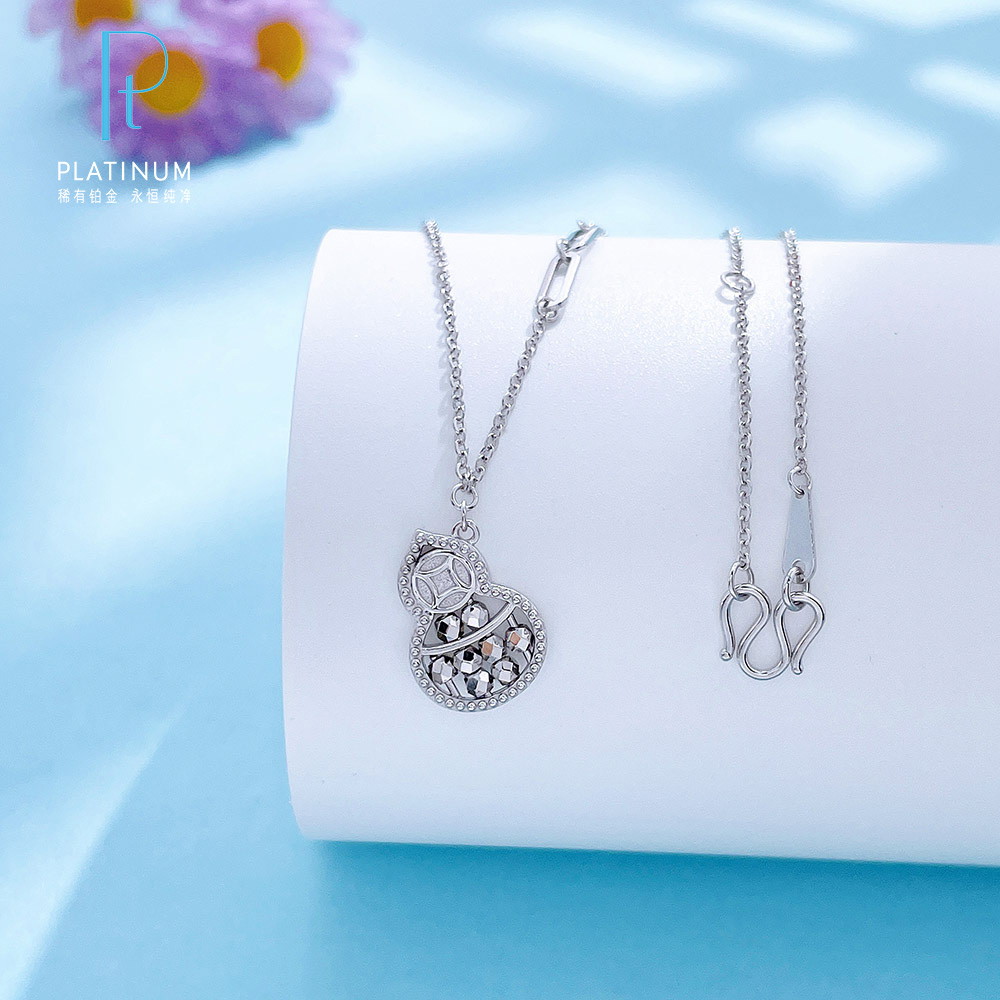 【线上铂金馆】PT950 #葫芦 #招财进宝 【国际铂金协会 精品】铂金镂空贺岁算盘葫芦福禄双至铜钱图案调节套链(珠可动)(BTL00268)预售产品下单后不退款不退货不换货不补差价)