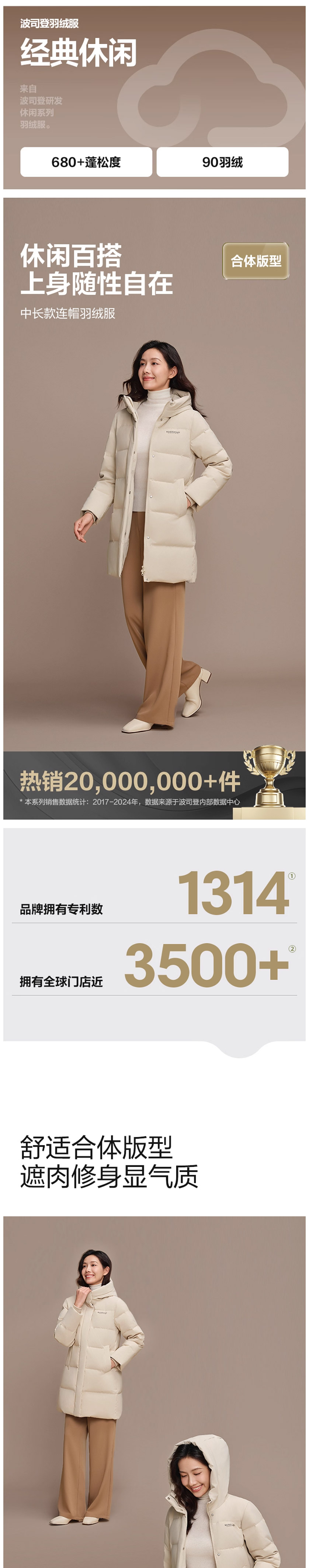 波司登25新款中长款连帽妈妈羽绒服女外套B250245124