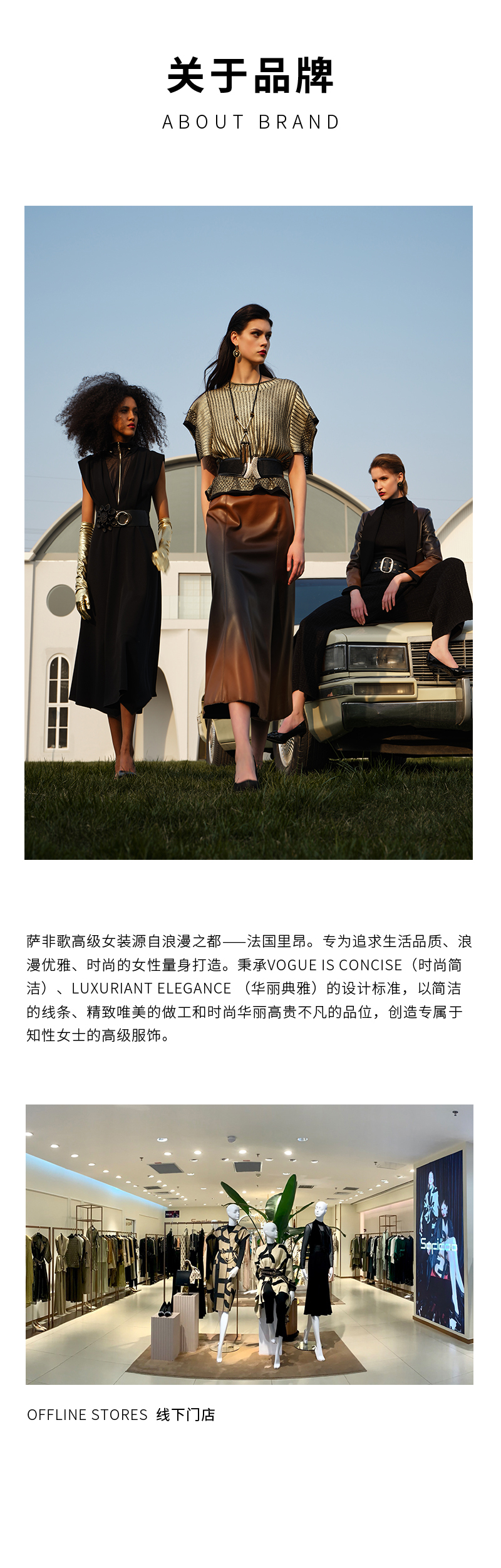SAFICOO高级女装源自法国巴黎,专为追求品质生活、浪漫优雅的时尚女性量身打造。秉承时尚简洁、华丽典雅的设计标准,以简洁的线条、精精致唯美的做工和时尚华丽、高贵不凡的品位,创造专属知性女士的高级服饰