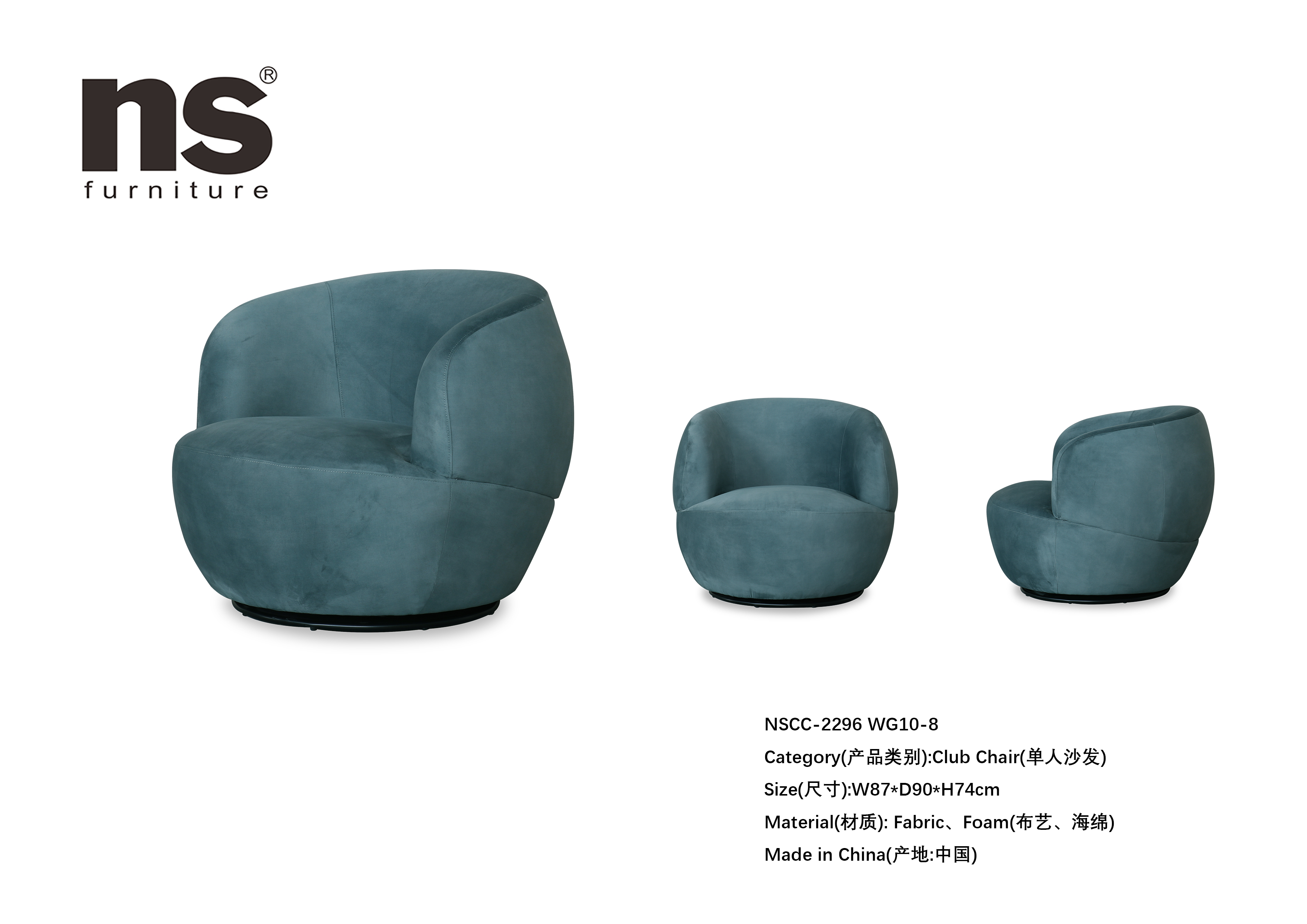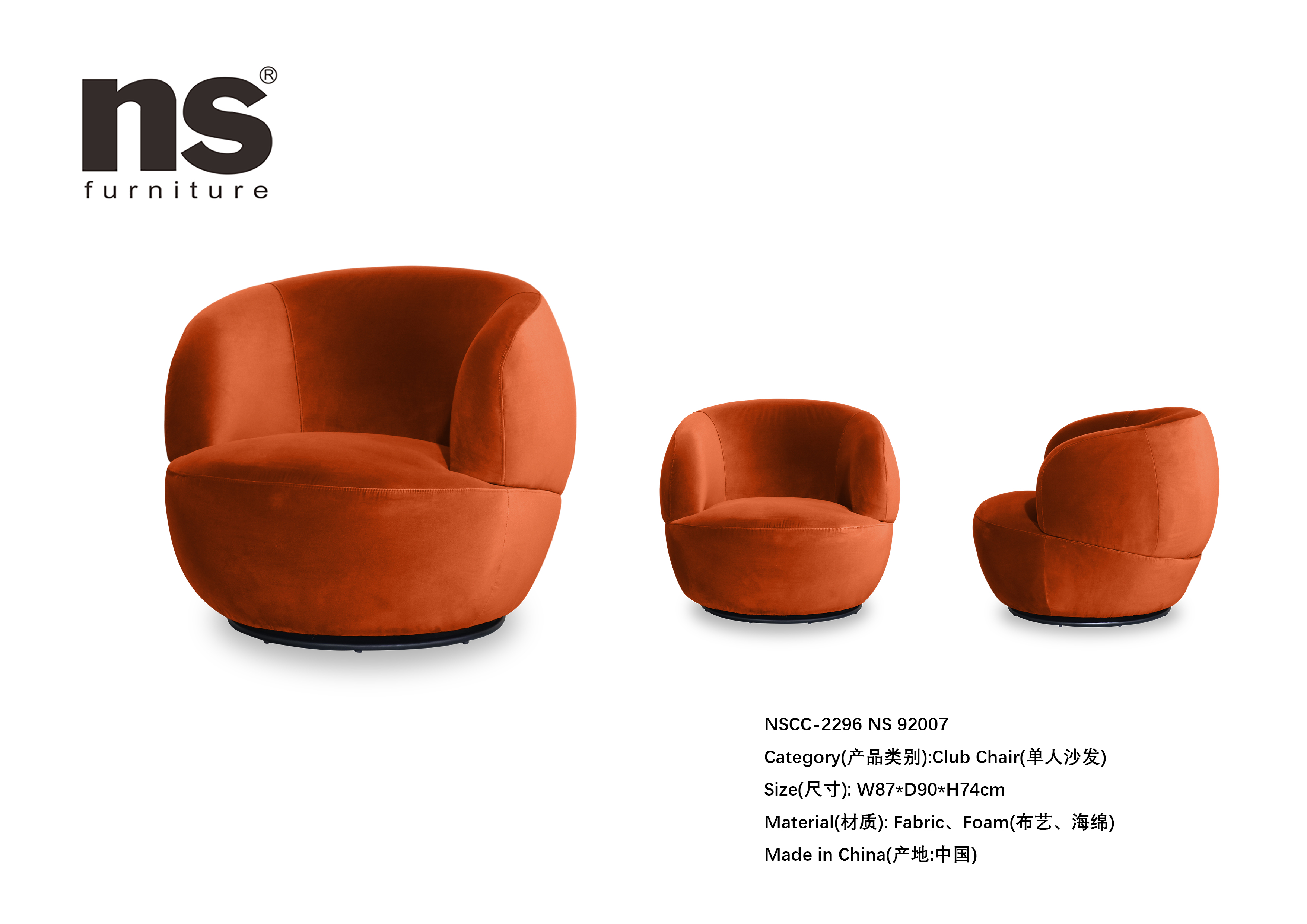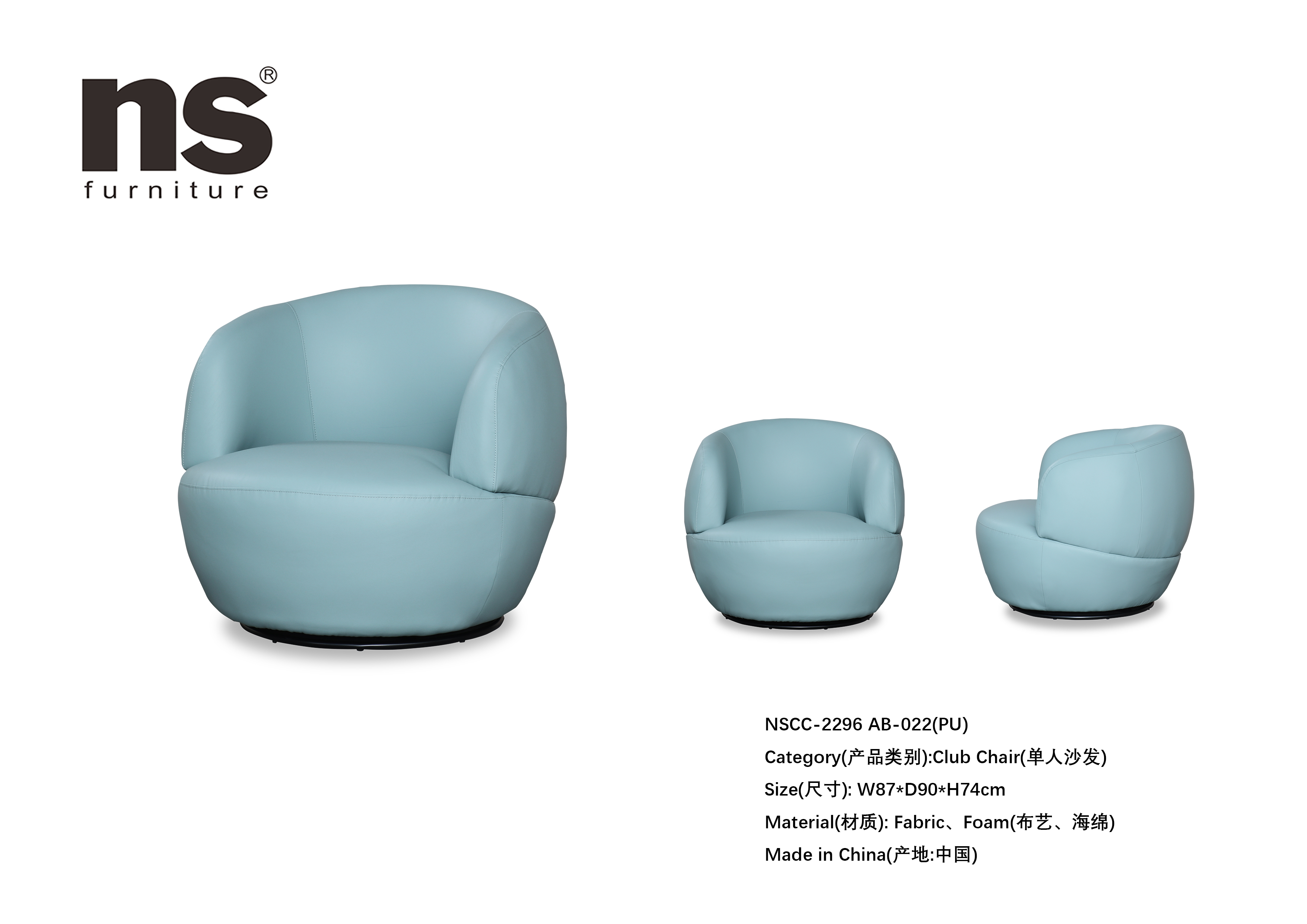 NS家居nsfurniture布艺可旋转单人沙发NSCC-2296