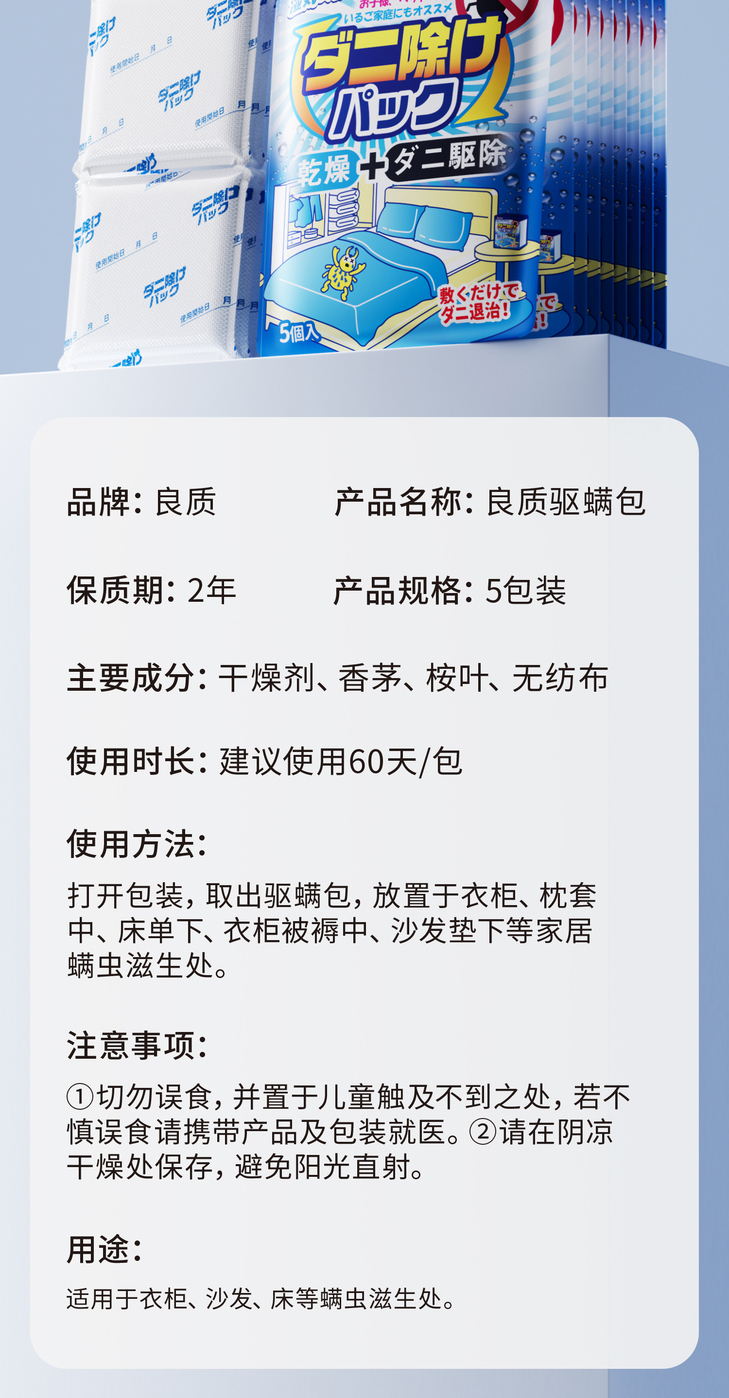 【满分驱螨安心无忧】良质驱螨包 植物提取更安全 免洗免晒 母婴可用 长效除螨 60 天 5包/袋