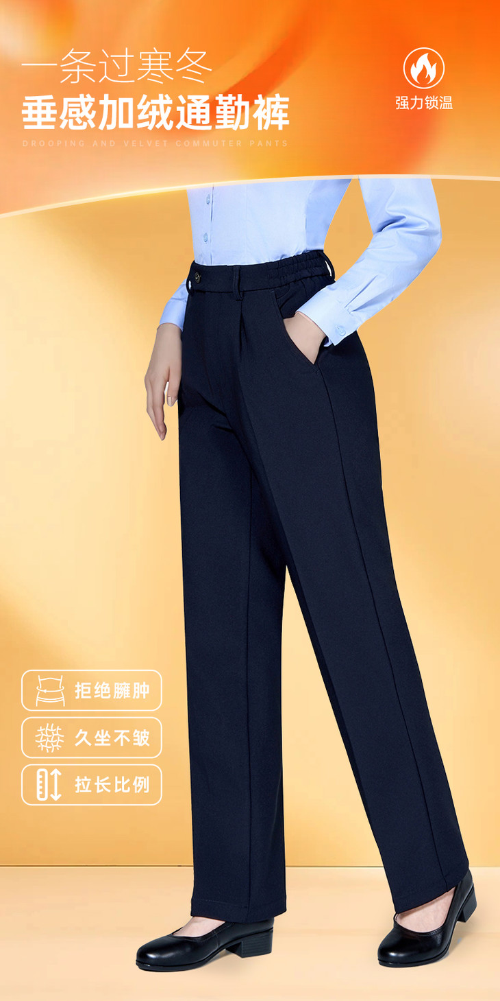 【实付满399送保温杯】【女款垂感加绒通勤裤W2】修身商务通勤长裤高弹直筒加绒西裤