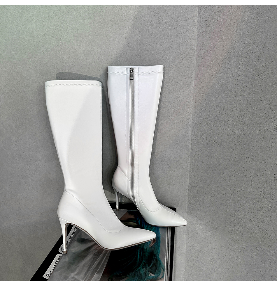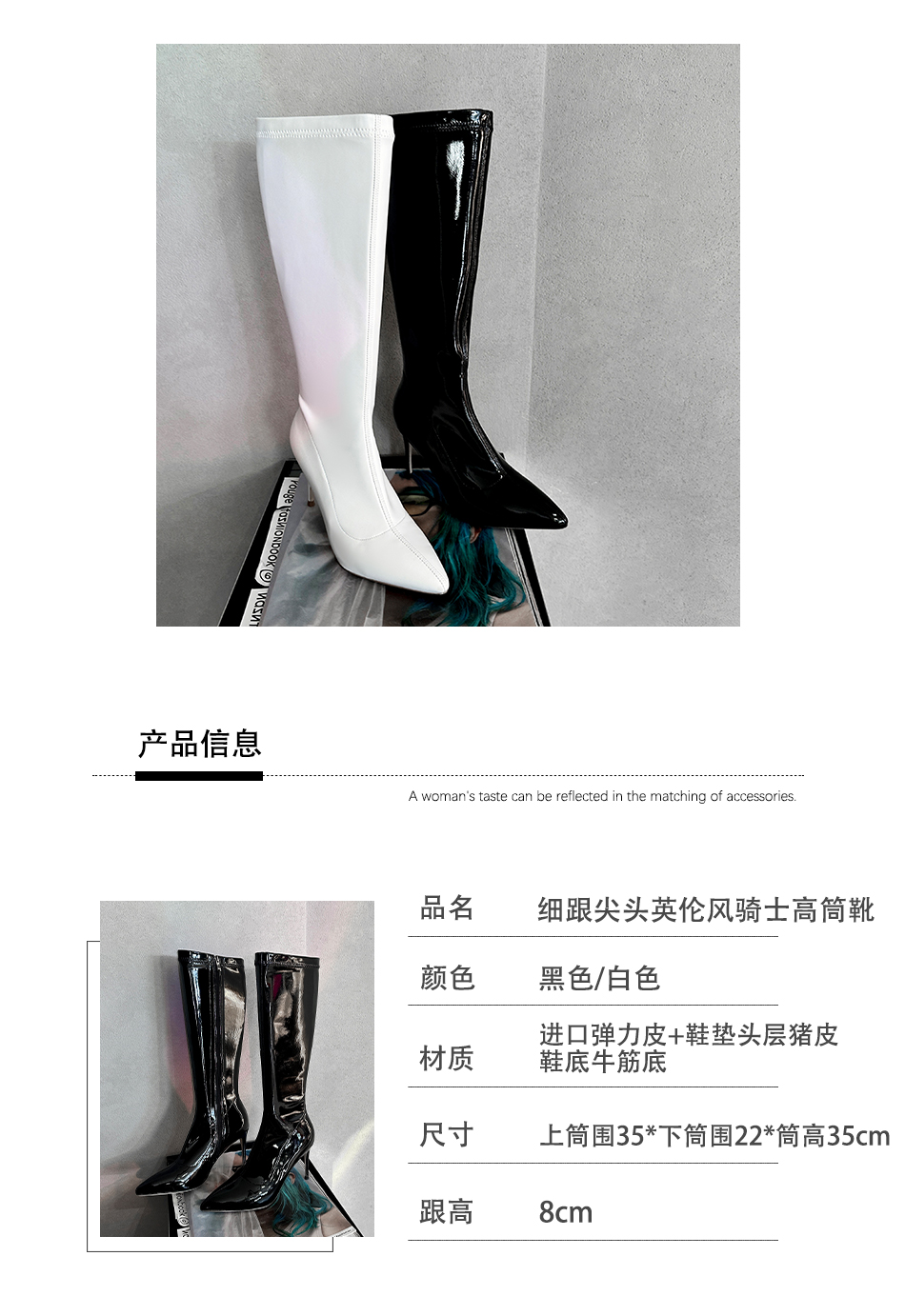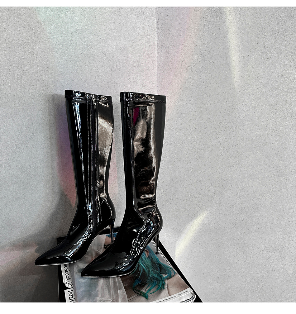 余潇潇 时尚细跟尖头英伦风骑士高筒靴