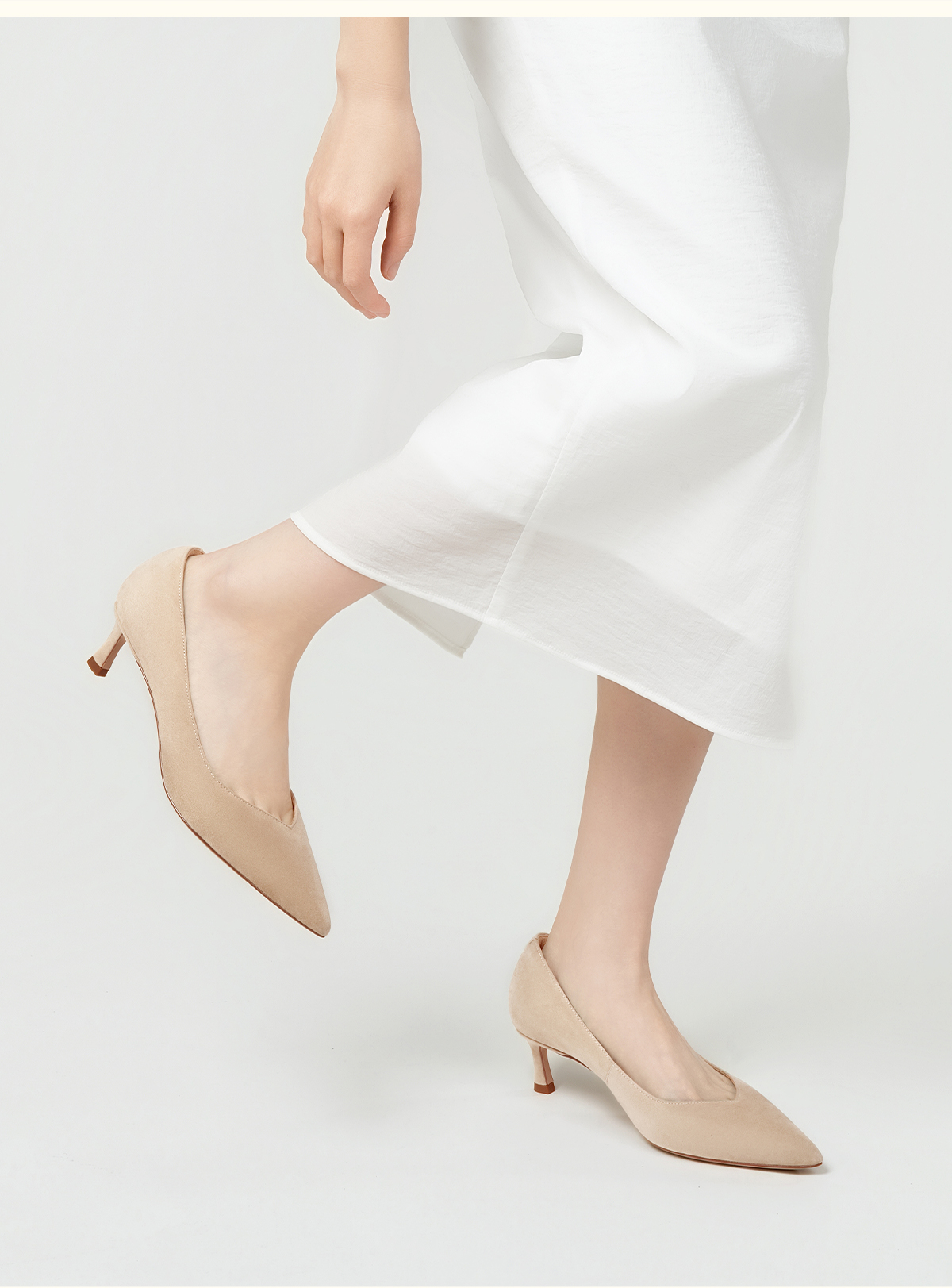 7or9通勤基础款高跟鞋裸色新款单鞋白茶