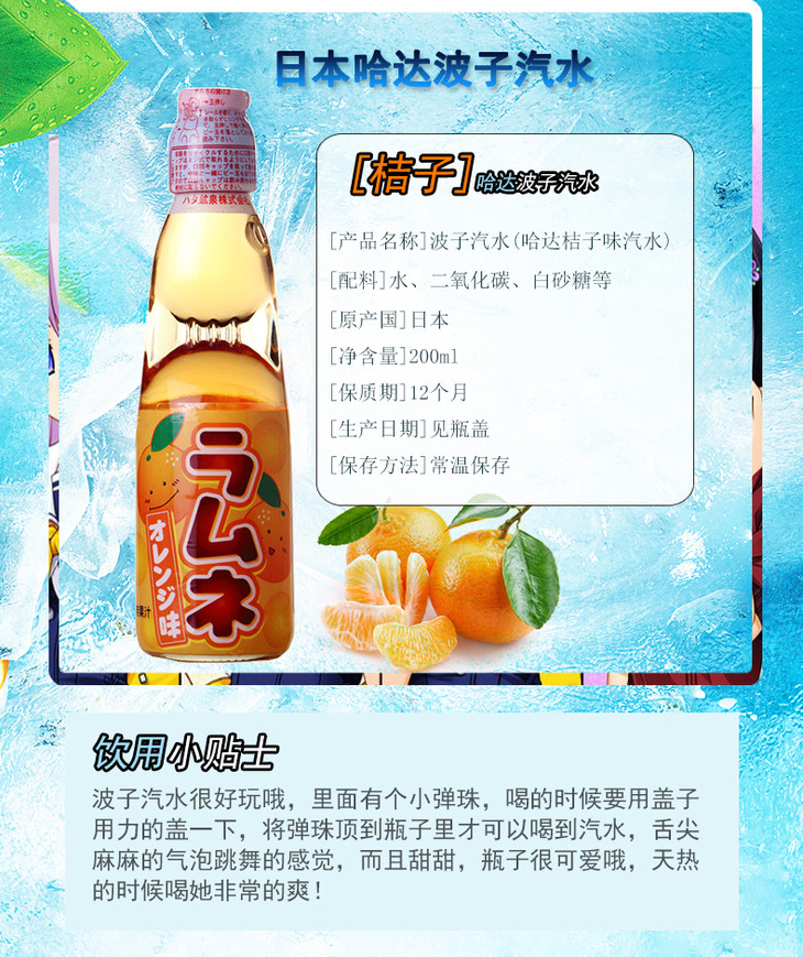 哈达波子水橘子味汽水200ml