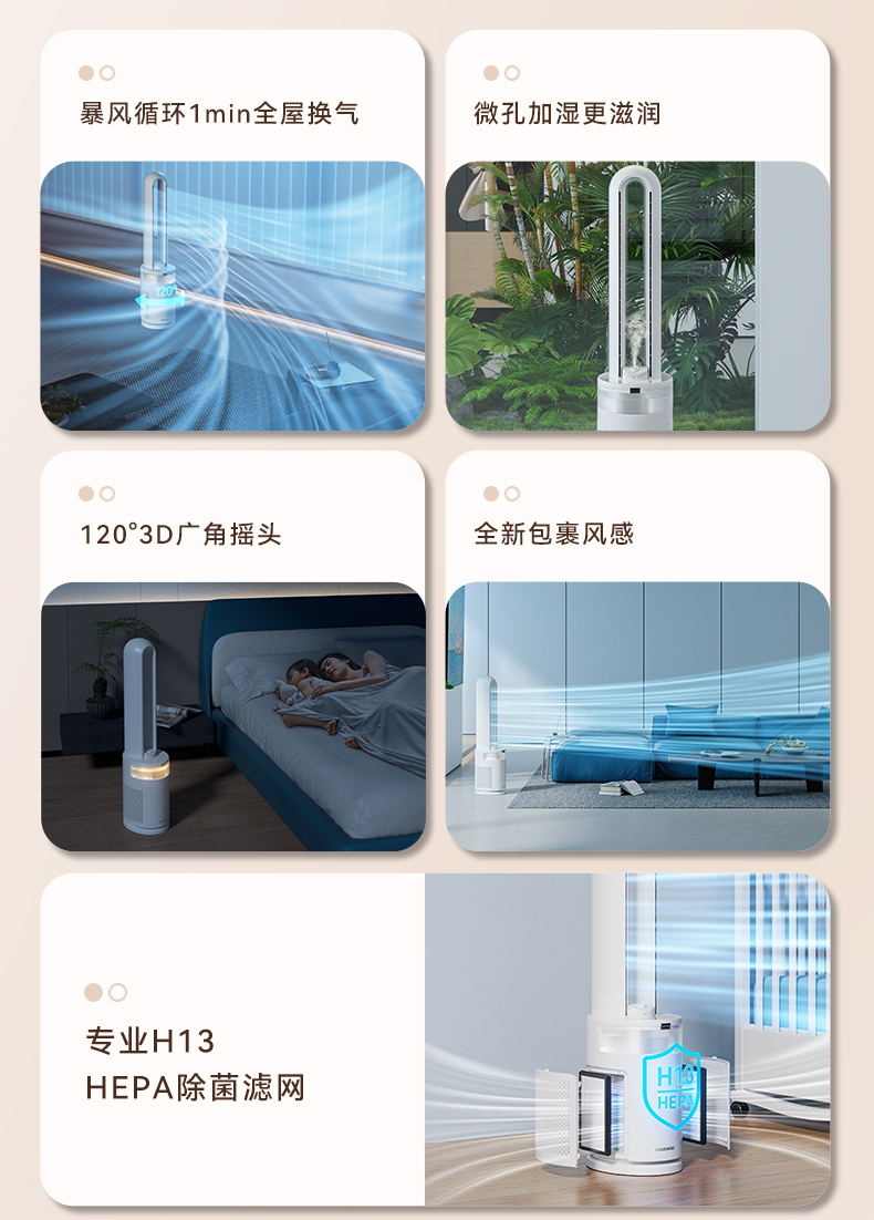 心选丨【官方自营】大宇净化无叶风扇家用低噪落地循环空气氛围灯包围风新款