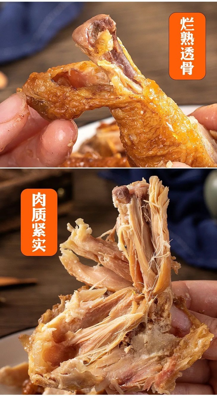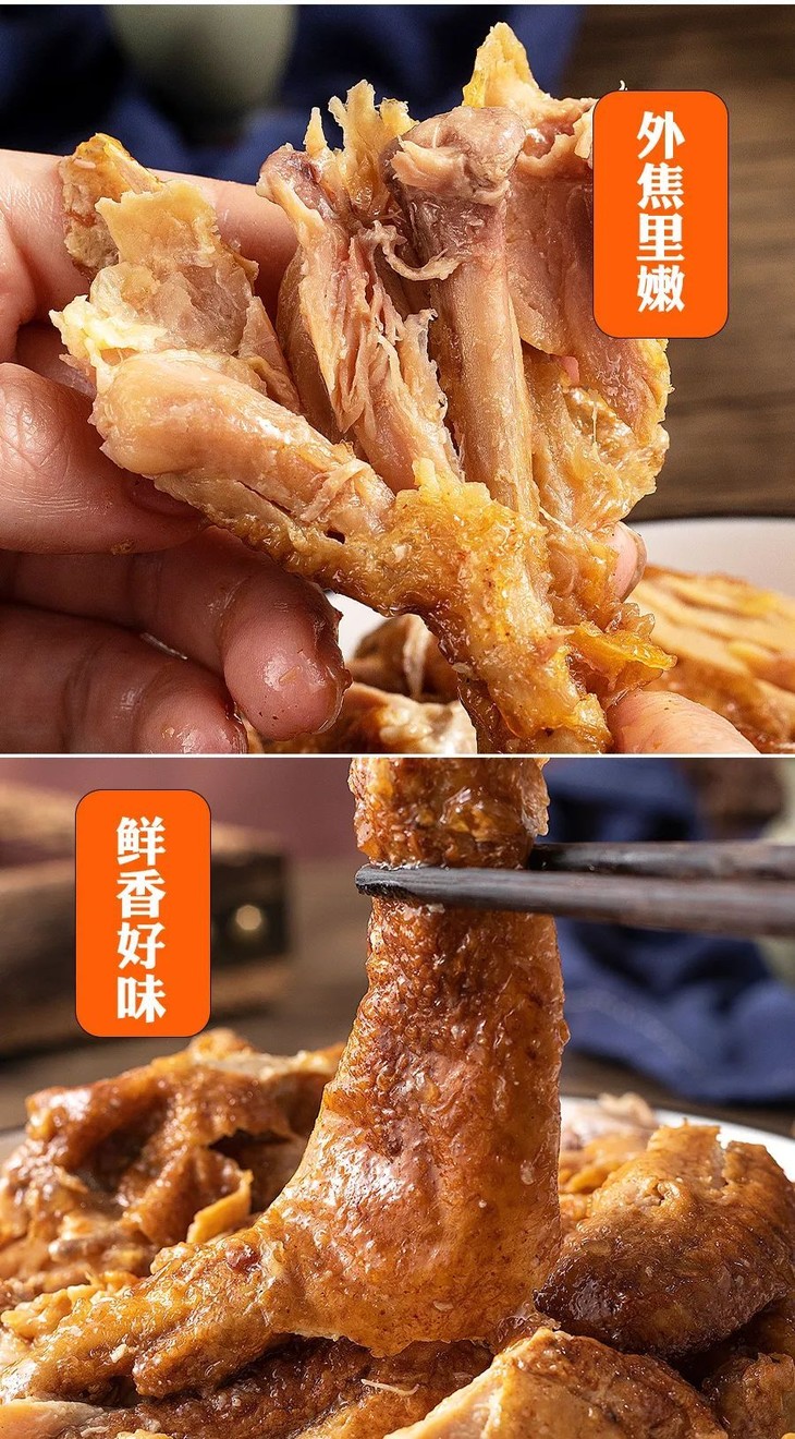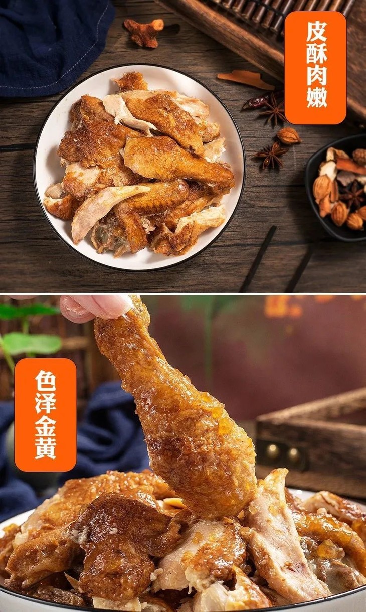 这2款鸡,均严选土法喂养农家鸡 肉质鲜嫩,和那种靠吃饲料长大的鸡是不同的。 甄选多种香辛料,采用传统工艺 6小时腌制+6小时小火慢卤,老汤焖煮入味~