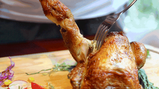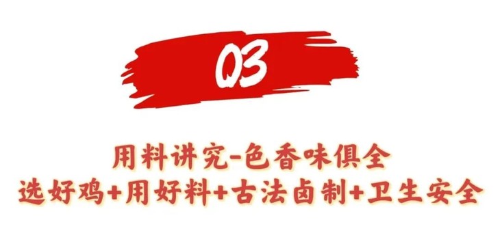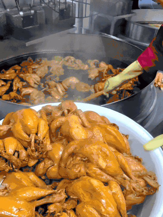 之后,再通过武火烹煮,文火入味。 4小时卤制8小时小火慢卤,做到整只鸡色泽诱人 每一块鸡肉都丝丝入味,香入筋骨。