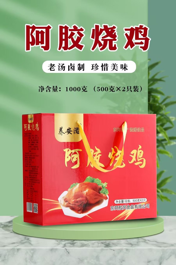 阿胶烧鸡是红色的包装~ 喜庆洋气,和过年很搭哦~