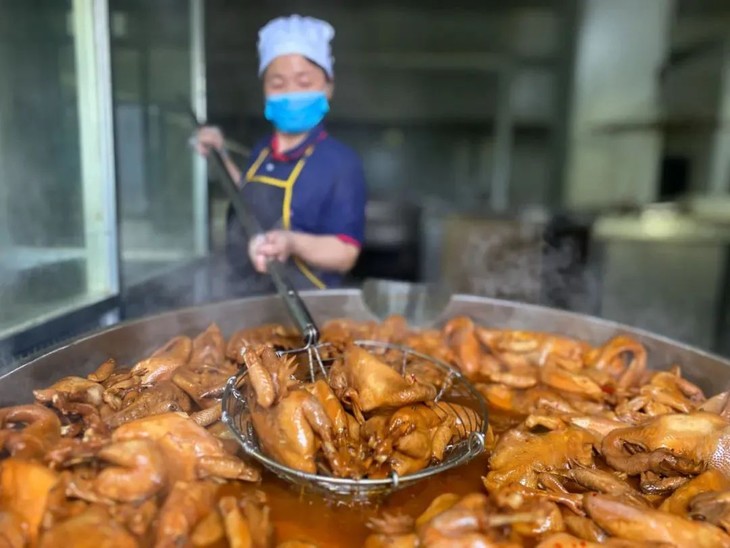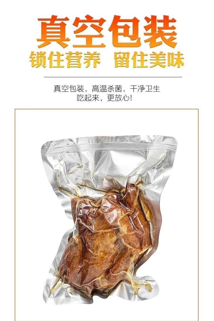 制作完的烧鸡 会进行真空包装、高温灭菌等一系列操作~ 确保到大家手上的每一份鸡都是原滋原味的。