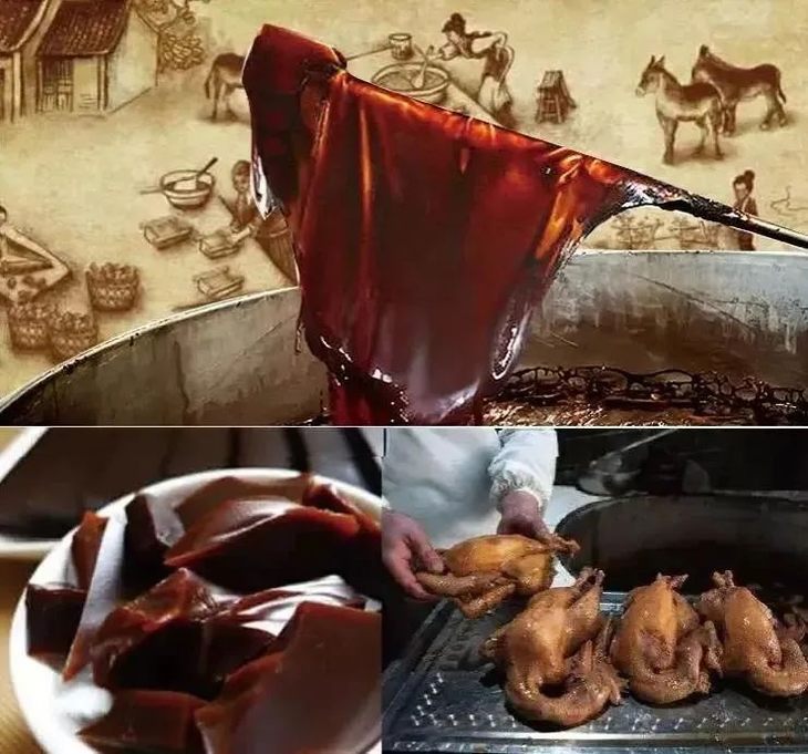 在慢炖的过程中,阿胶逐渐融化 其滋补的香气与鸡肉的鲜美相互渗透 交织出一种令人陶醉的口感。 当汤汁逐渐浓稠,鸡肉醇熟入味时 阿胶烧鸡便制作完成了。