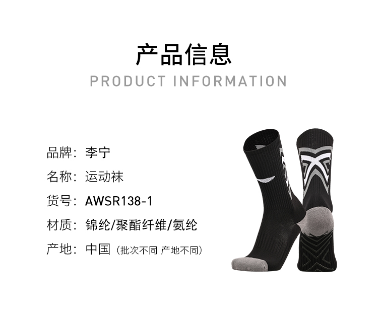 小李子Lining/李宁足球运动休闲训练比赛中筒运动袜男AWSR138-1