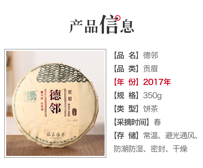 自家系列丨2017年 德邻 贡眉350g/饼