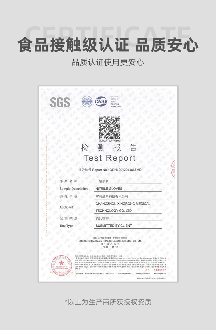 3、SGS食品接触级认证 可以带着做辅食的手套 SGS食品接触级别的 请认准秉秀丁腈手套‼