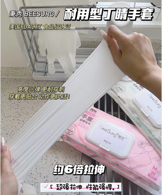 吹爆了剥龙虾都不会破的食品级手套BEESURG秉秀耐用型丁腈手套自有超级大厂生产 专注出口品质